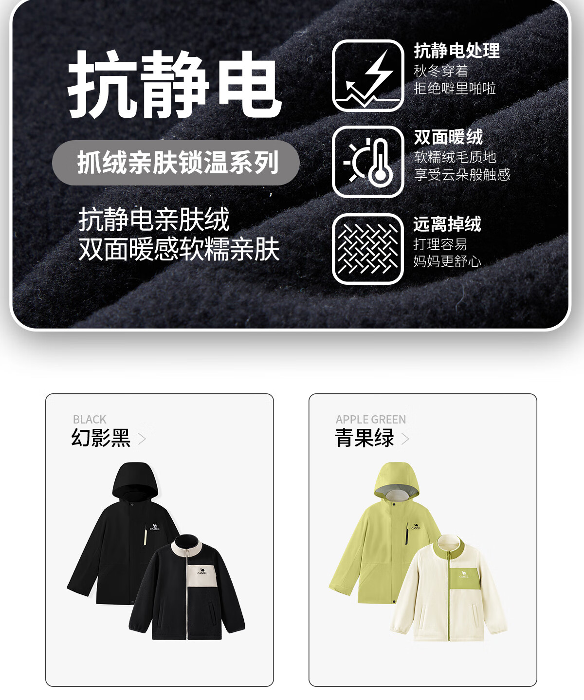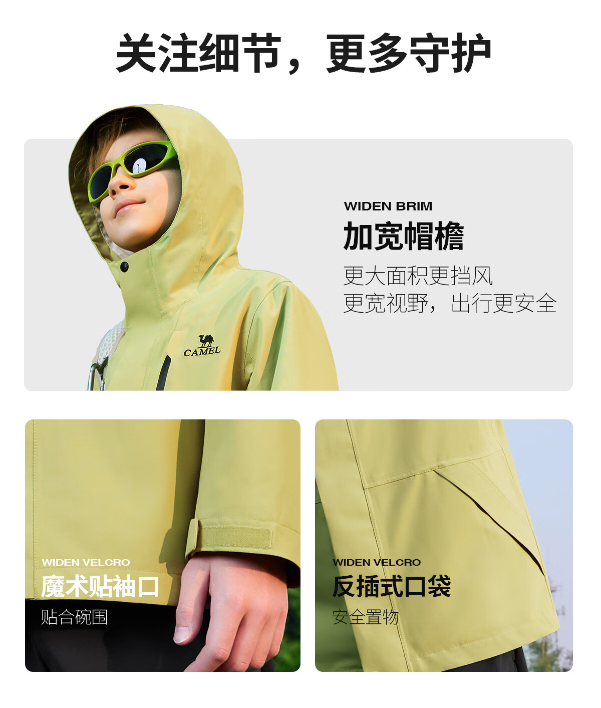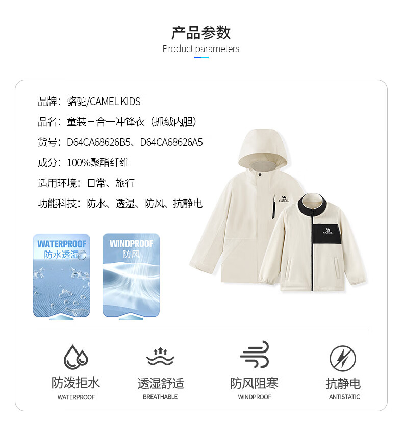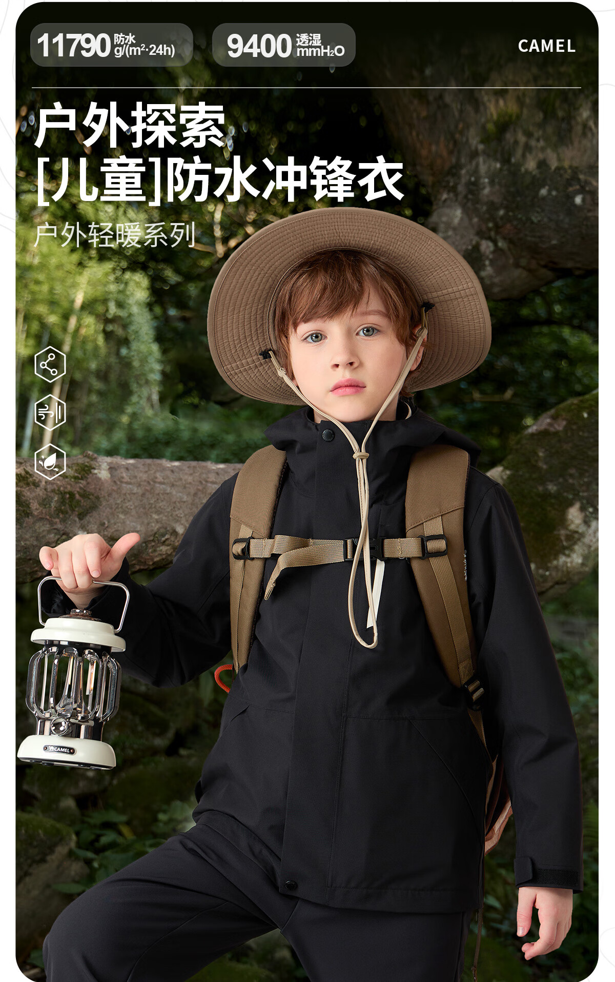 骆驼儿童三合一冲锋衣秋冬保暖外套防风防水抓绒衣内胆