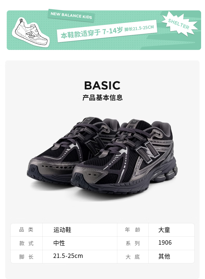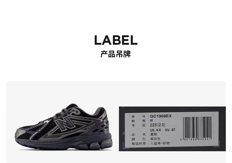NEW BALANCE7-14岁春秋时尚潮酷运动老爹鞋1906EX