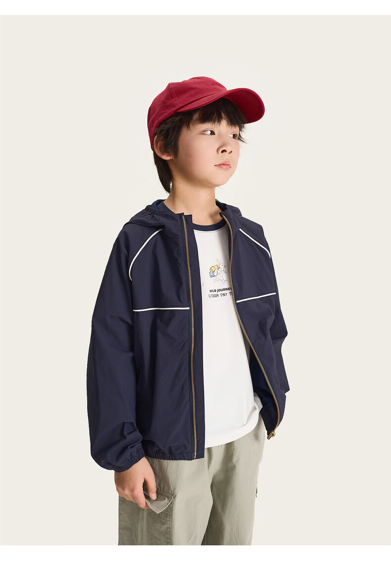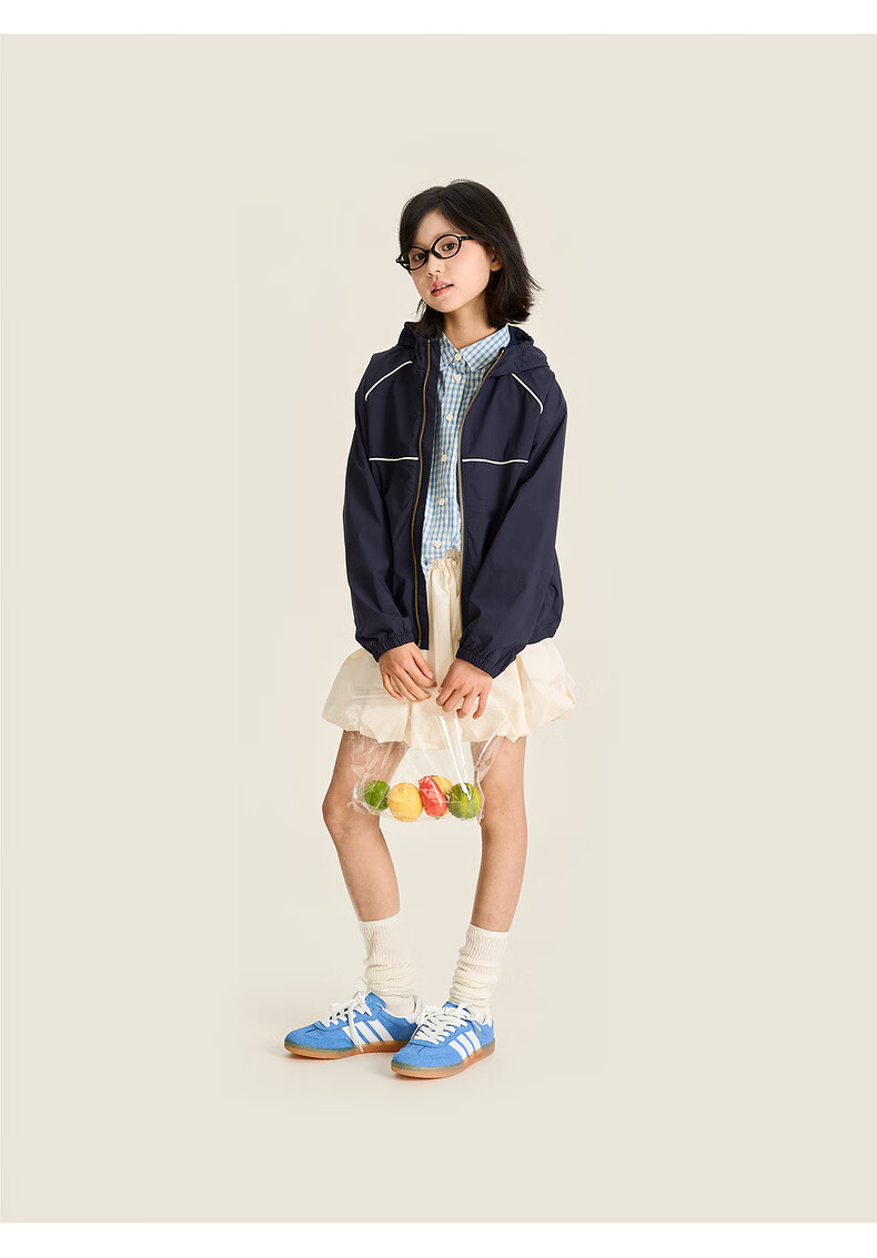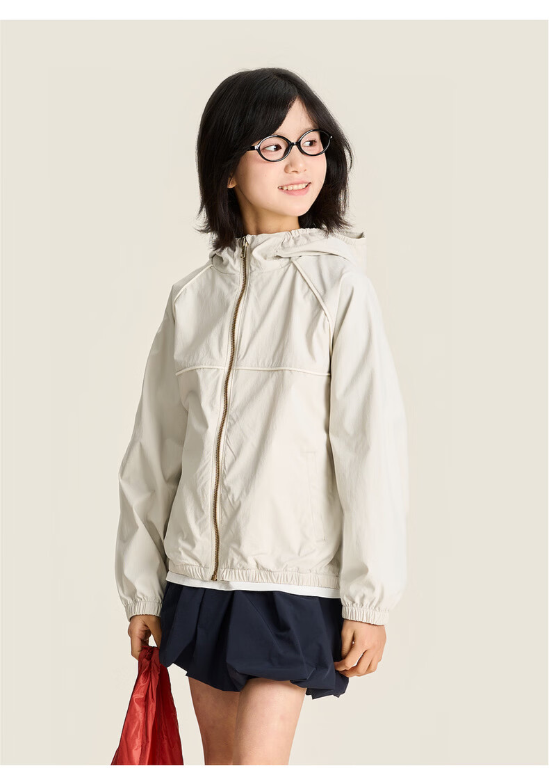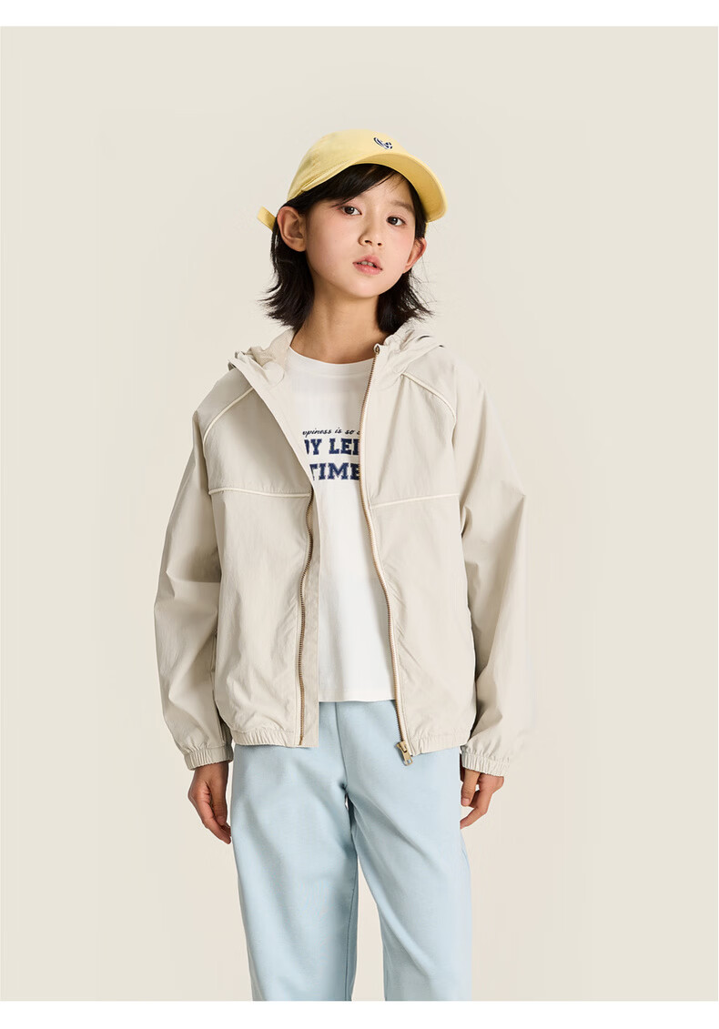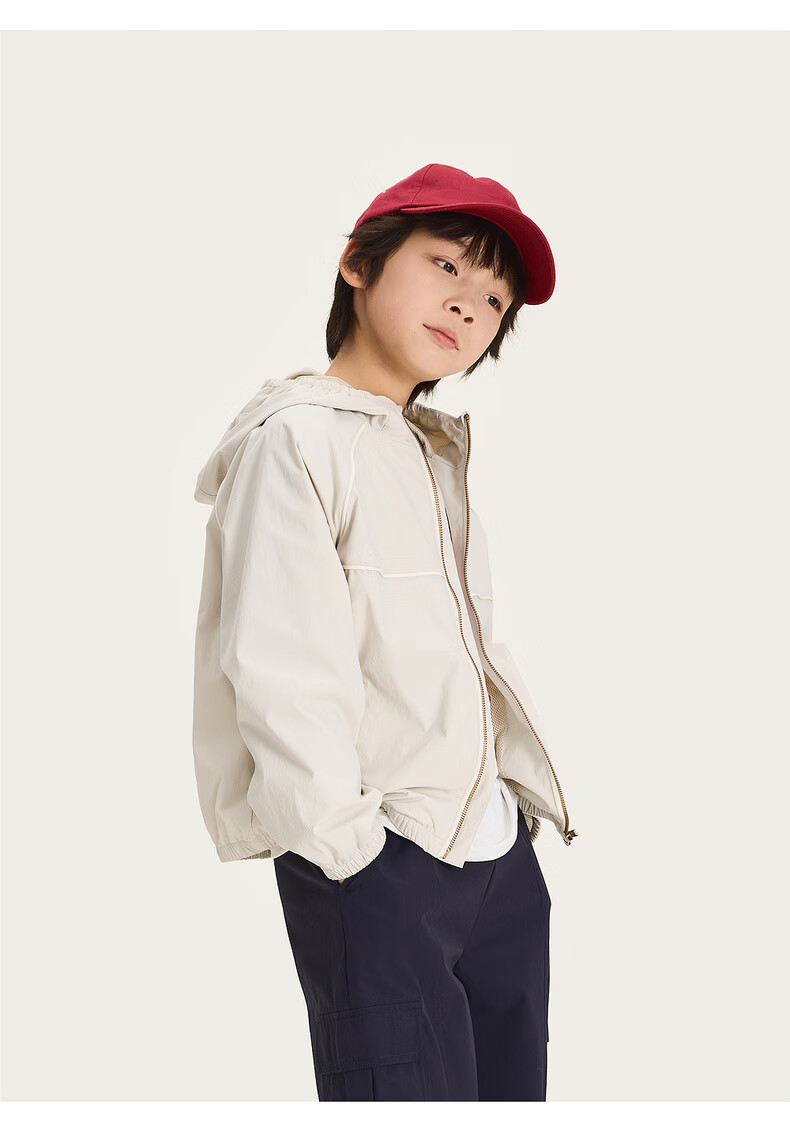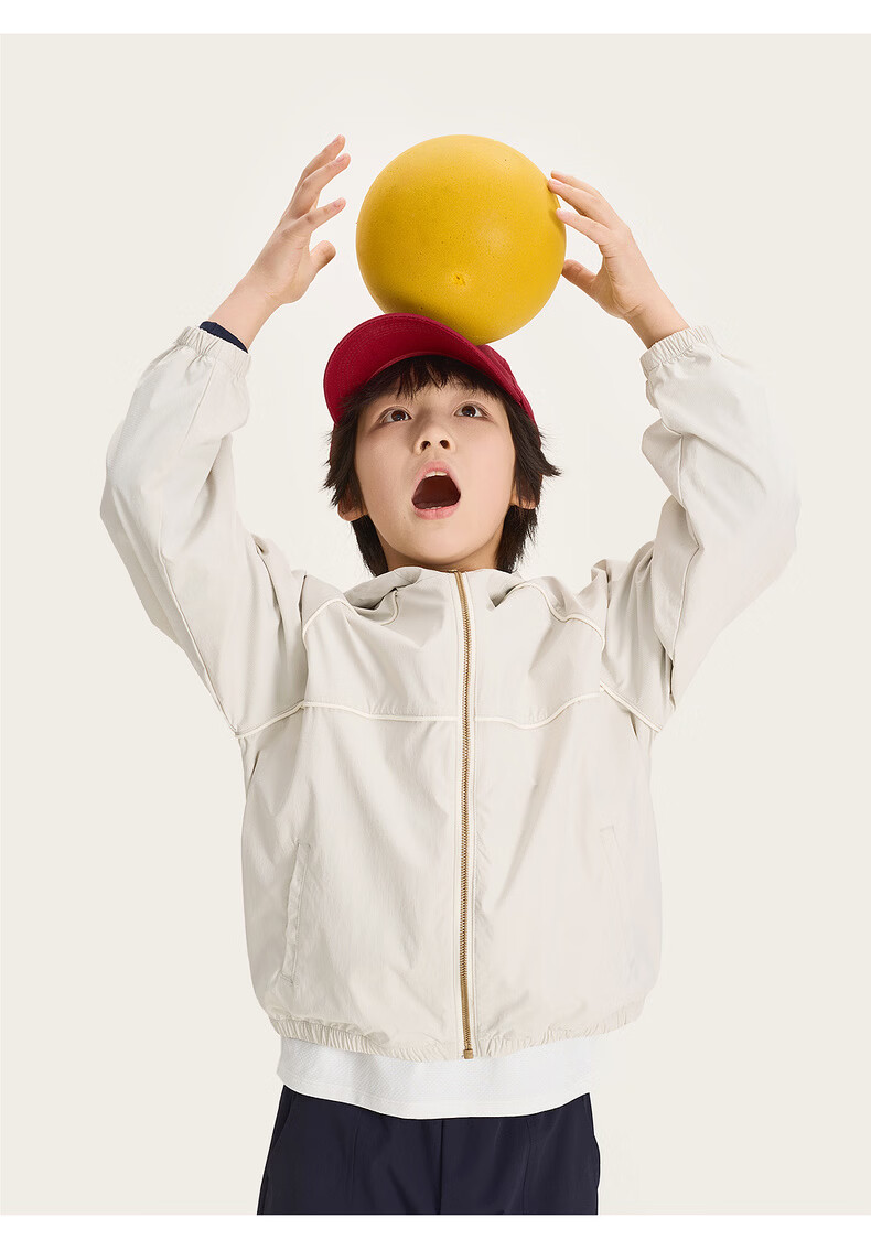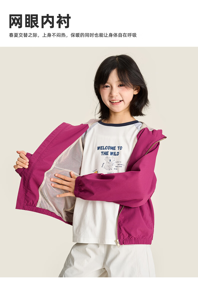 棉叔叔【弹力小方格外套】女童2026春季新品户外内里网眼时尚上衣男童 浅米 120 120