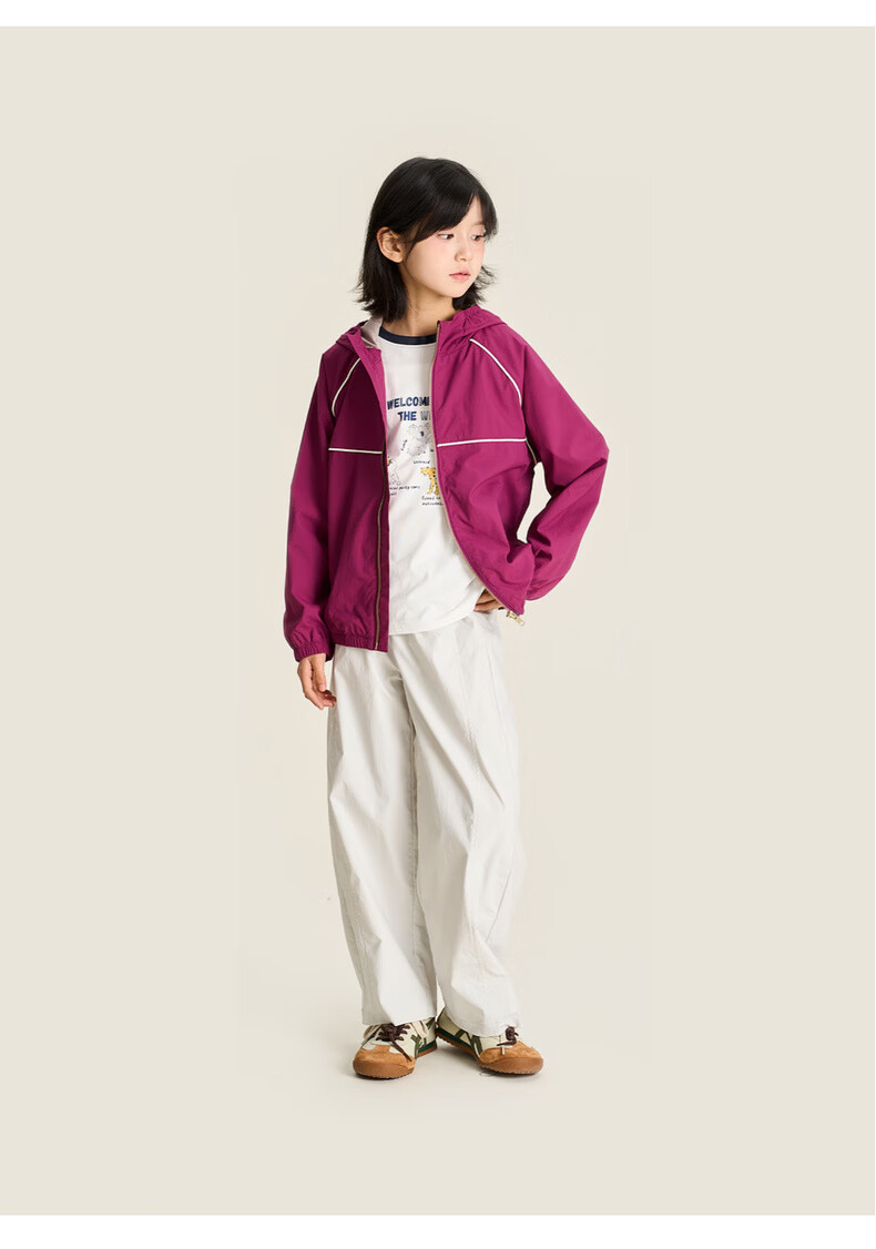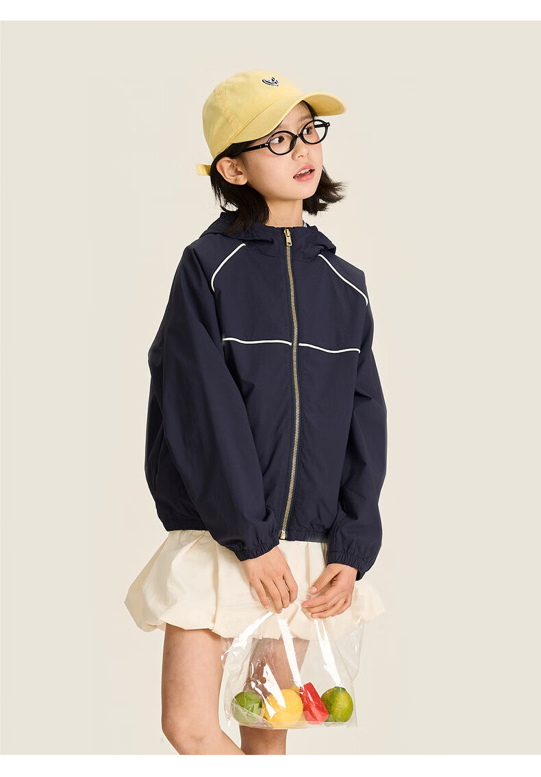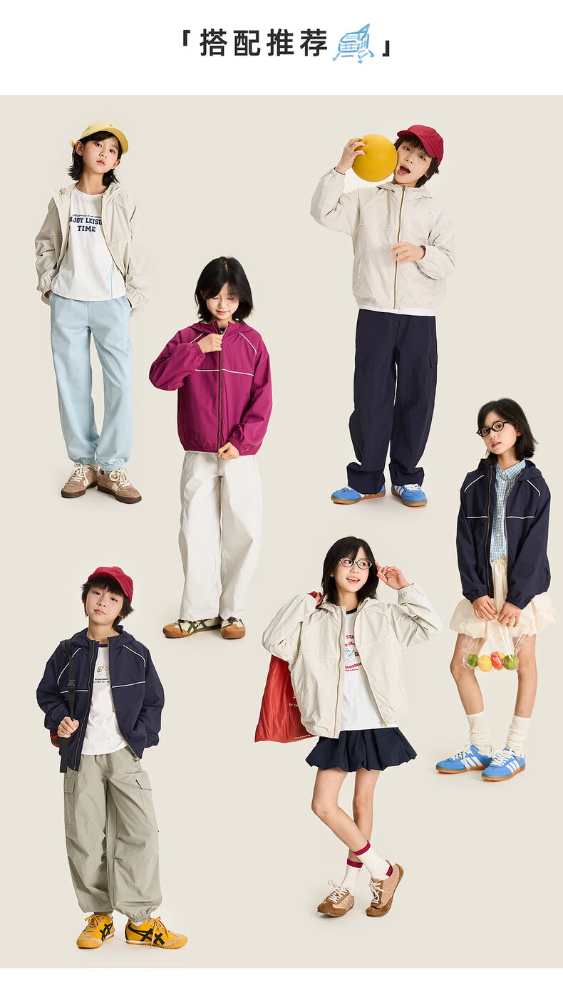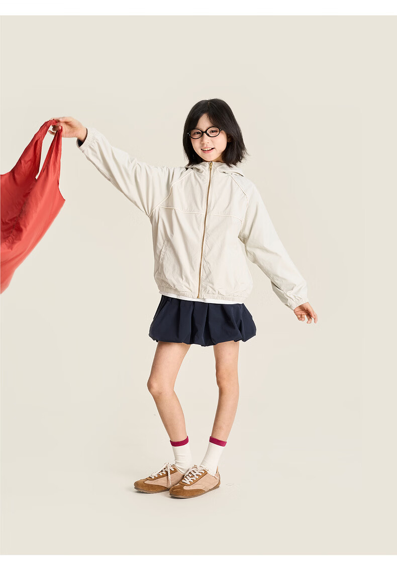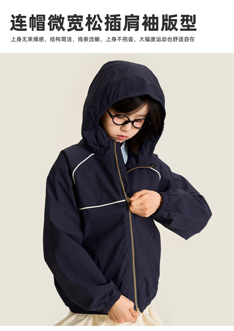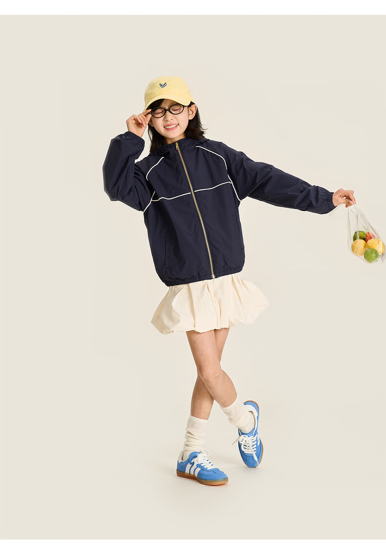 棉叔叔【弹力小方格外套】女童2026春季新品户外内里网眼时尚上衣男童 浅米 120 120