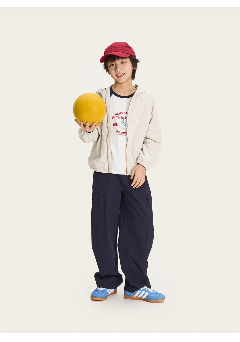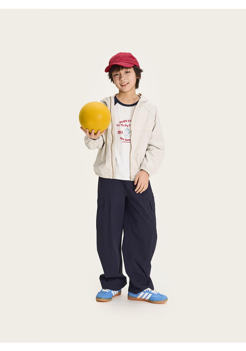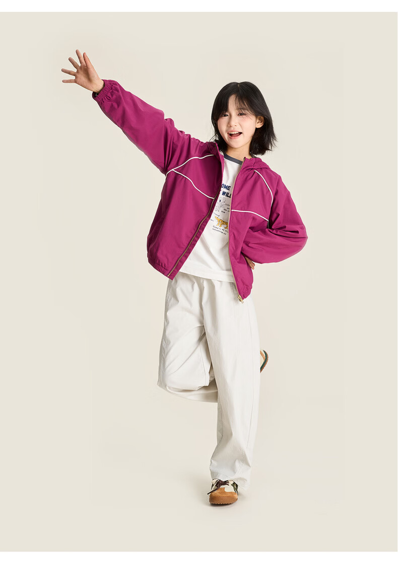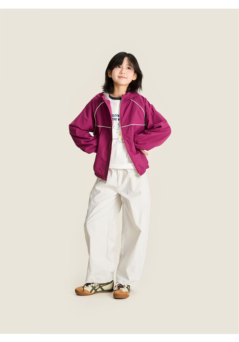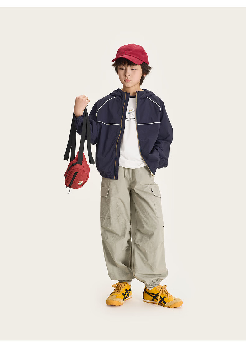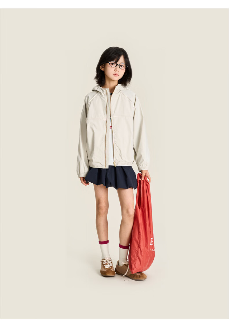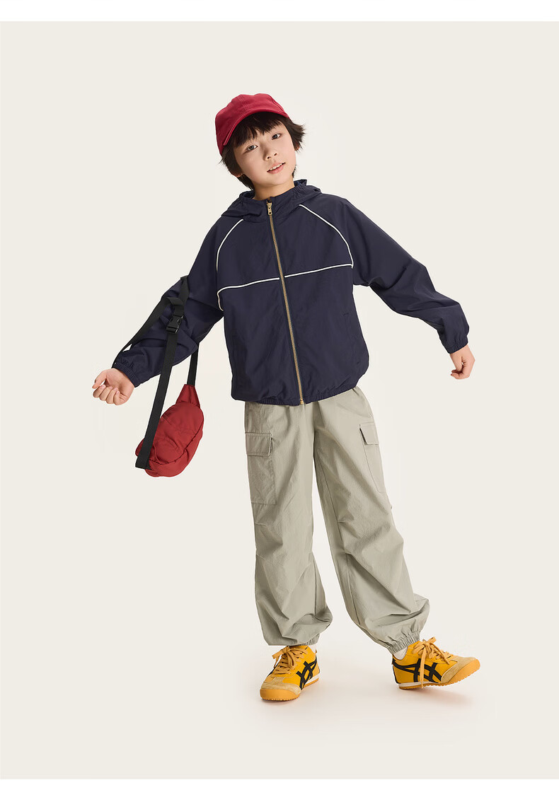 棉叔叔【弹力小方格外套】女童2026春季新品户外内里网眼时尚上衣男童 浅米 120 120