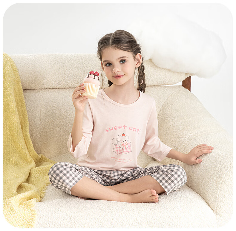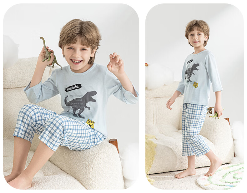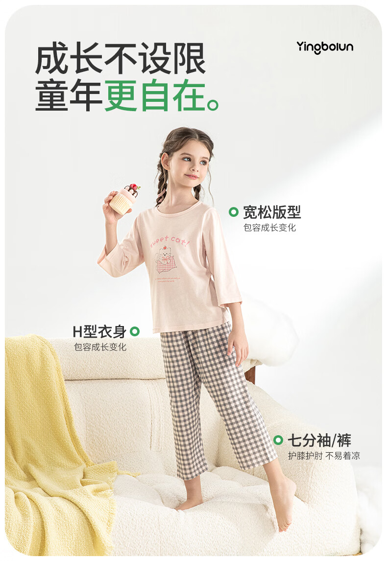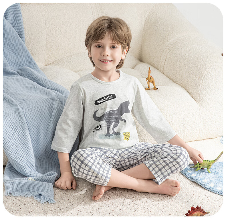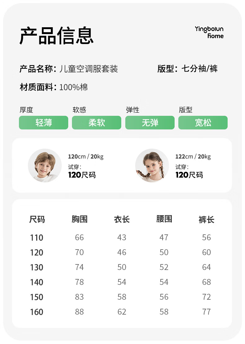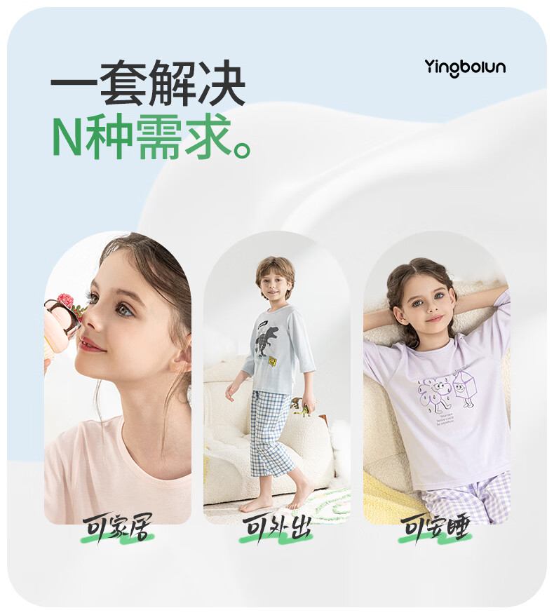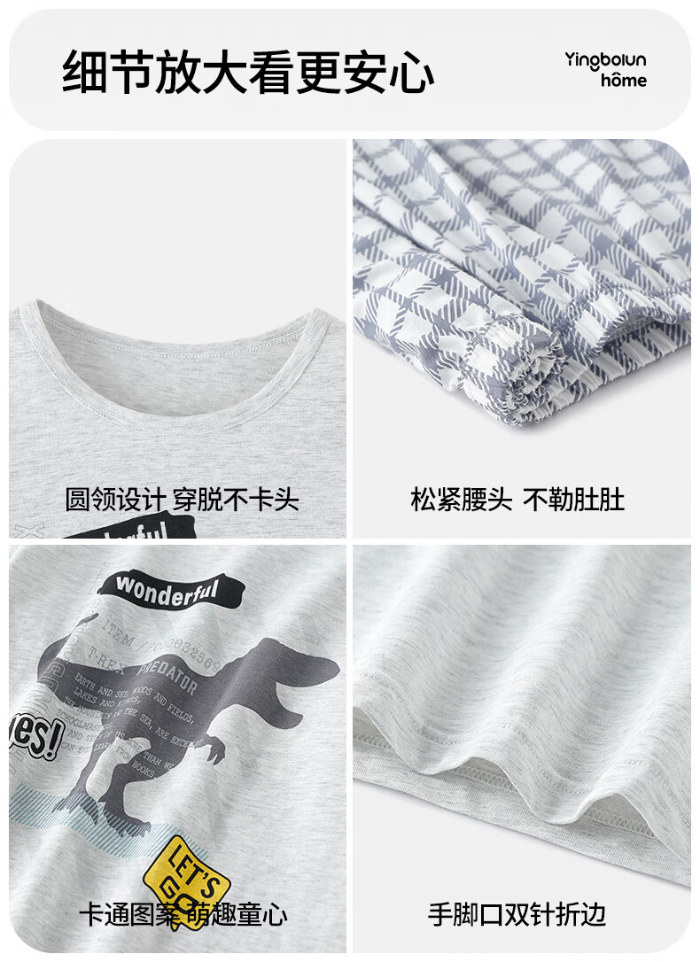 英博伦2026新款男女童睡衣纯棉短袖短裤夏季薄款全棉a类男女孩套装 21213麻灰 160
