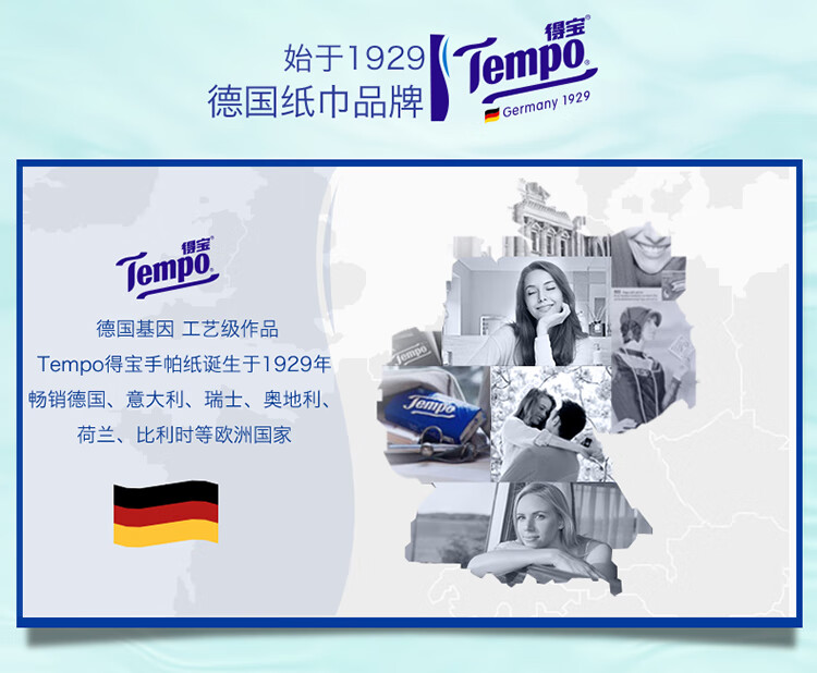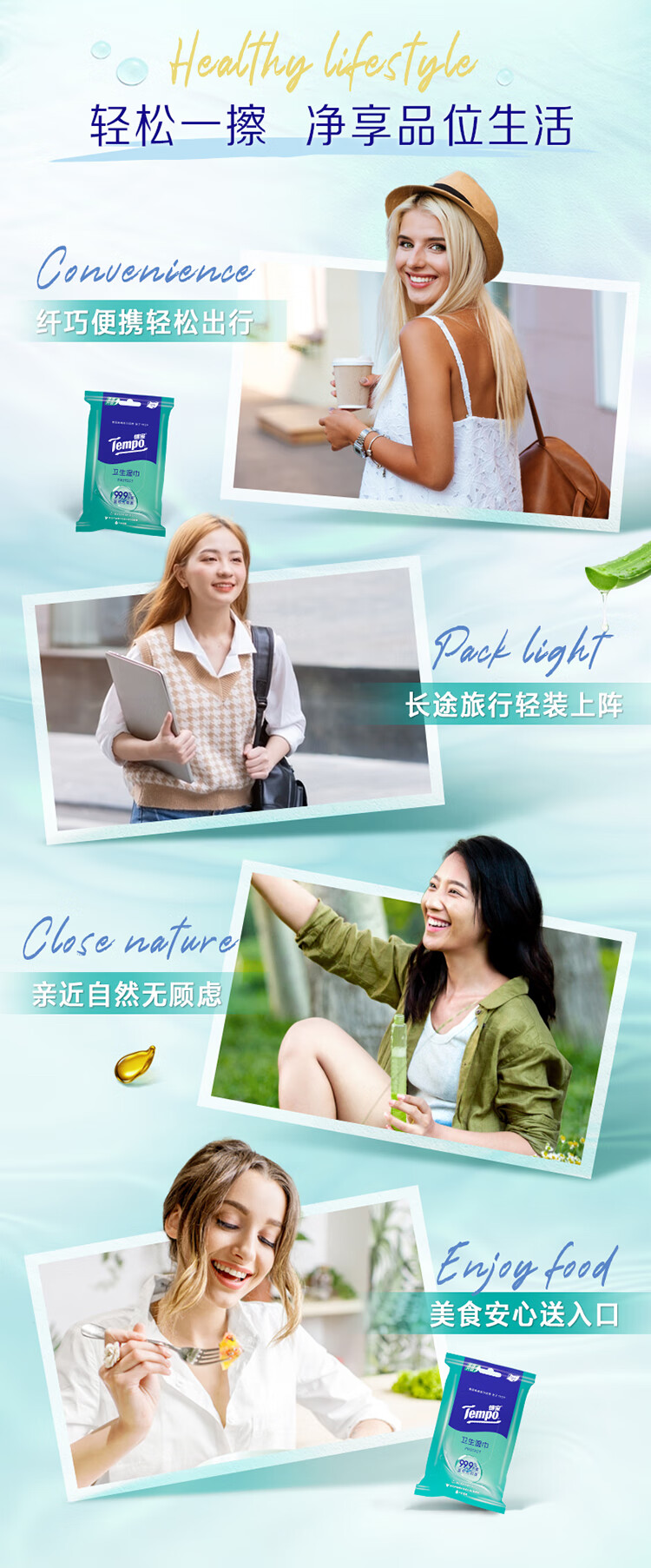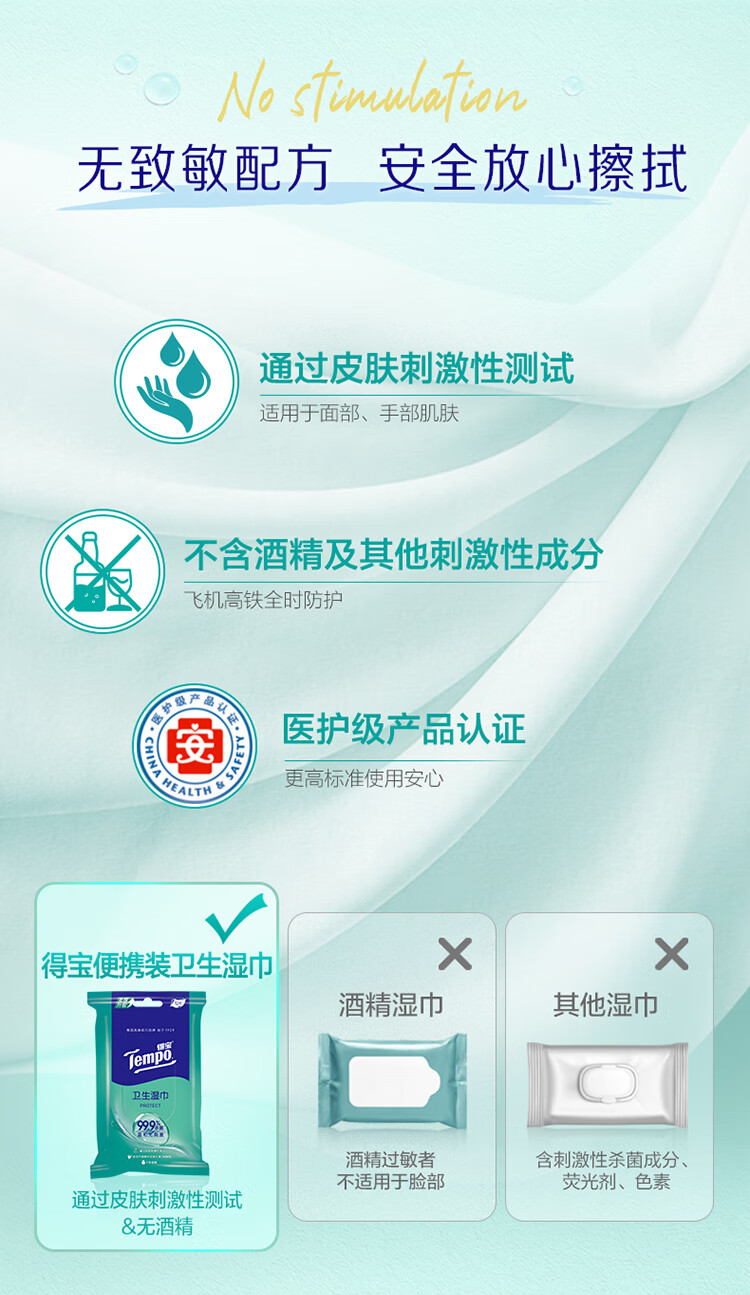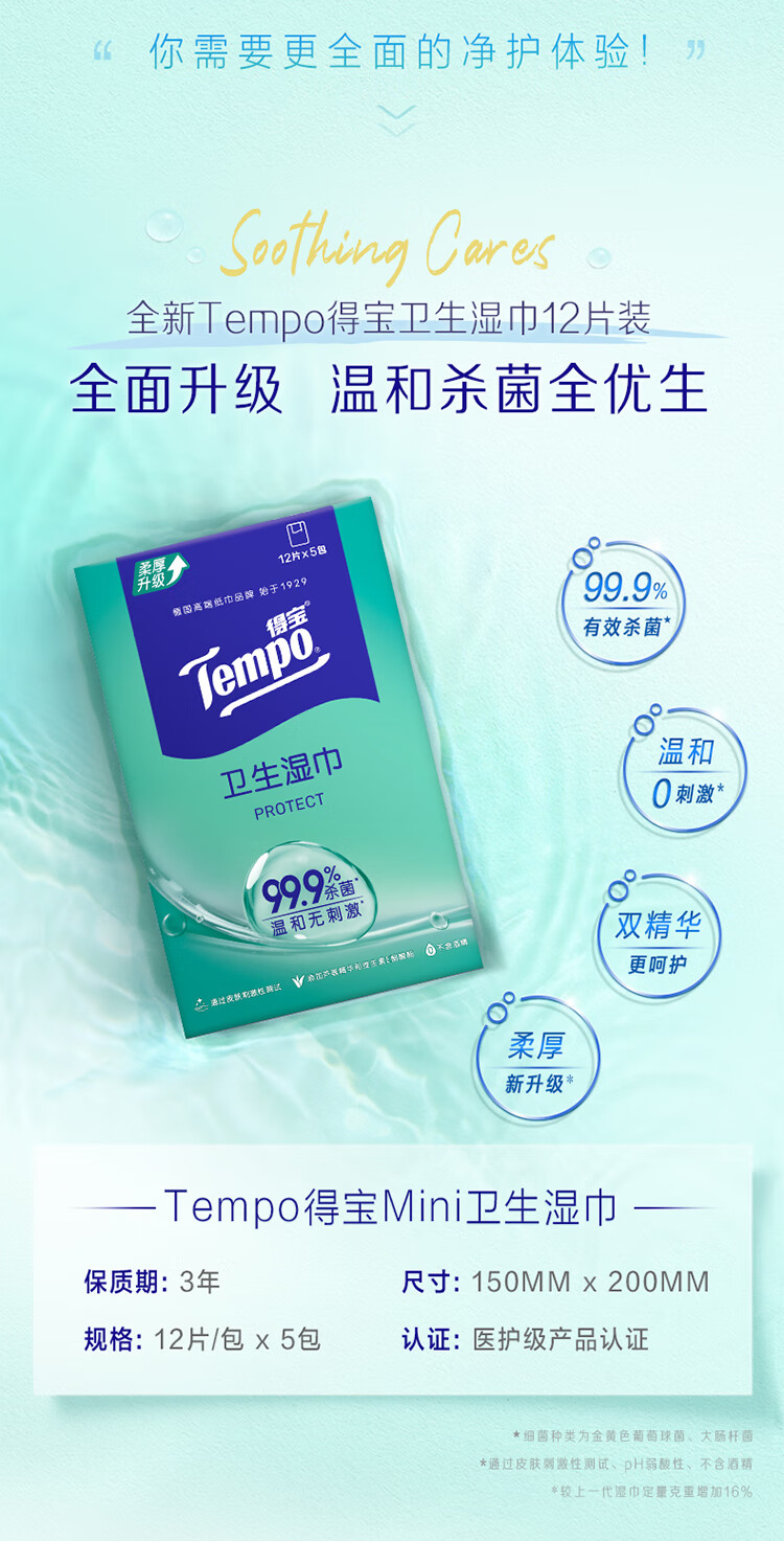 得宝(TEMPO)杀菌湿巾盒装 12片*5包 杀菌率99.9% 温和不刺激 湿纸巾