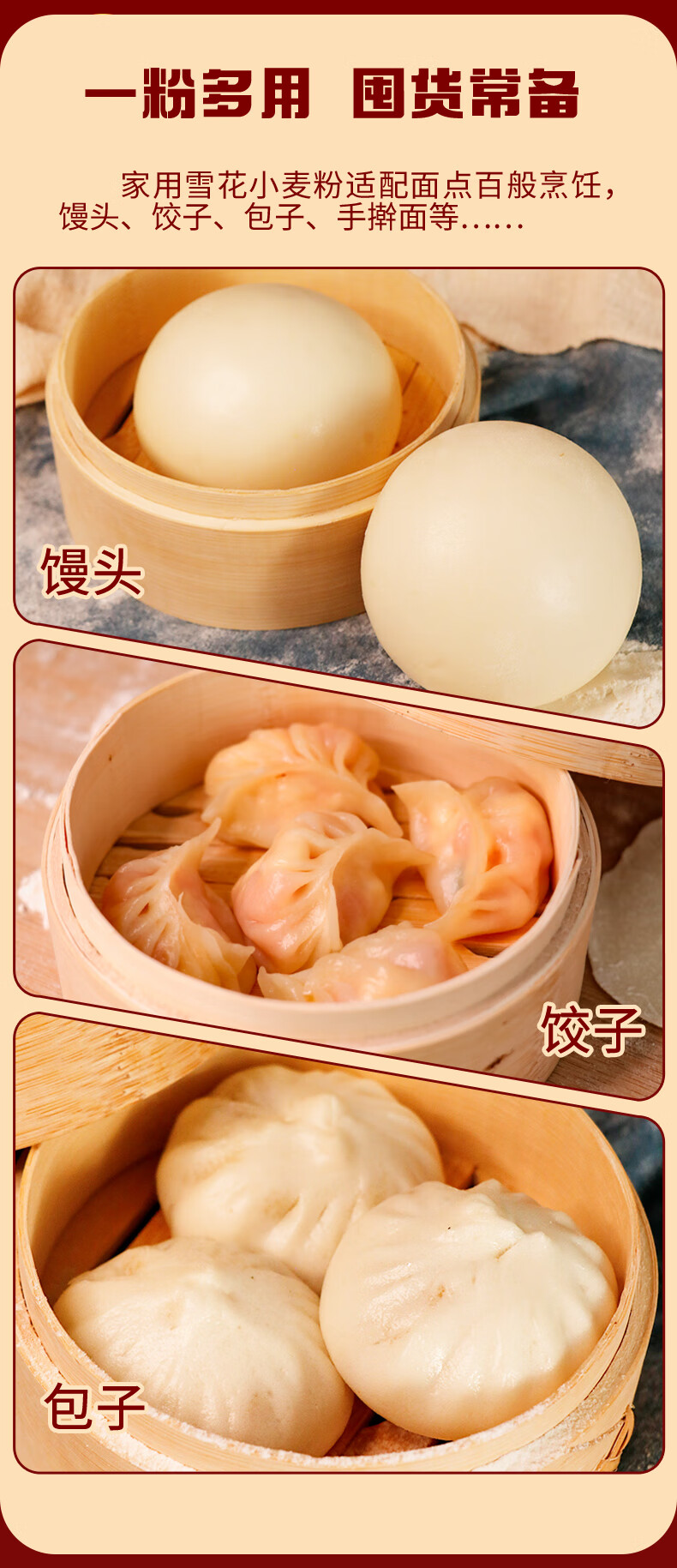 金沙河面粉 雪花小麦粉家用面粉包子馒头水饺手擀面中筋烘焙10斤*5包