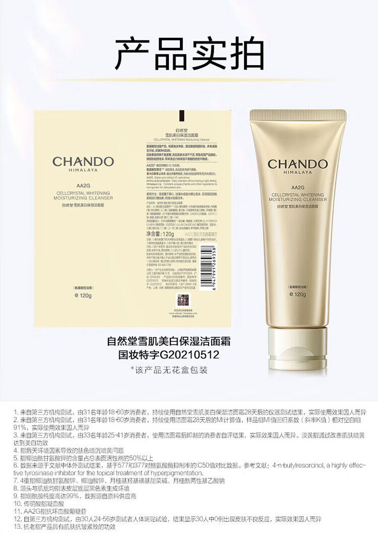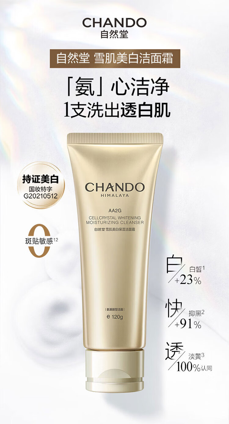 自然堂洗面奶雪肌美白保湿洁面霜氨基酸洗面奶洁面乳护肤品清洁保湿 洁面霜120g