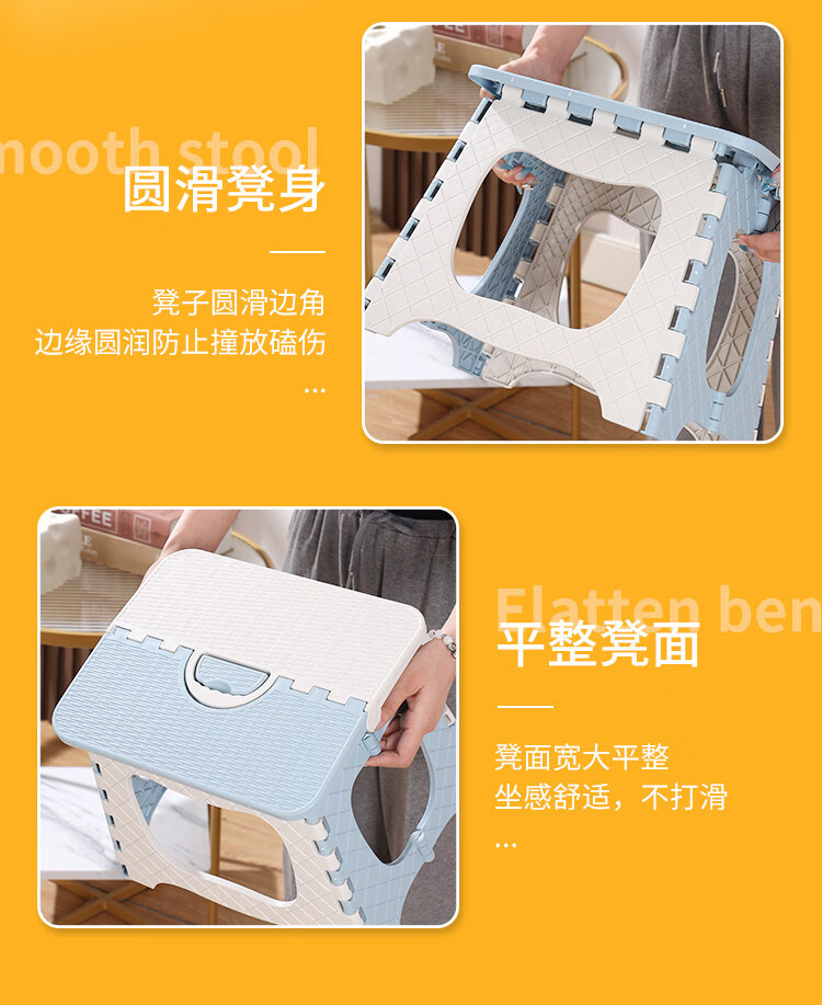 胖东来同款折叠凳户外加厚塑料子便携式家用小板凳马扎露营凳儿童 小号【1个装】蓝色