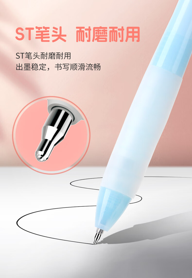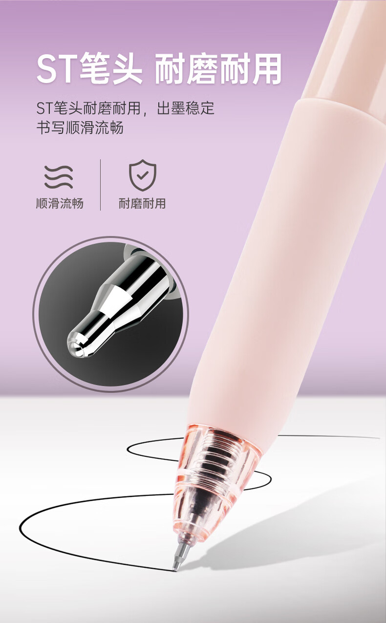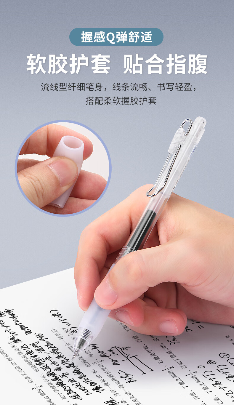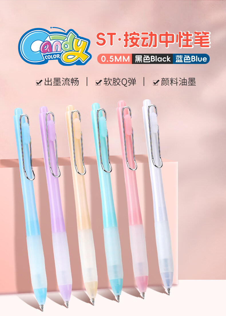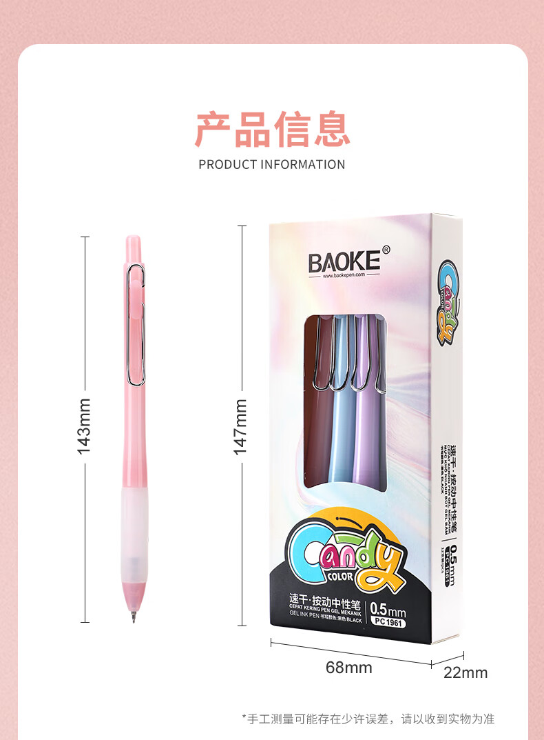 宝克(BAOKE)【开学】按动中性笔 ST笔尖0.5mm按动笔软胶护套高颜值学生中性笔刷题笔考试中考高考用签字笔办公 书写-黑色【高颜值马卡龙彩色笔杆】 12支装/盒【店长推荐】