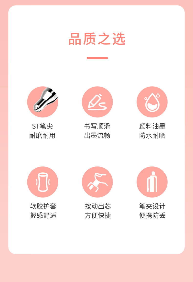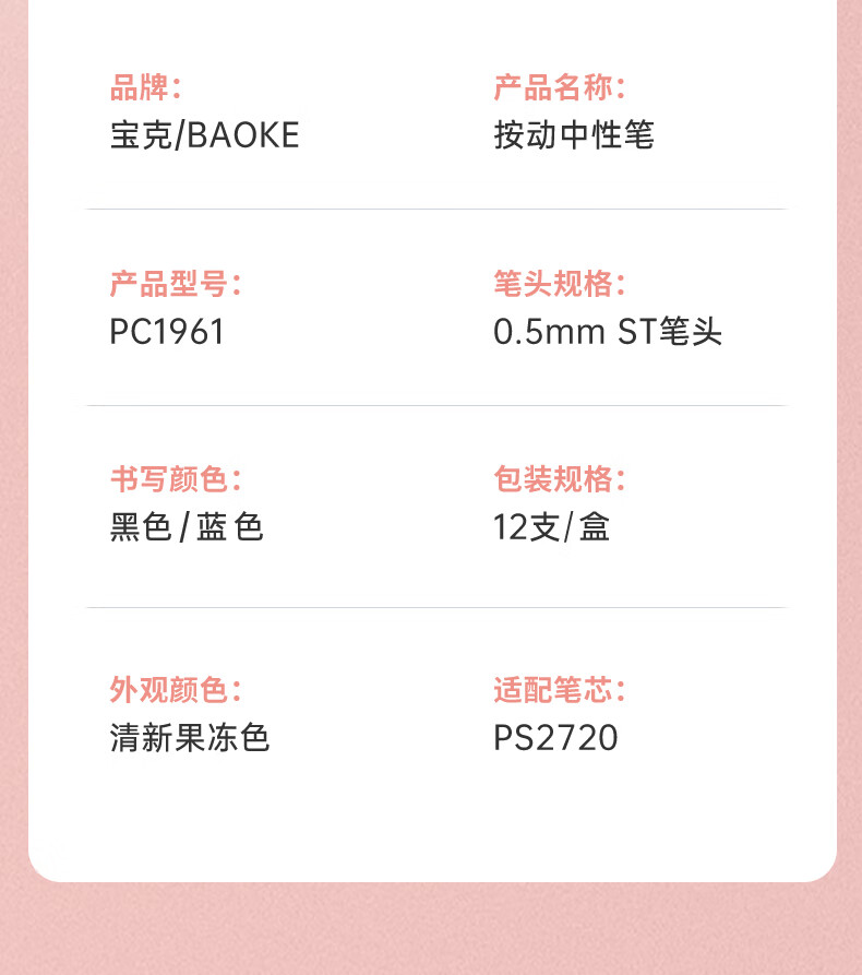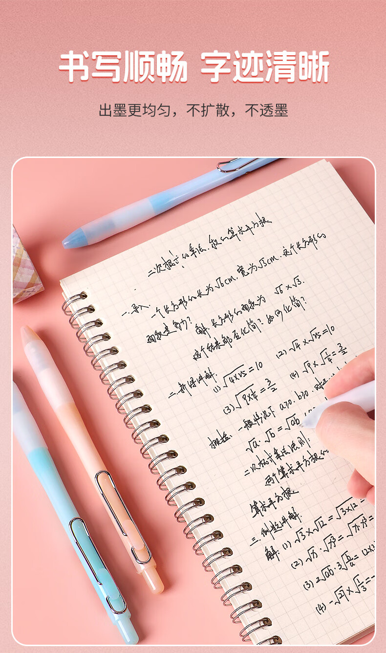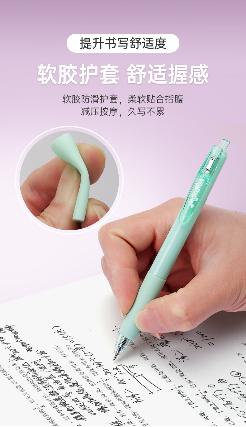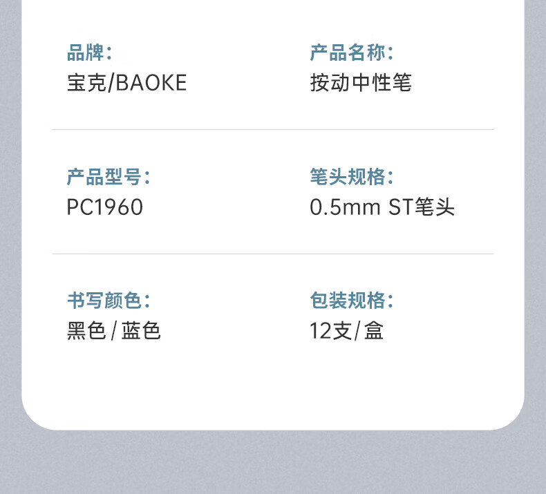 宝克(BAOKE)【开学】按动中性笔 ST笔尖0.5mm按动笔软胶护套高颜值学生中性笔刷题笔考试中考高考用签字笔办公 书写-黑色【高颜值马卡龙彩色笔杆】 12支装/盒【店长推荐】