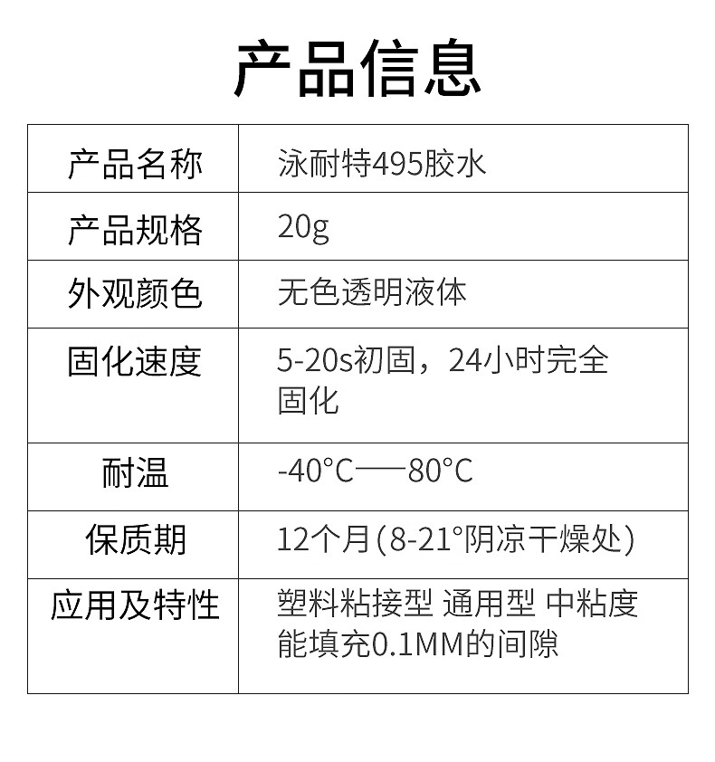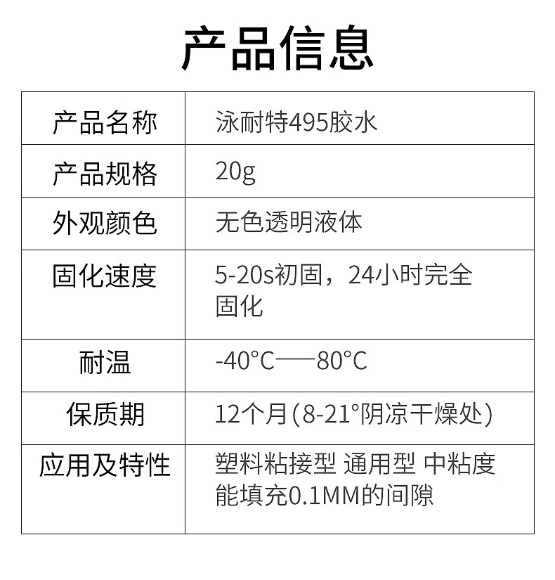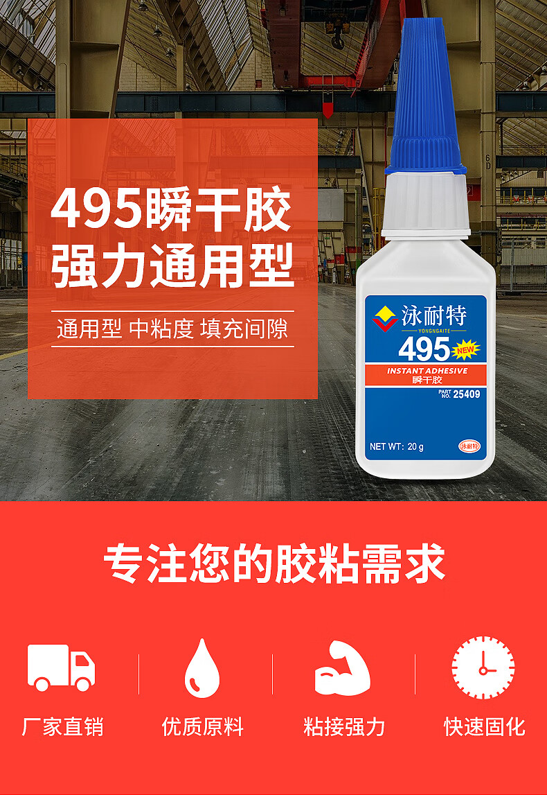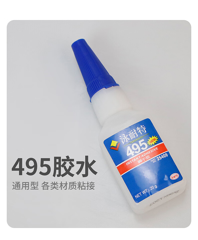 永耐特495胶水快干型粘金属塑料橡胶皮革木材PVC陶瓷DIY零件手工强力胶 495胶水 10支装【送点胶管】