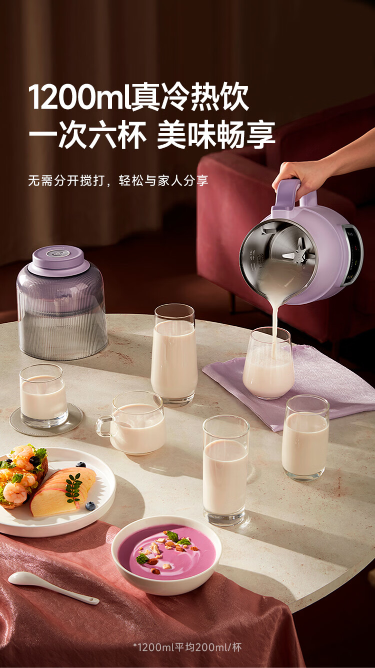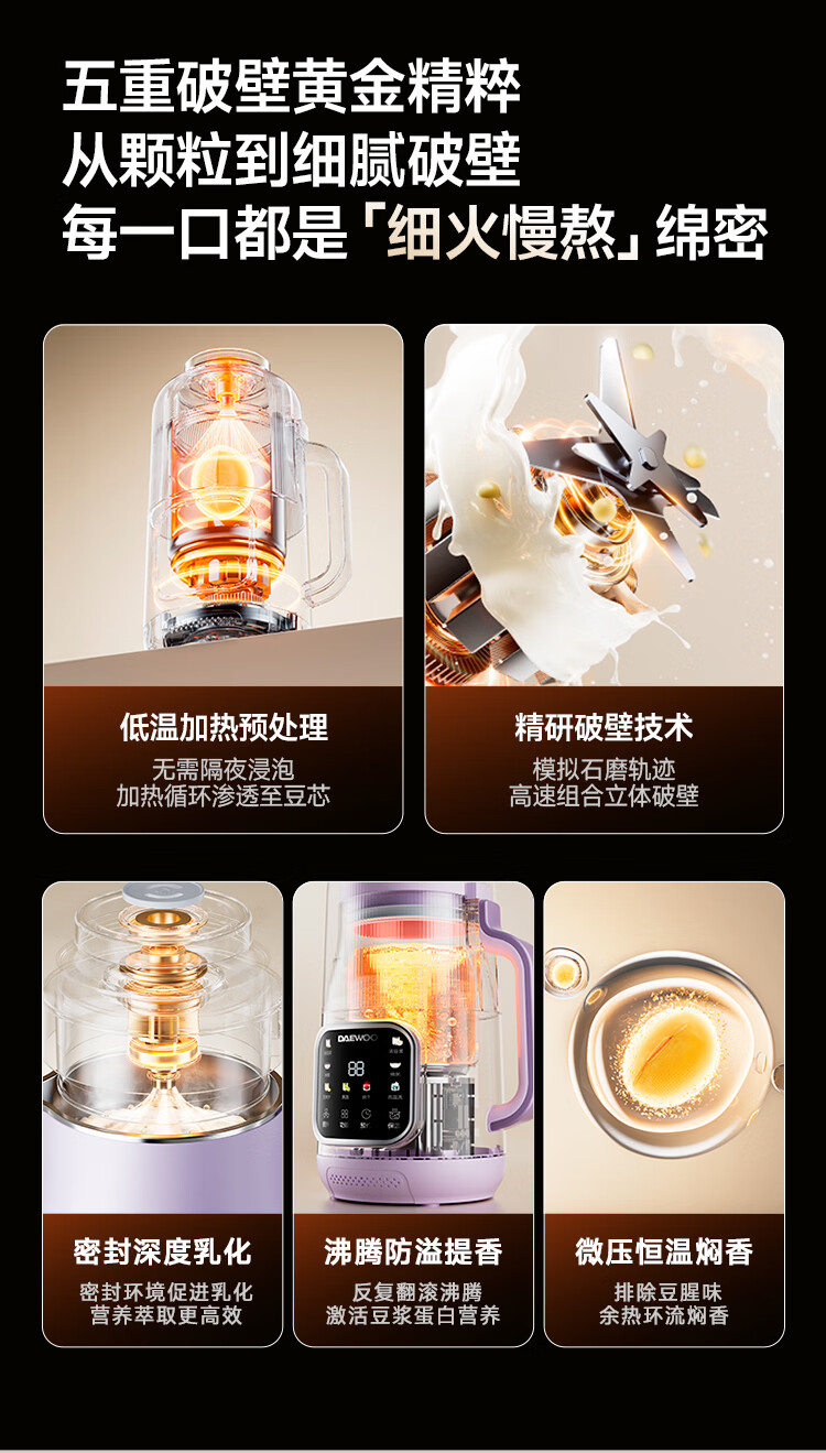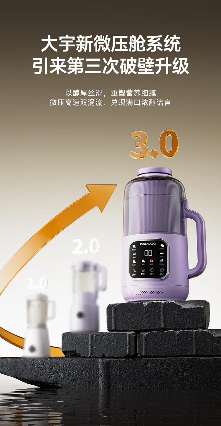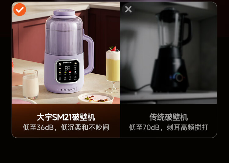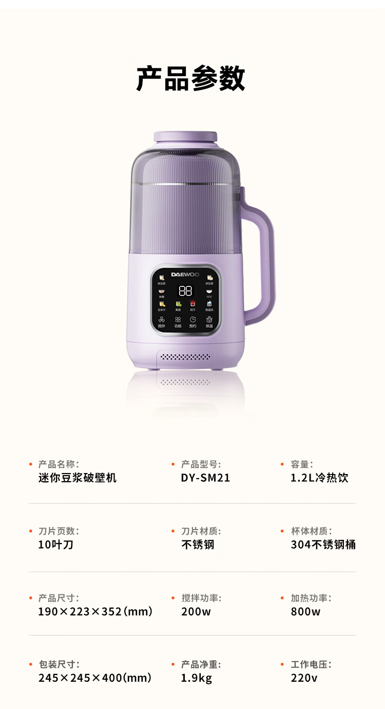 大宇(DAEWOO)【2026年热销推荐】家用破壁机轻音家用豆浆机料理机全自动免煮免滤五谷杂粮大容量榨汁机SM21 25年1.2L炫彩大屏MAX(紫色)