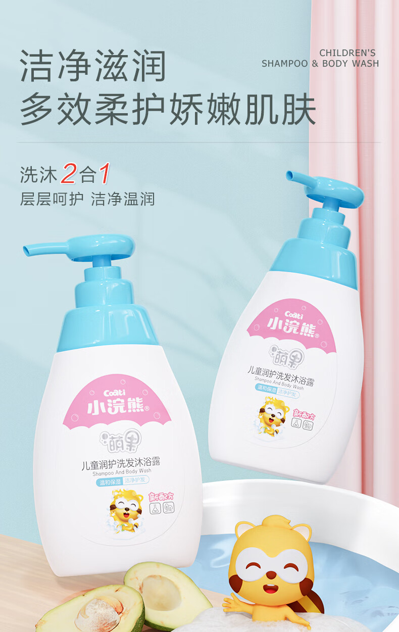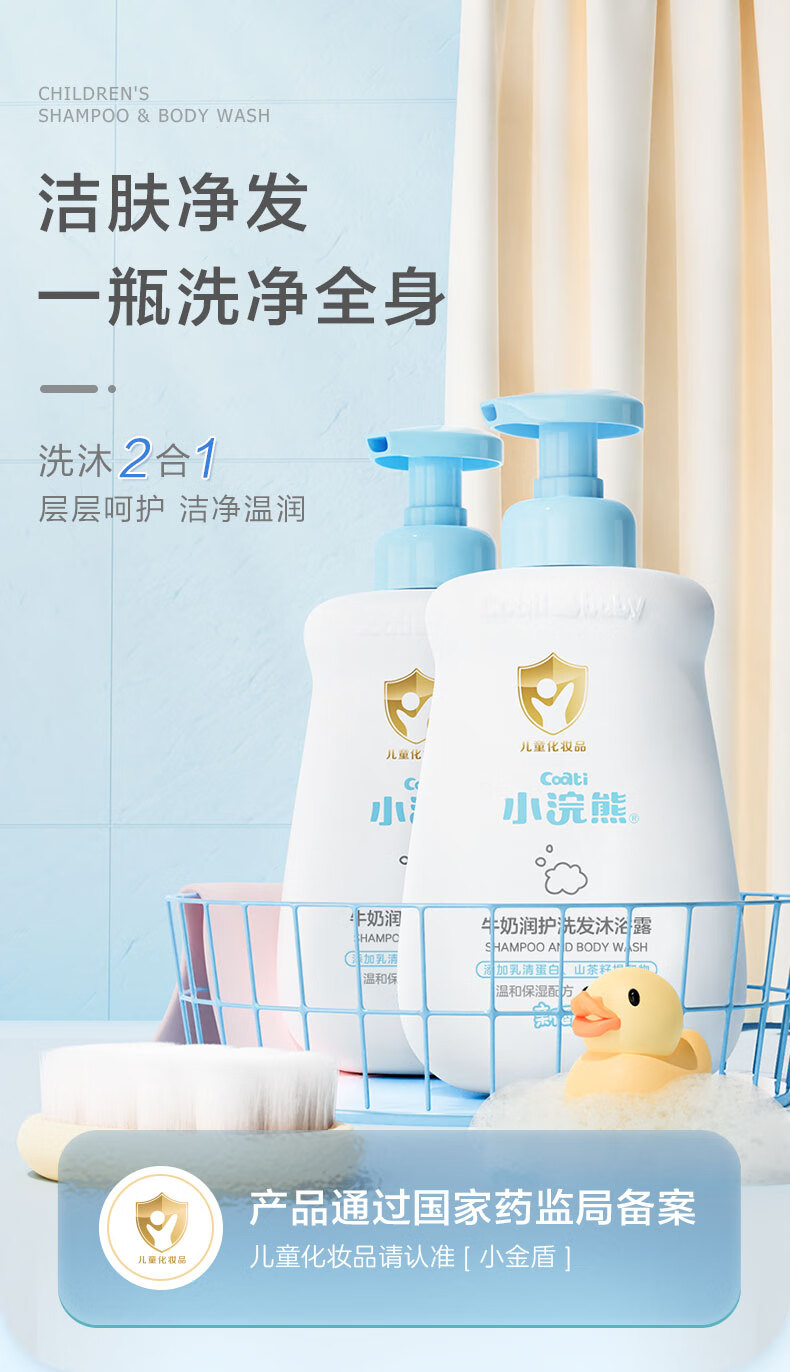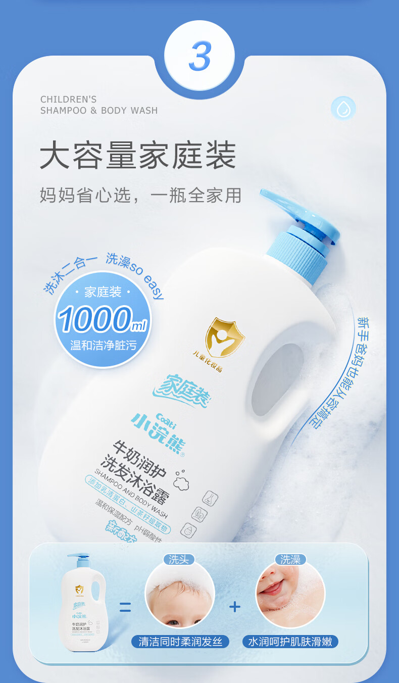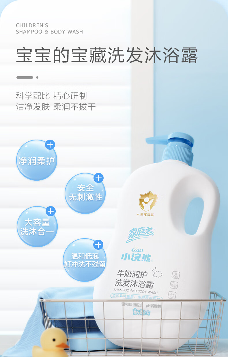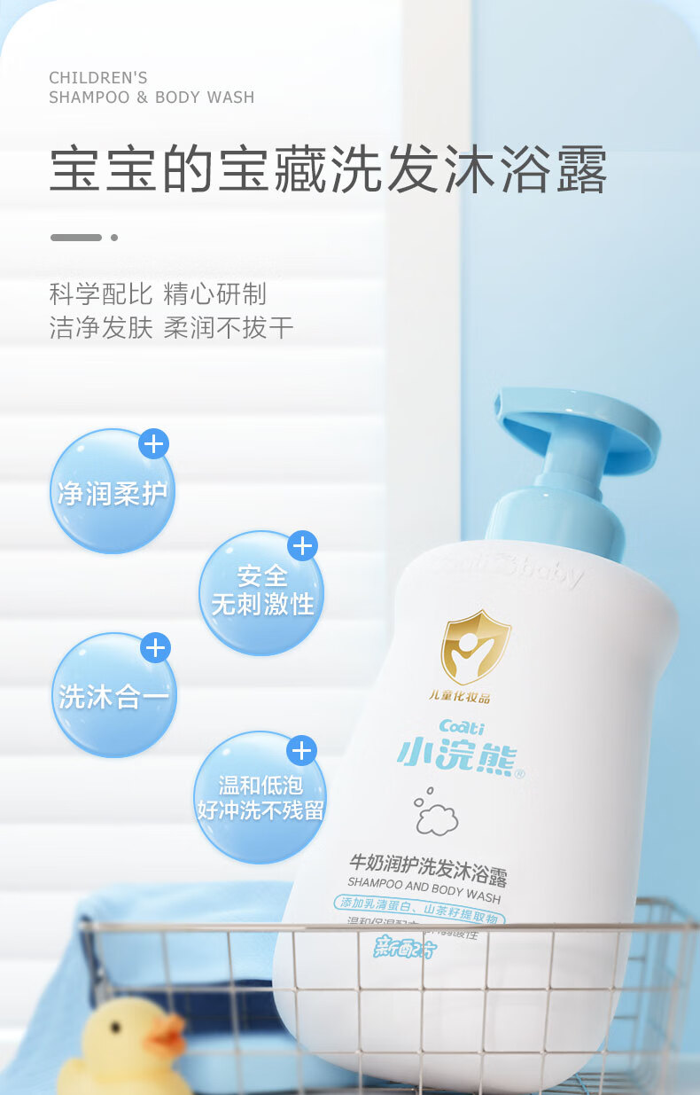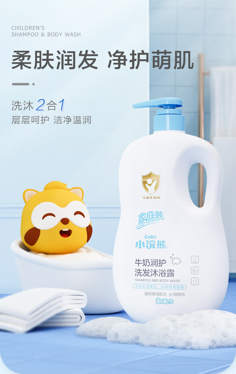 小浣熊 儿童沐浴露洗发水二合一按压瓶子温和洗澡洗护用品 【1瓶】牛奶润护洗发沐浴露1L