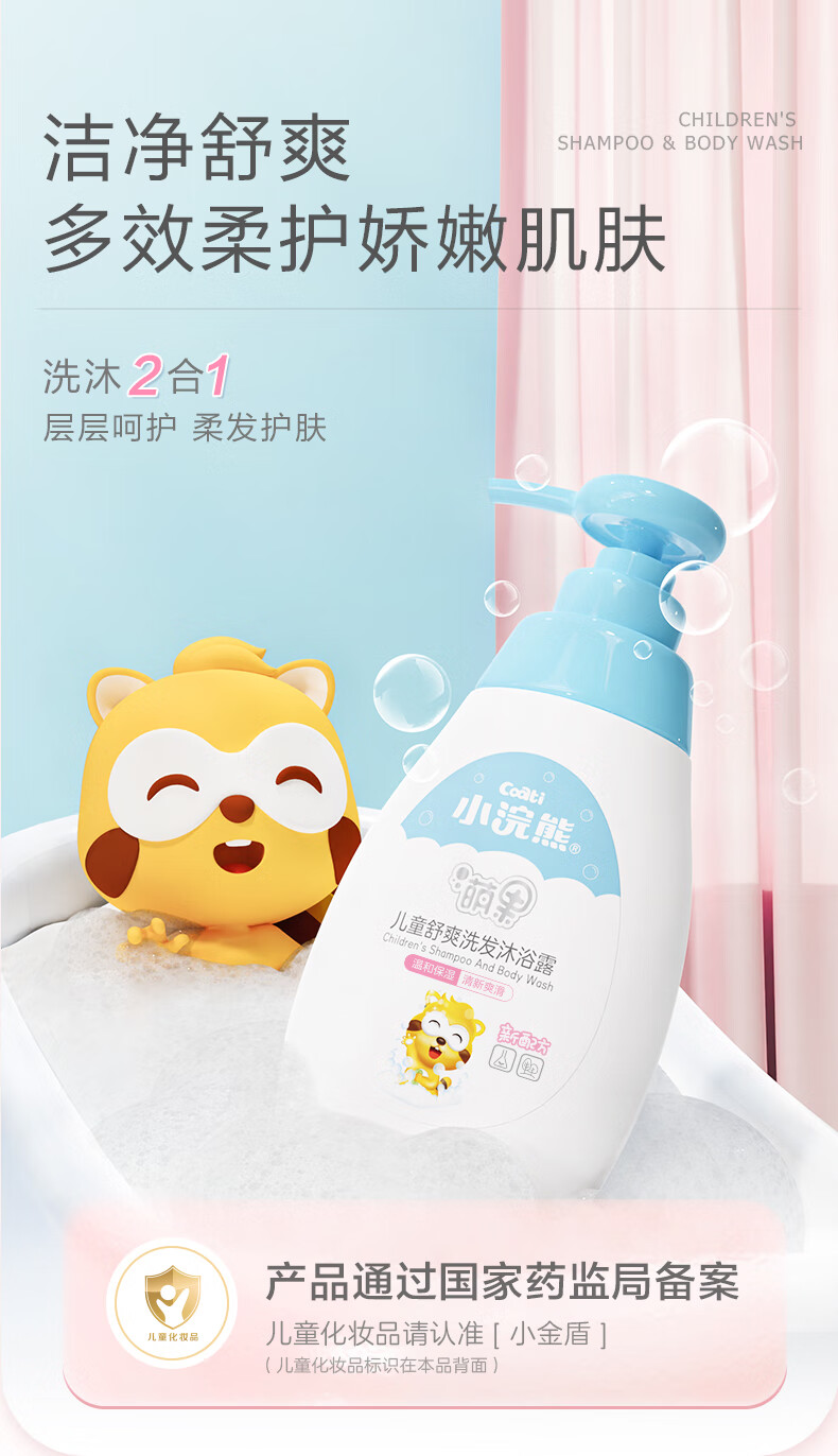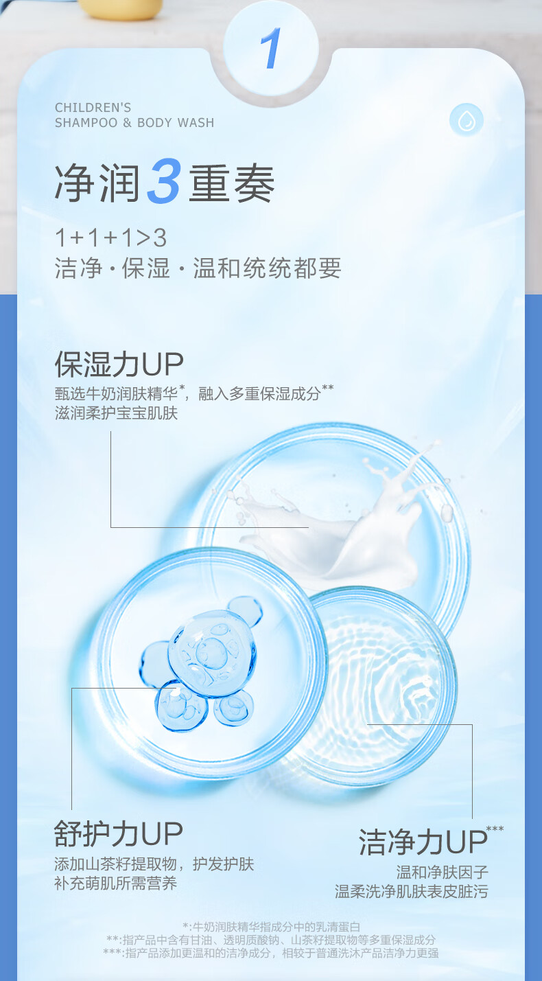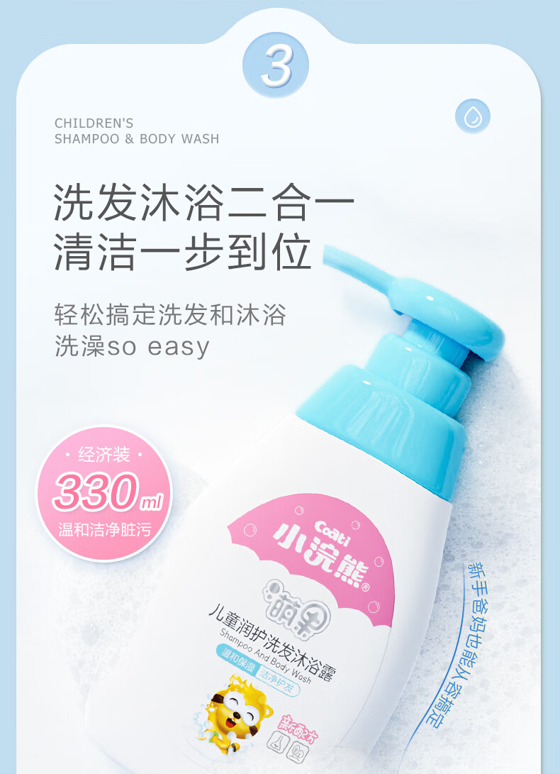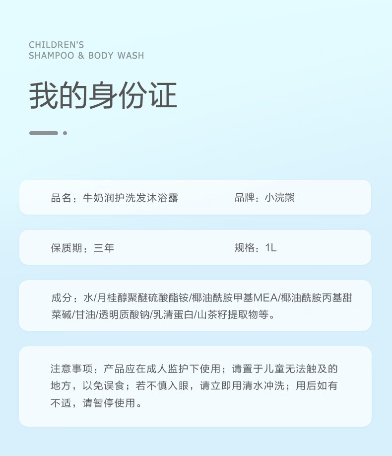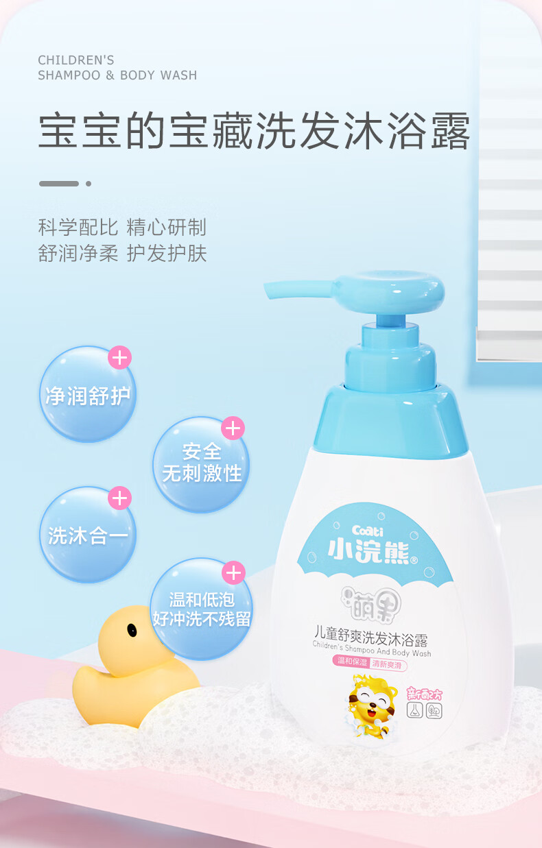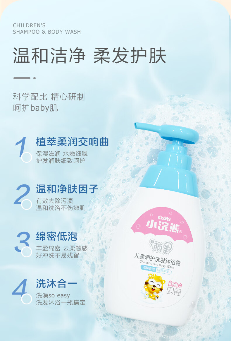 小浣熊 儿童沐浴露洗发水二合一按压瓶子温和洗澡洗护用品 【1瓶】牛奶润护洗发沐浴露1L