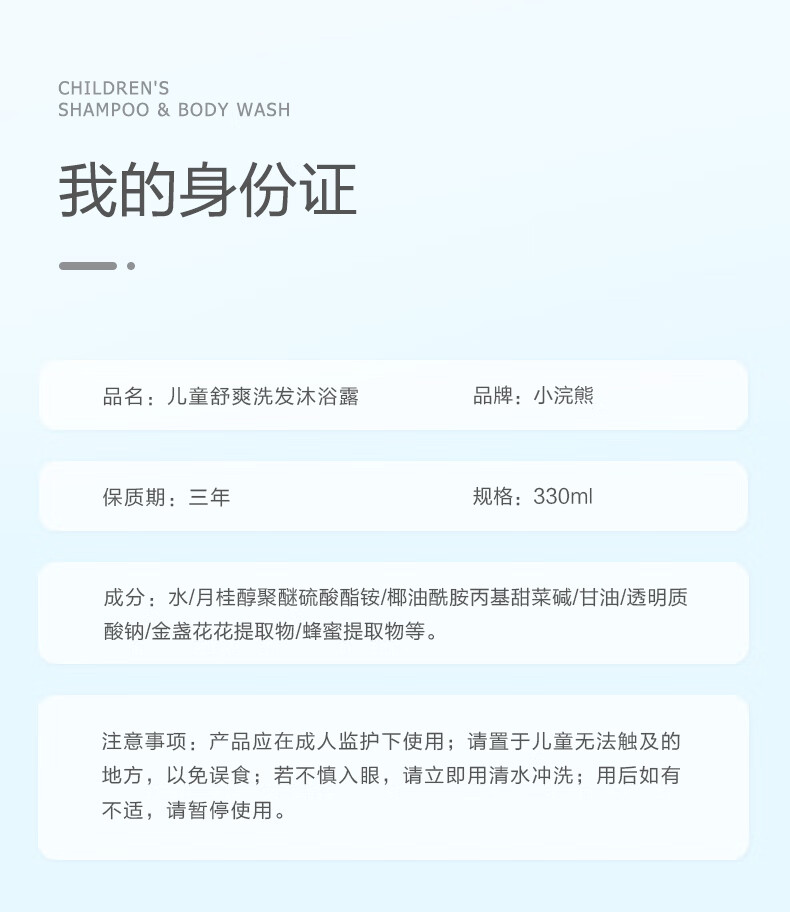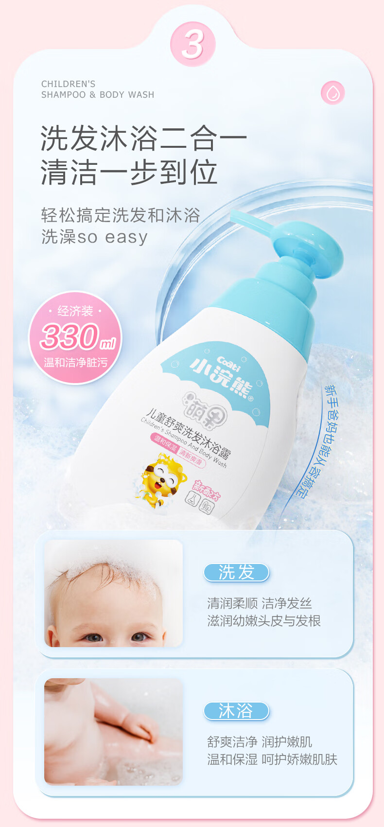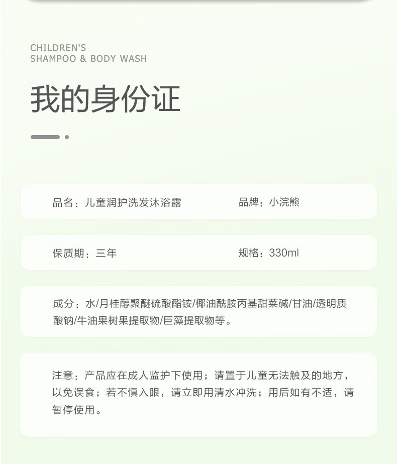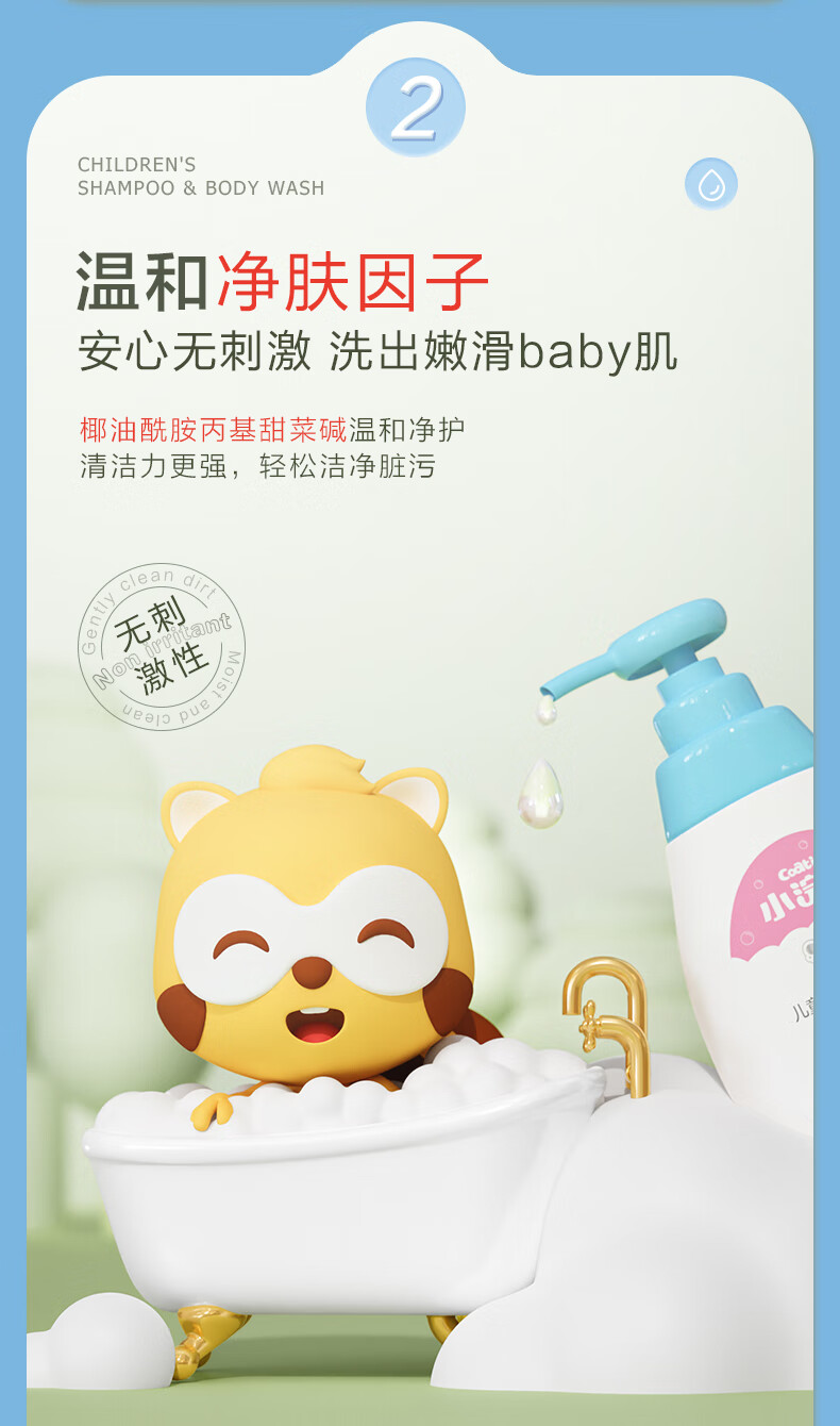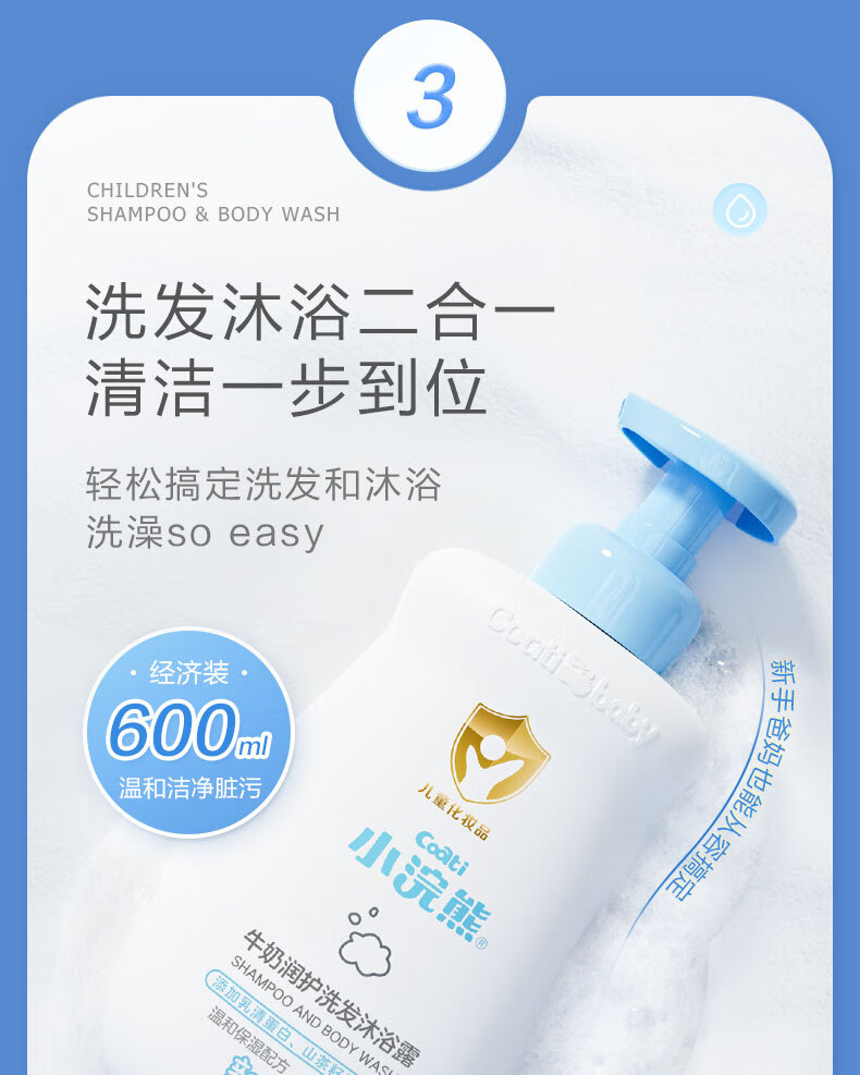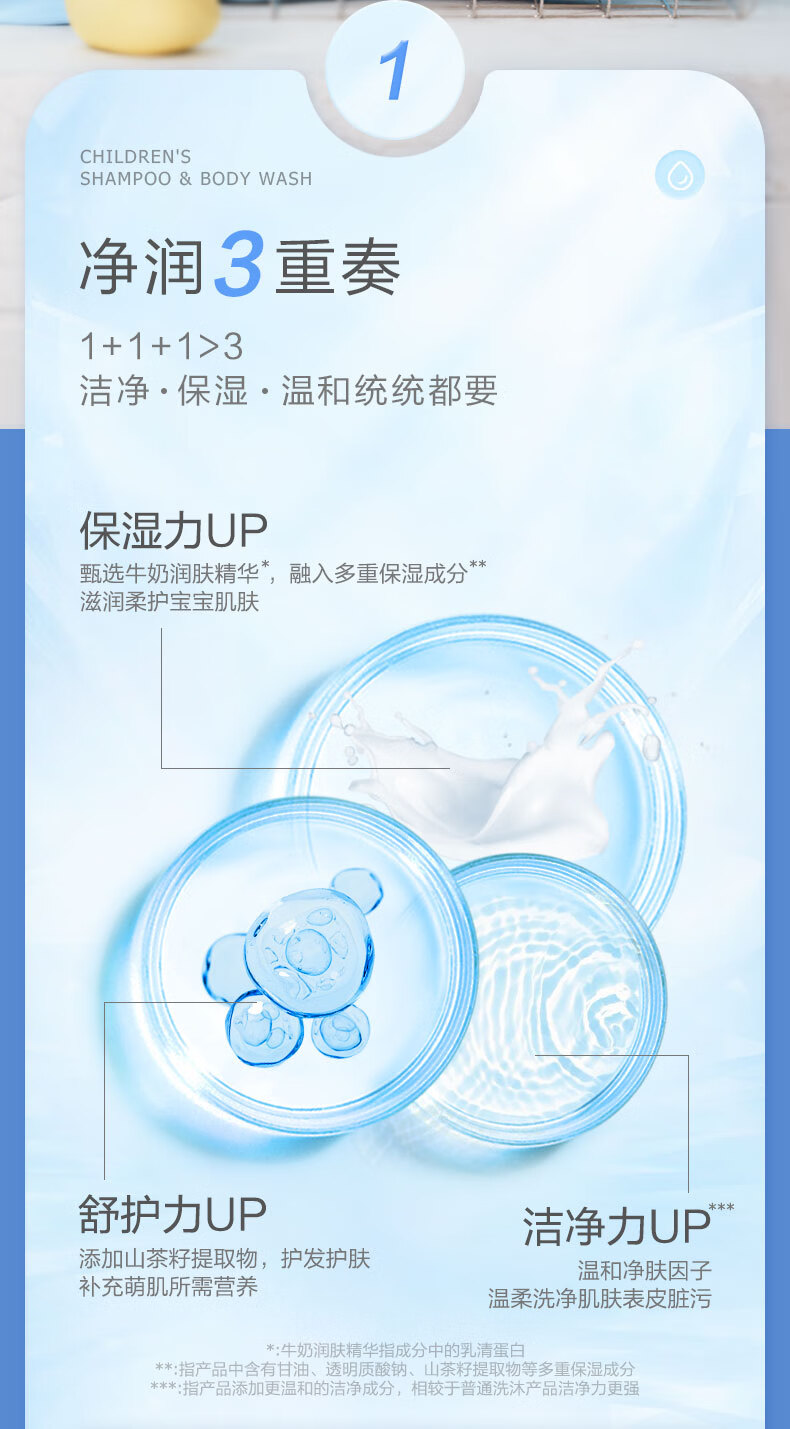 小浣熊 儿童沐浴露洗发水二合一按压瓶子温和洗澡洗护用品 【1瓶】牛奶润护洗发沐浴露1L