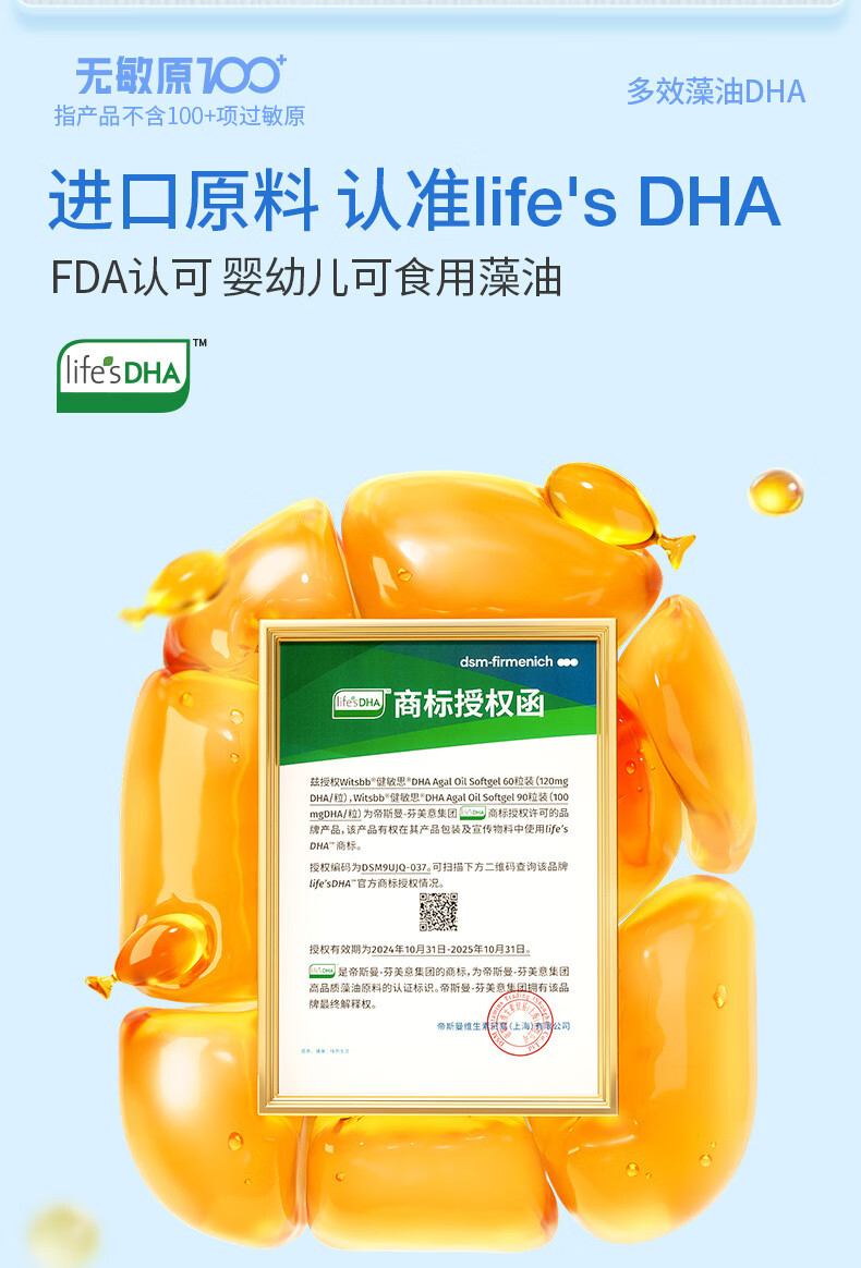 witsbb健敏思藻油dha婴幼儿0-3岁多效复合宝宝儿童藻油DHA2瓶装敏宝专研