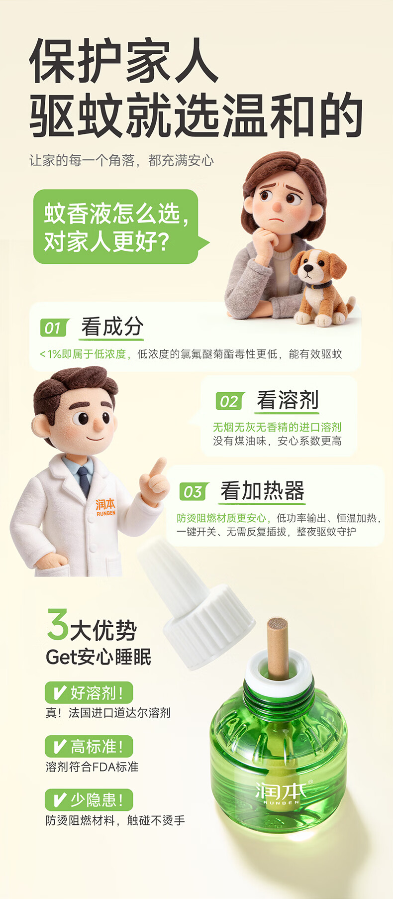 润本蚊香液电蚊香液驱蚊液45ml*3瓶驱蚊防蚊补充装(无蚊香加热器)