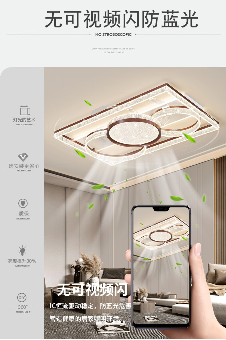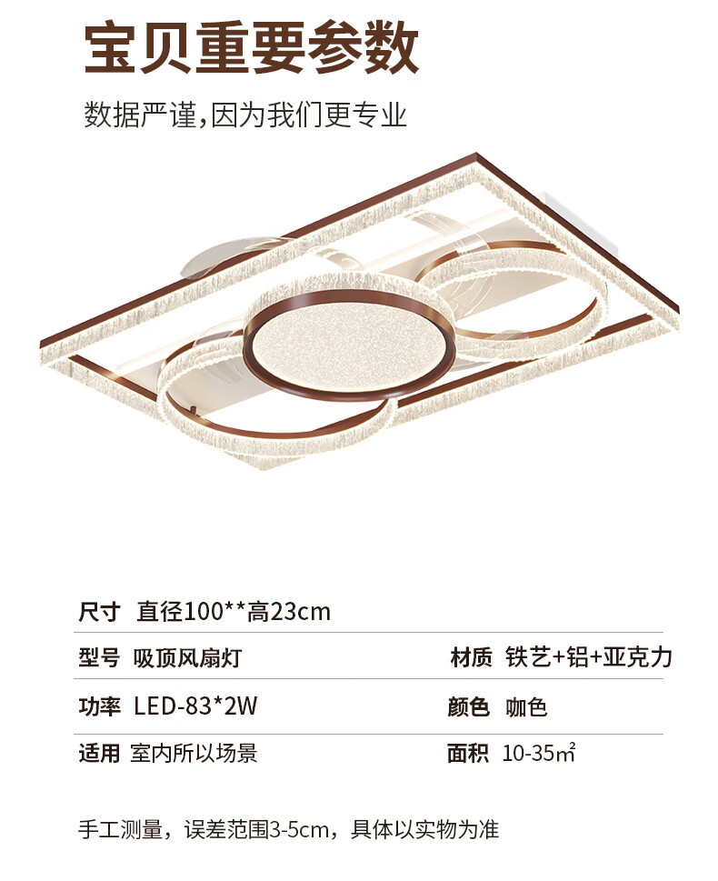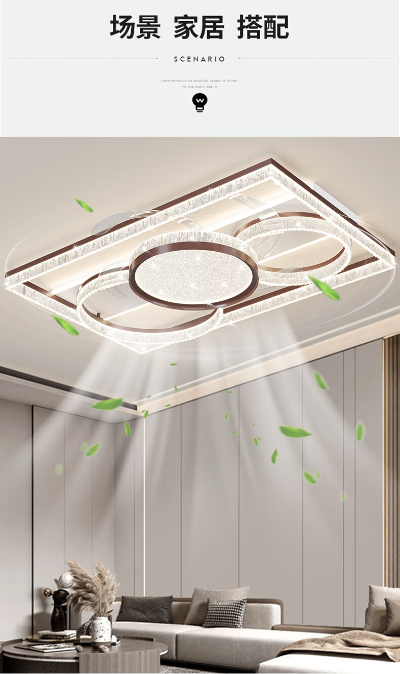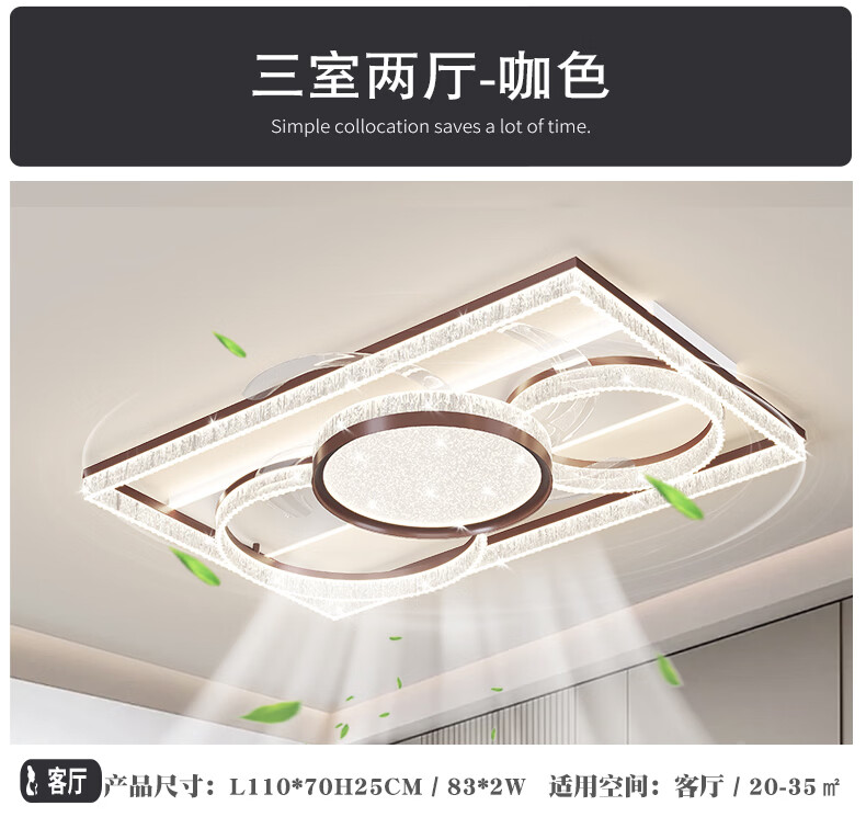 繁奢风扇客厅大灯简约吸顶风扇灯广东中山灯具套餐三室两厅主灯卧室灯 0329+咖色+110CM+83*2W 离线语音