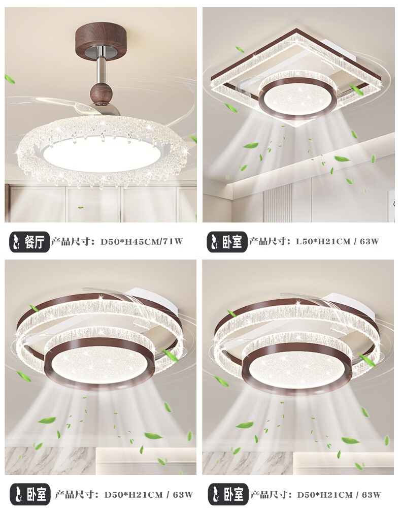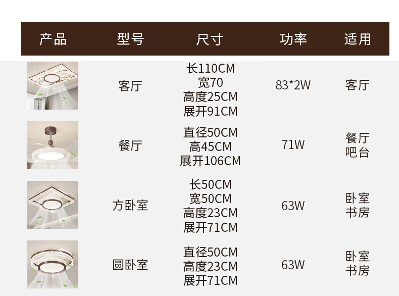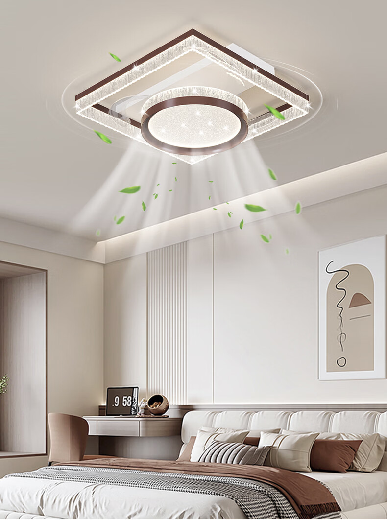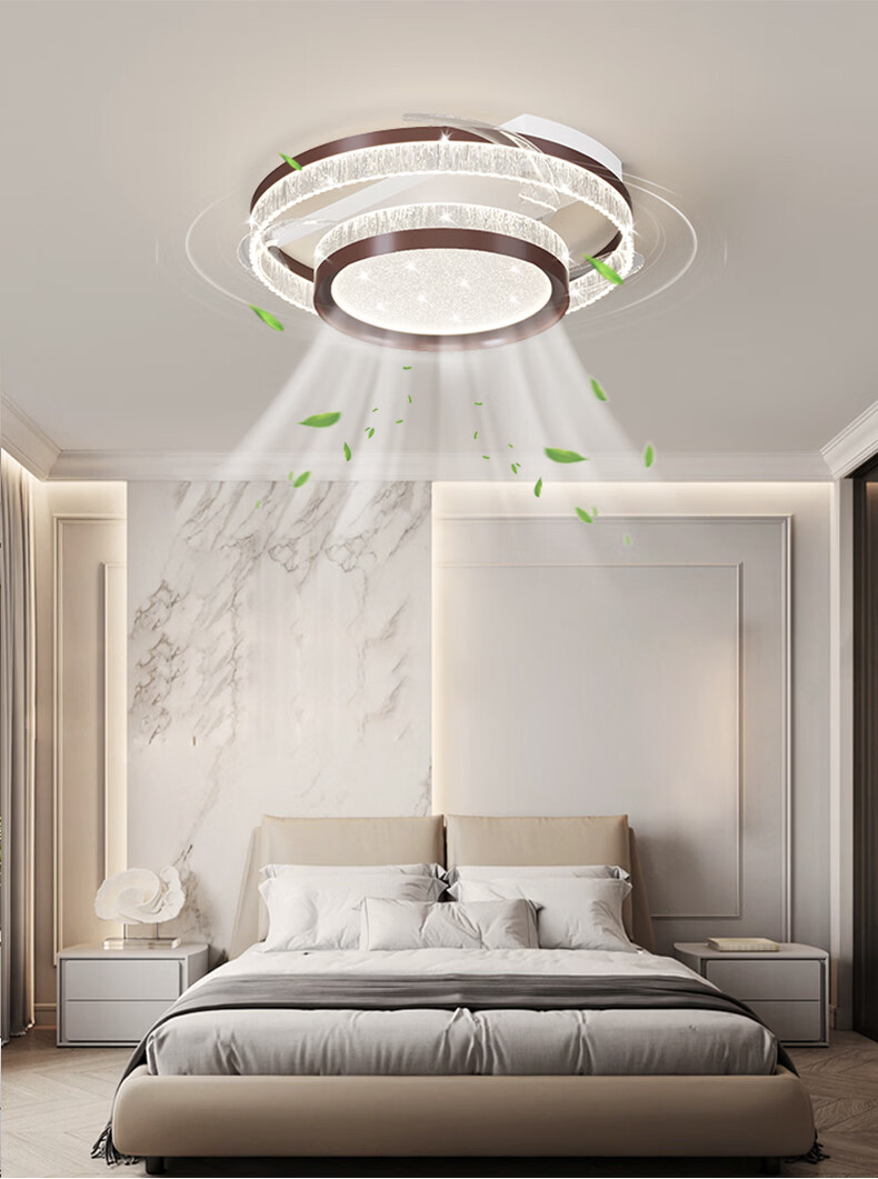繁奢风扇客厅大灯简约吸顶风扇灯广东中山灯具套餐三室两厅主灯卧室灯 0329+咖色+110CM+83*2W 离线语音