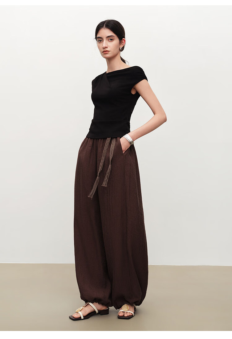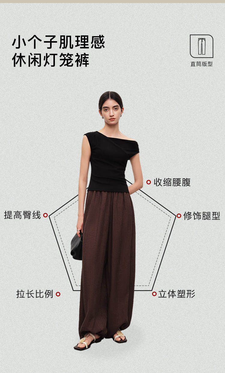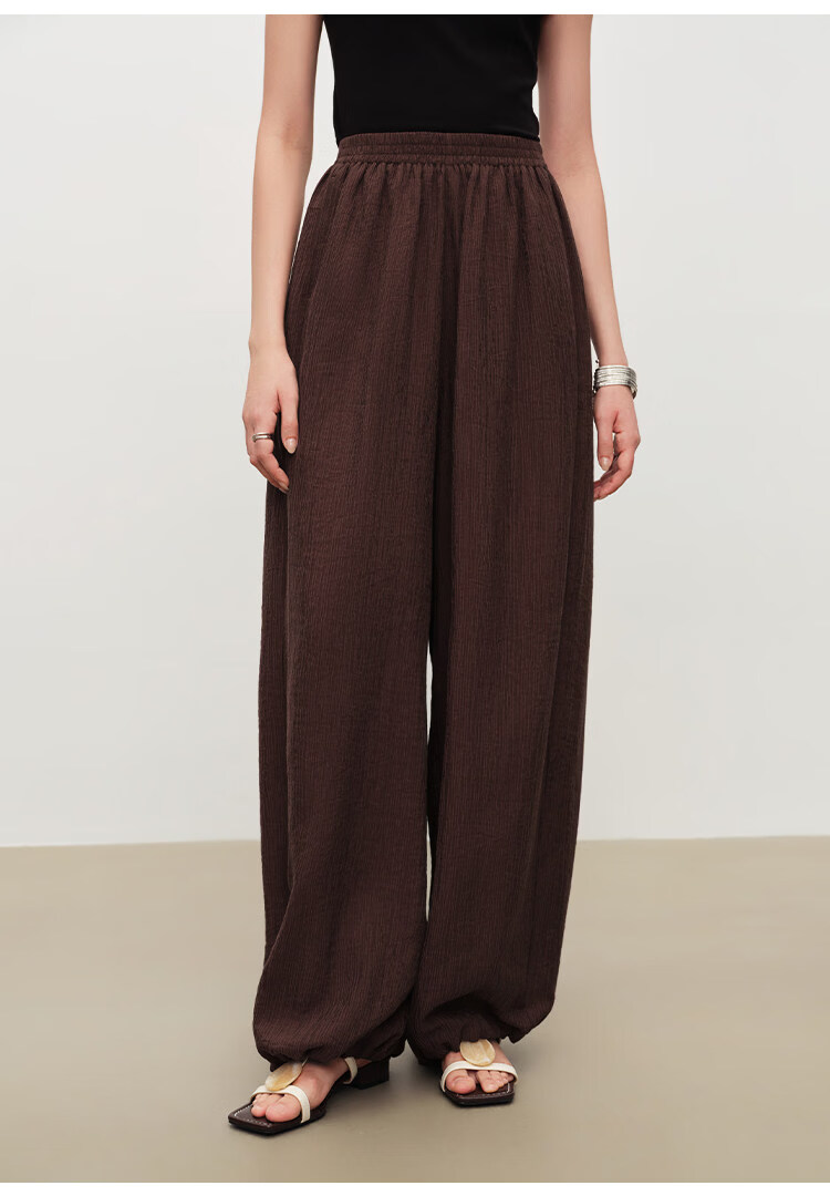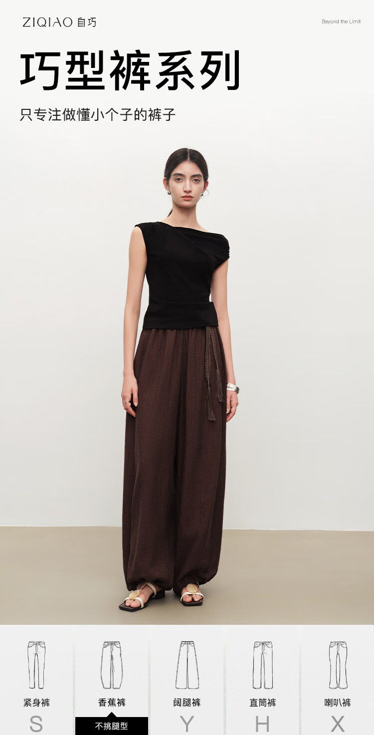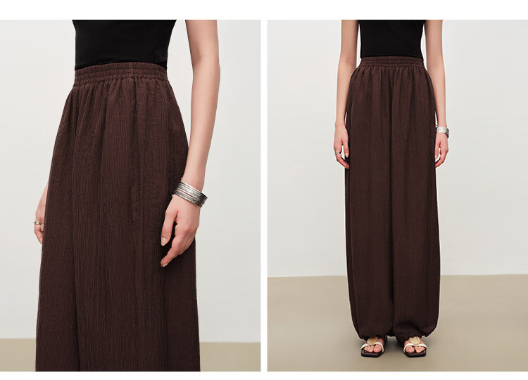自巧小个子肌理感天丝羊毛松紧腰灯笼裤女2026夏新品气球裤 乌木棕 莱赛尔羊毛 S (尺码:3)