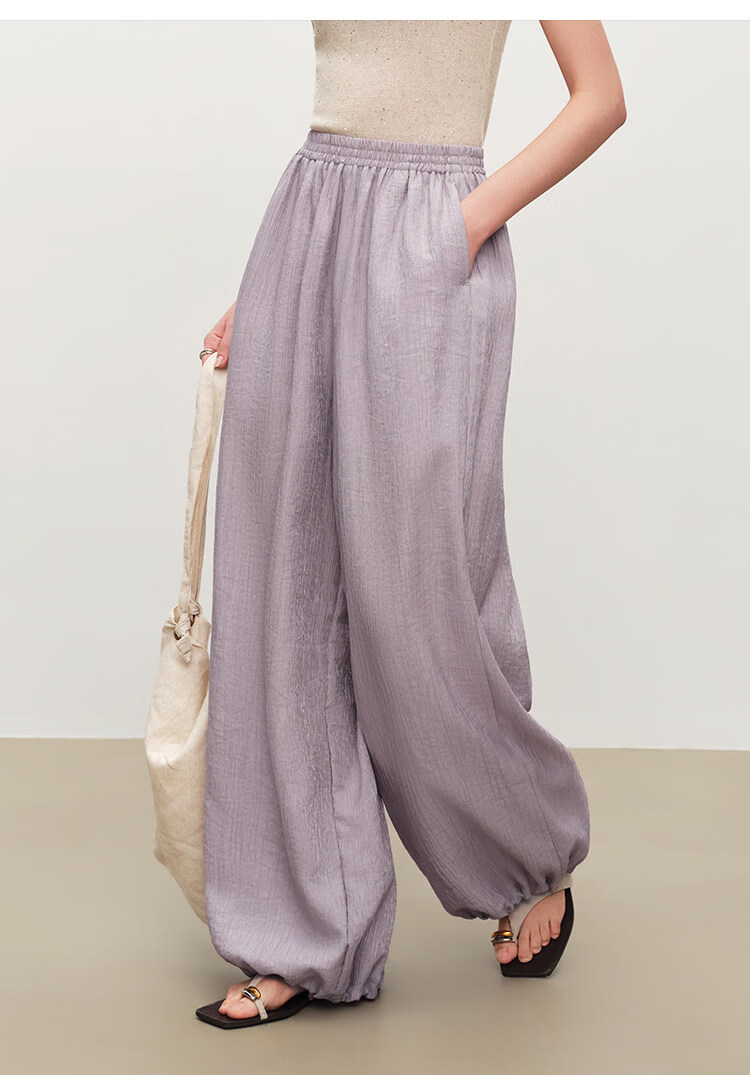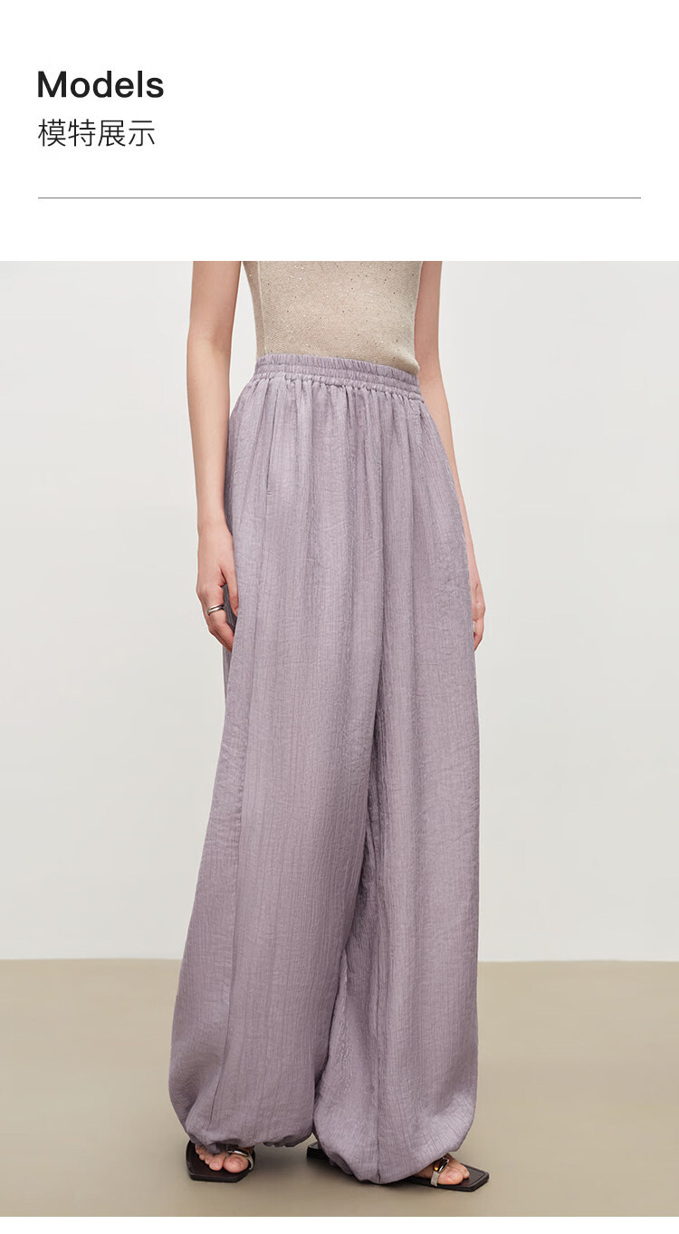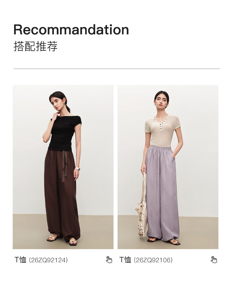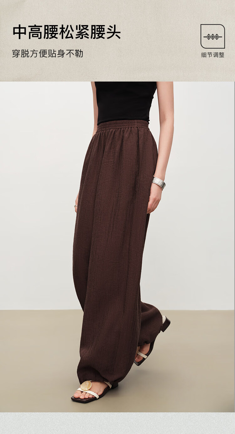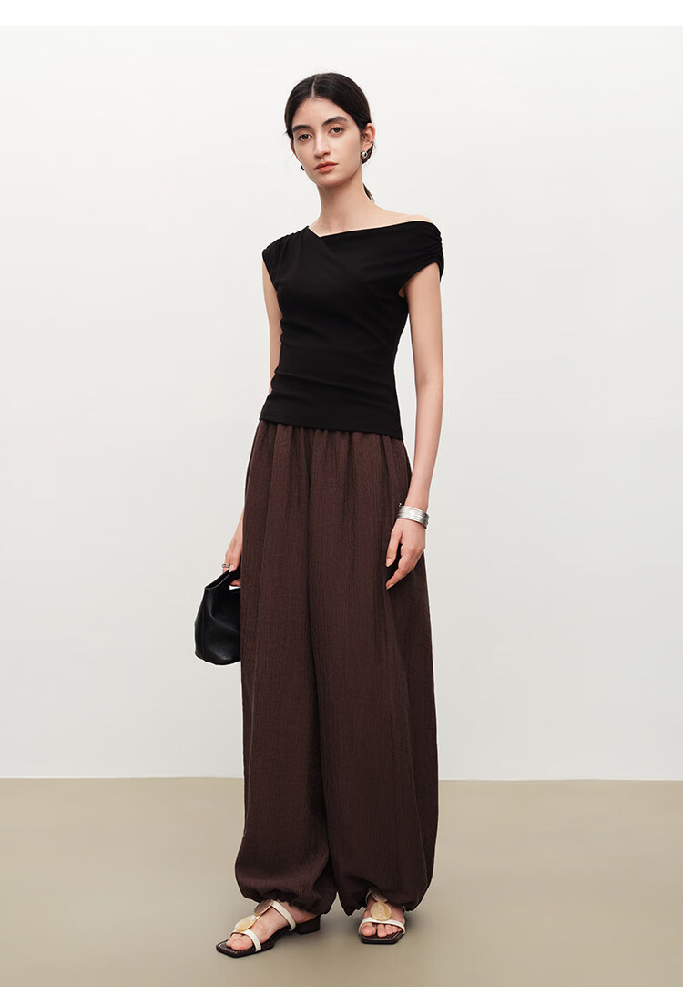 自巧小个子肌理感天丝羊毛松紧腰灯笼裤女2026夏新品气球裤 乌木棕 莱赛尔羊毛 S (尺码:3)