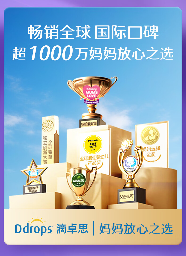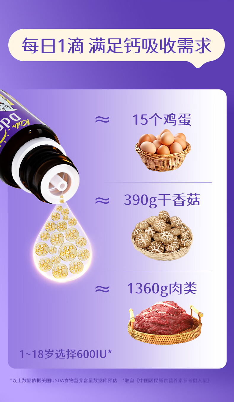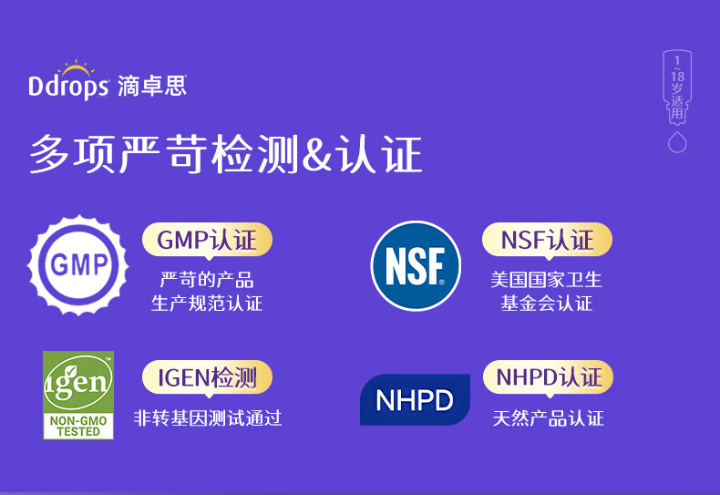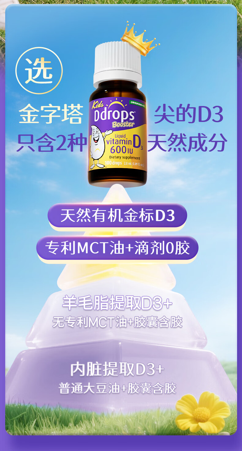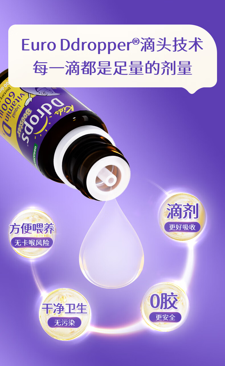 Ddrops滴卓思 婴幼儿童营养维生素D3滴剂vd3 1岁-18岁 2.8ml 600IU