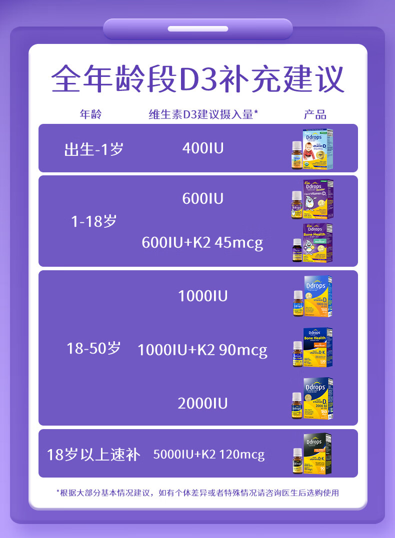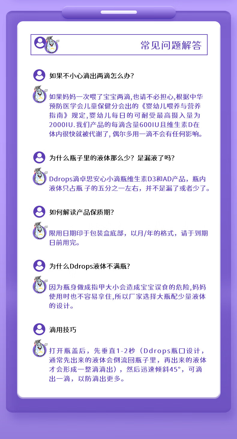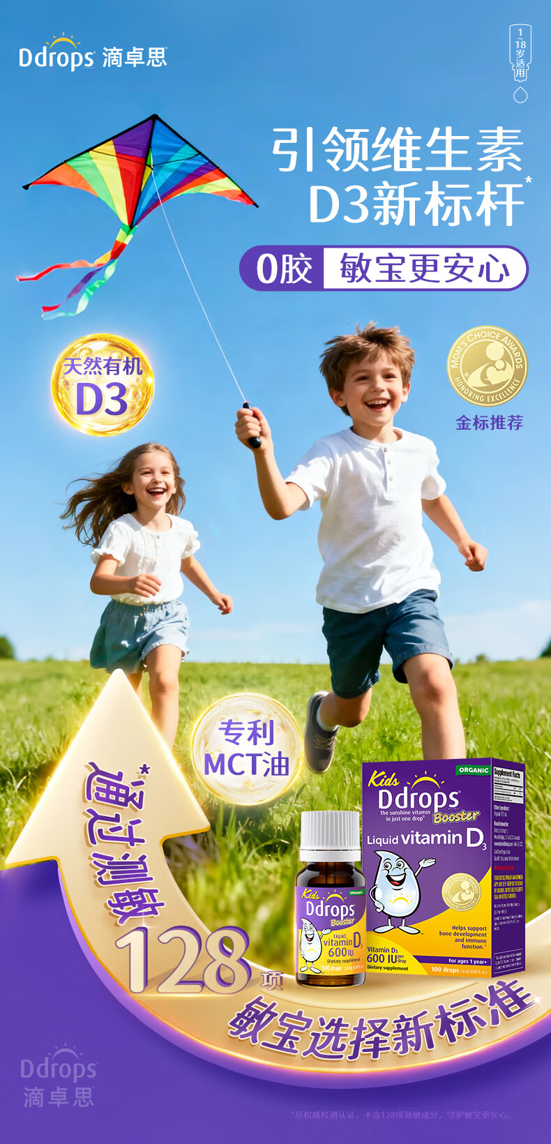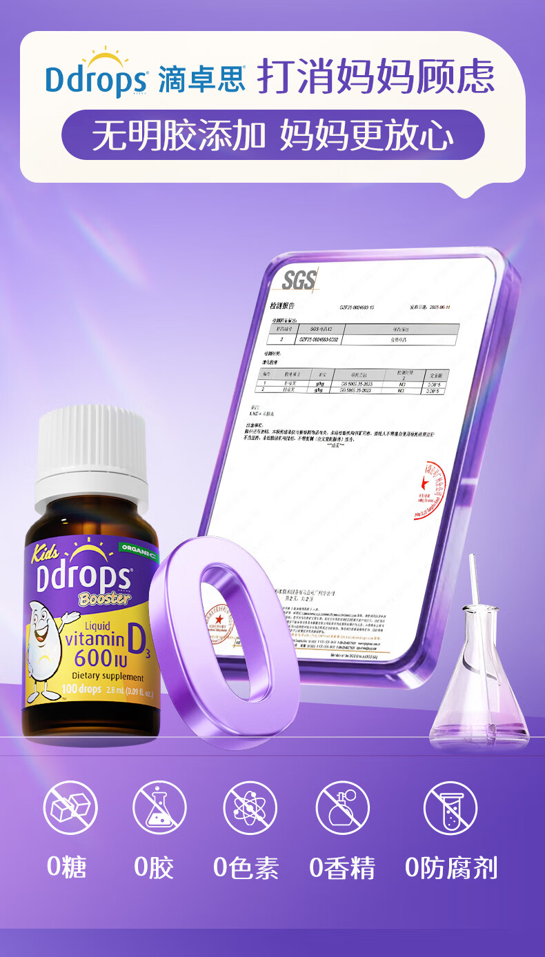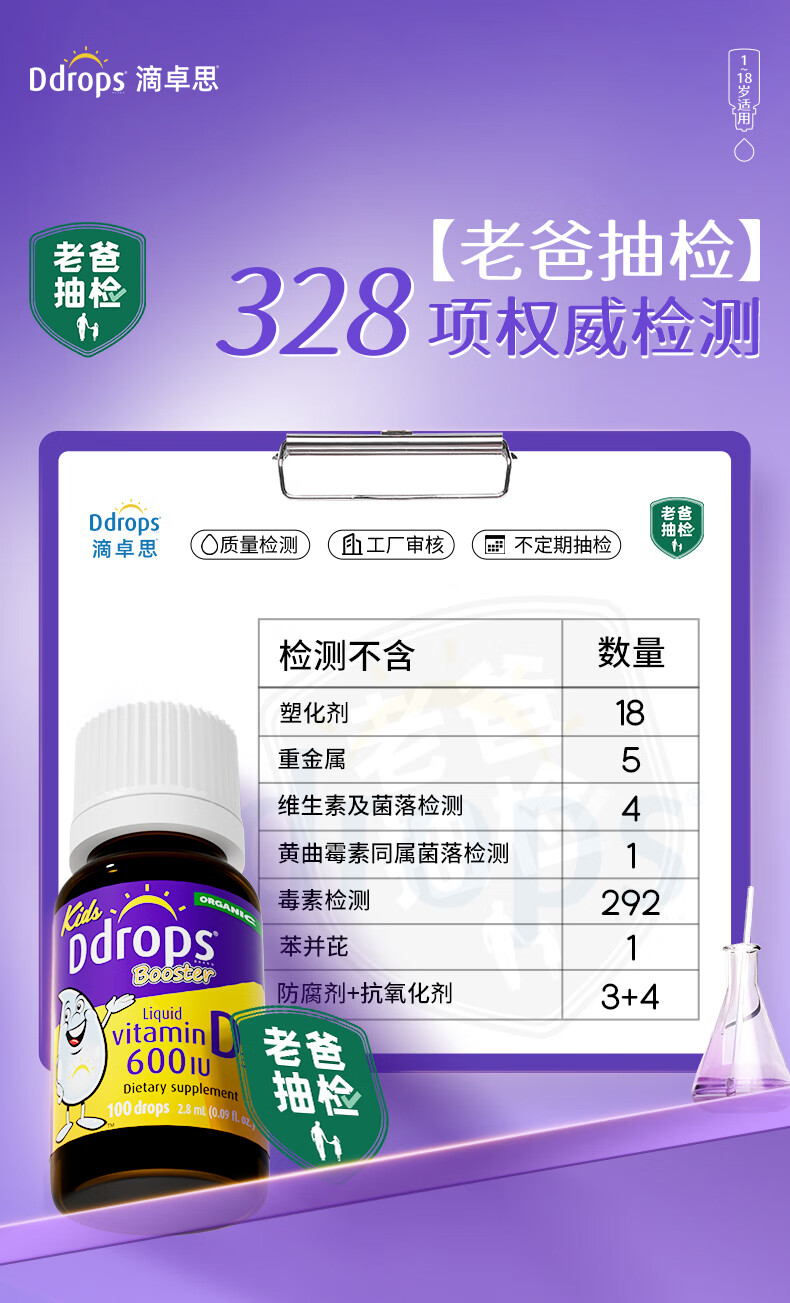 Ddrops滴卓思 婴幼儿童营养维生素D3滴剂vd3 1岁-18岁 2.8ml 600IU
