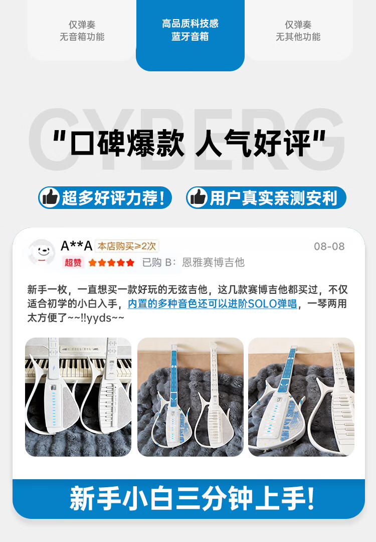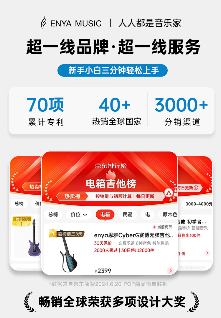 enya恩雅赛博吉他自动挡无弦吉他伴奏弹唱智能吉他CyberG拨片款黑色