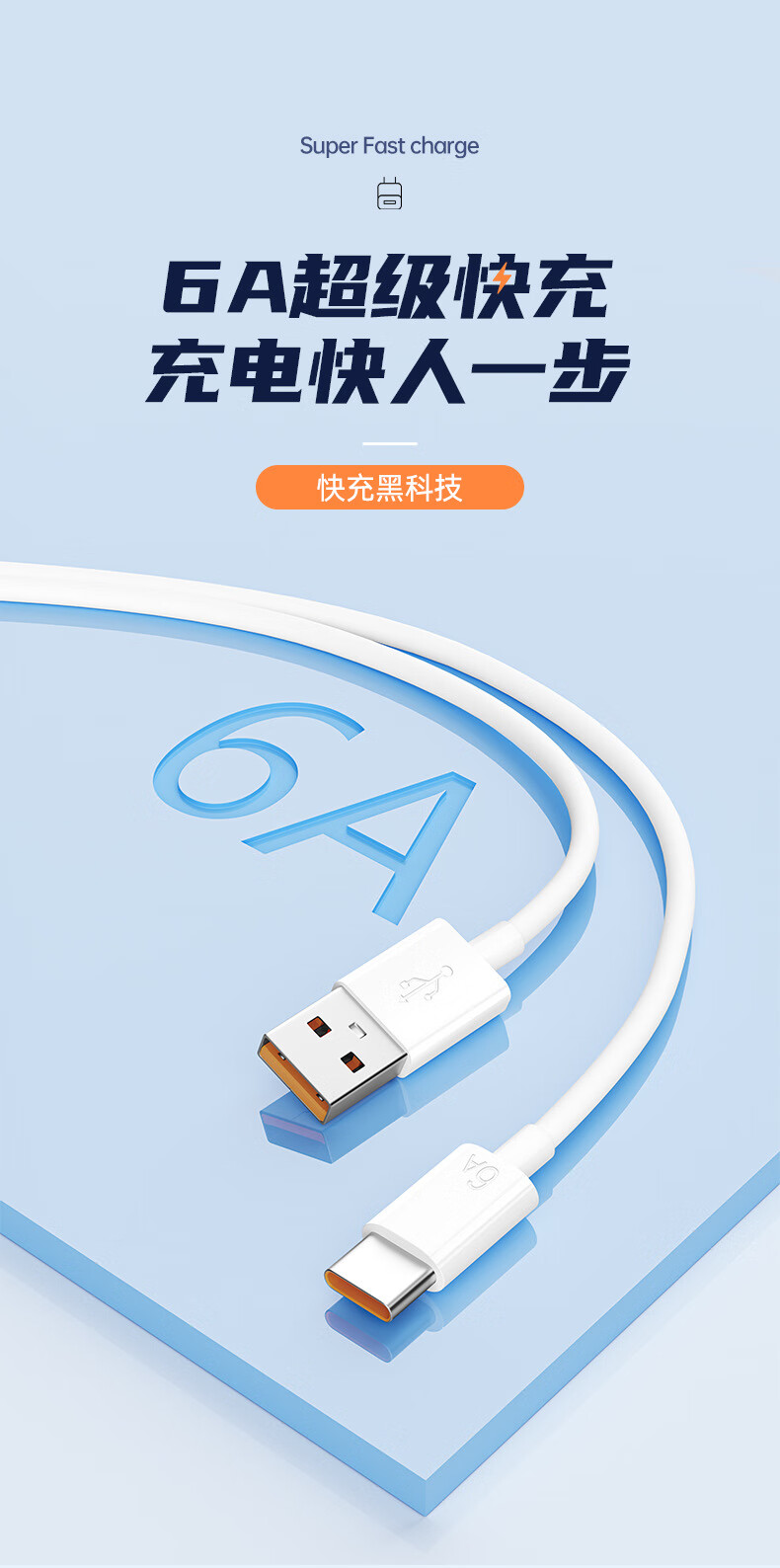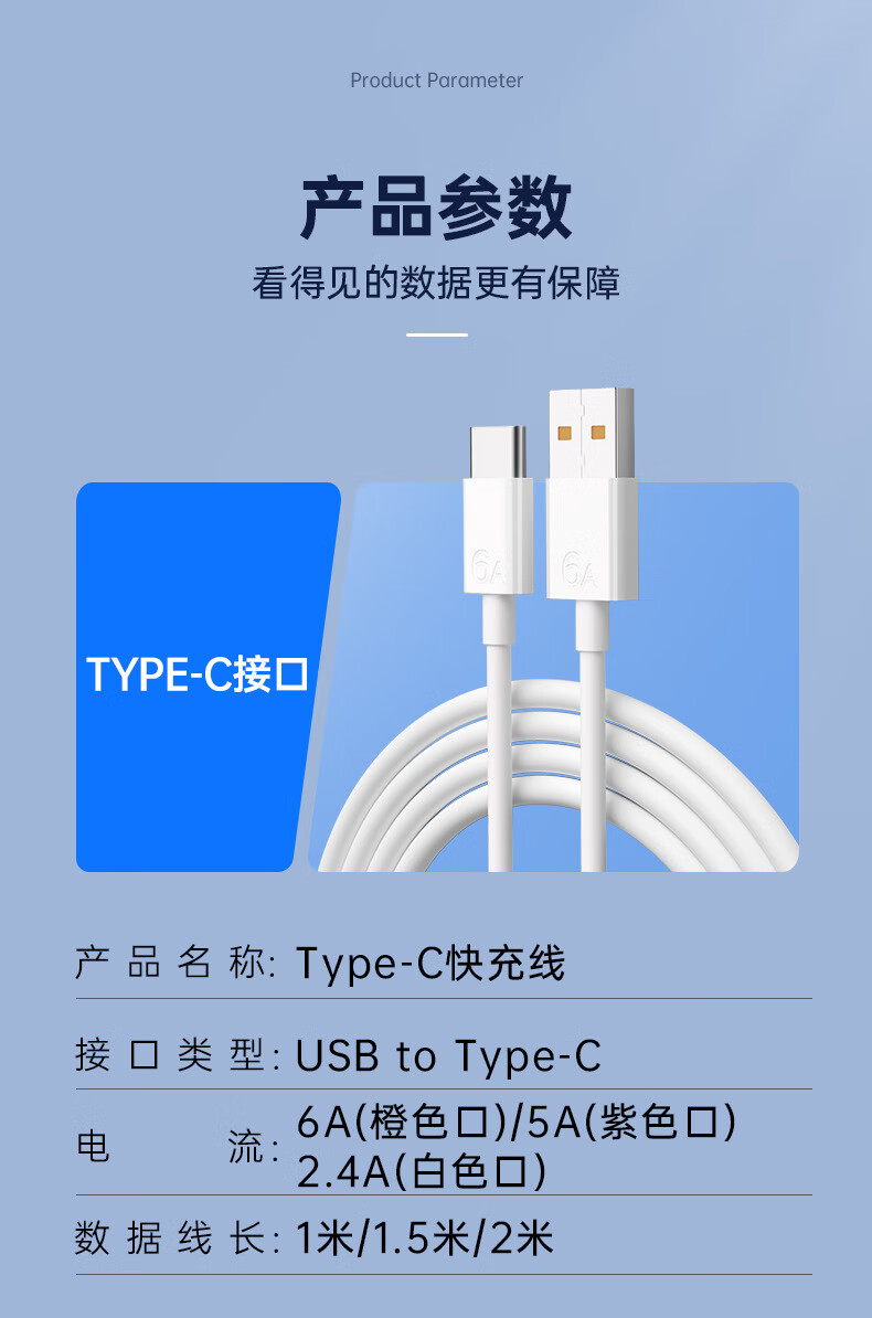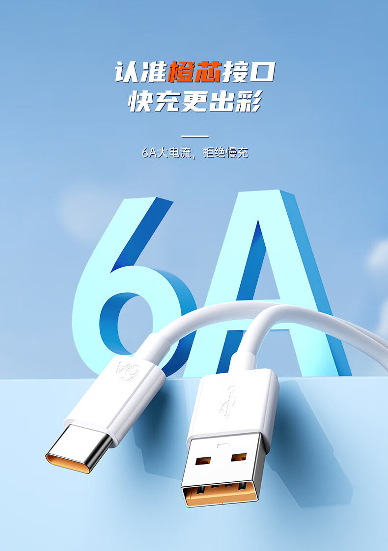 快充线type-c充电线6A闪充适用于华为vivo荣耀OPPO/三星手机超级快充数据线1米1.5米2米多种选择 6A type-c快充数据线 1米