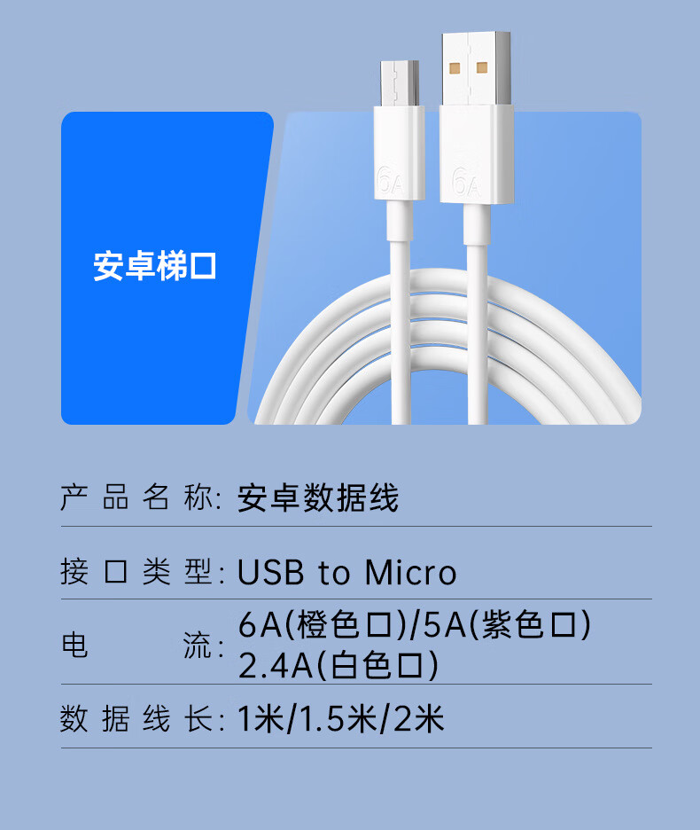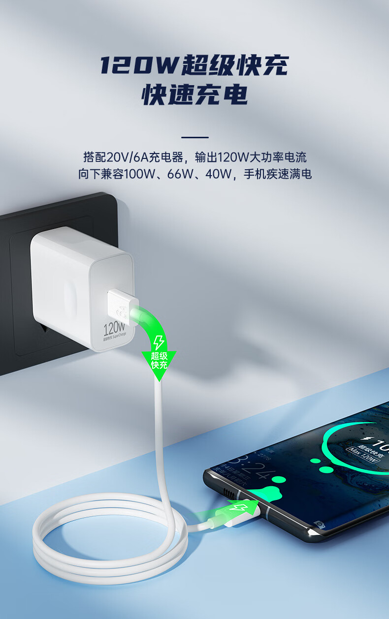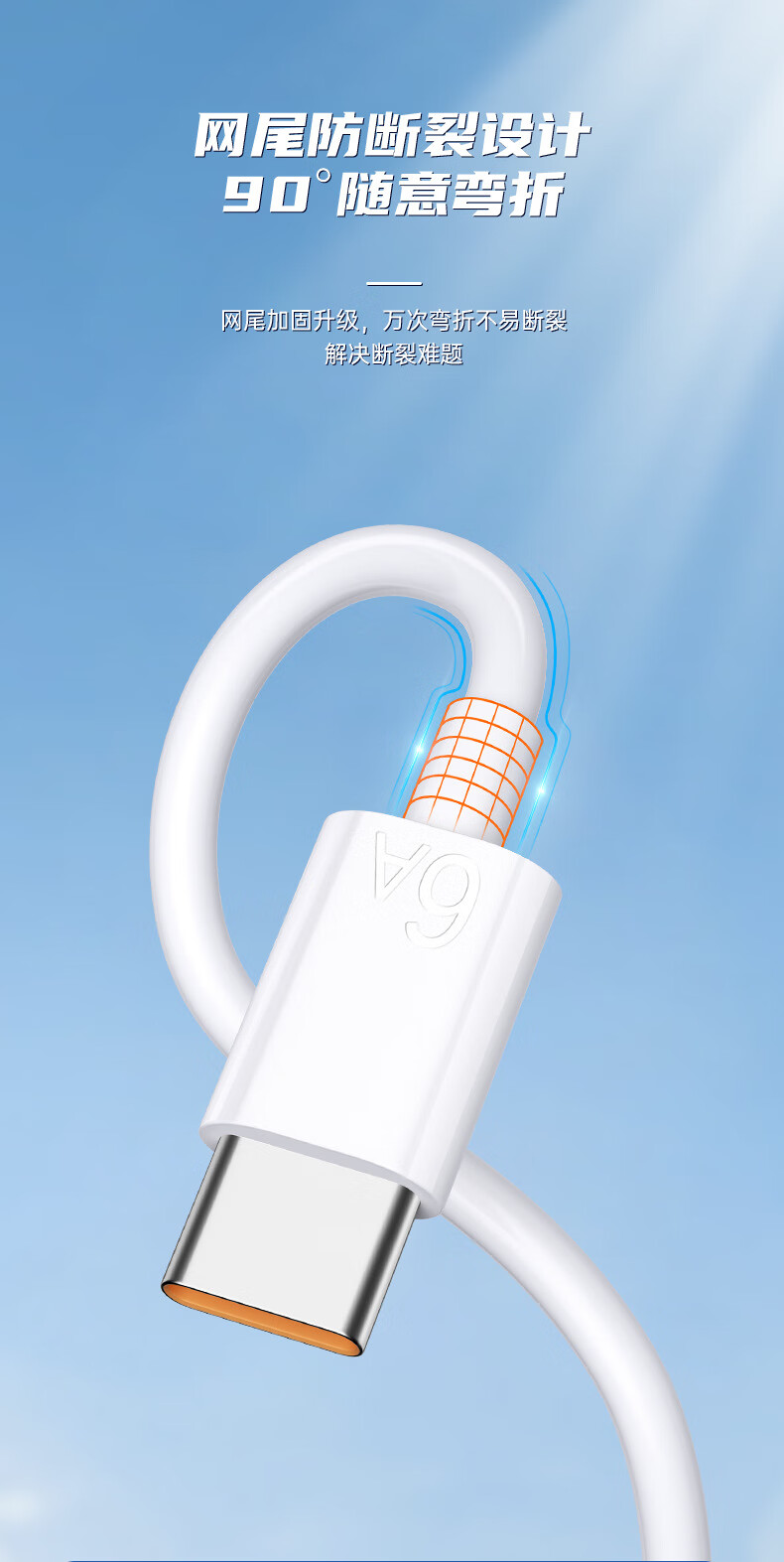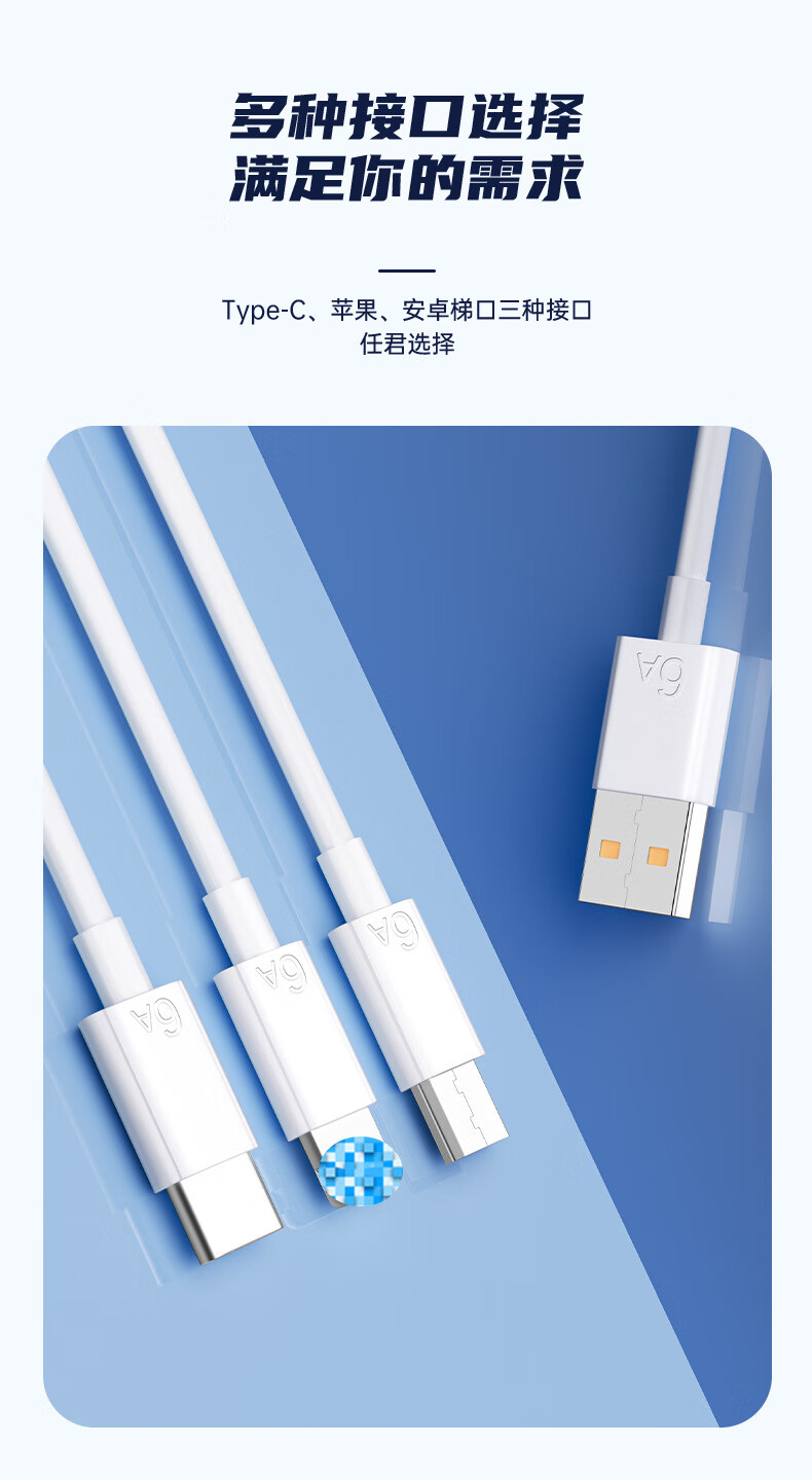 快充线type-c充电线6A闪充适用于华为vivo荣耀OPPO/三星手机超级快充数据线1米1.5米2米多种选择 6A type-c快充数据线 1米