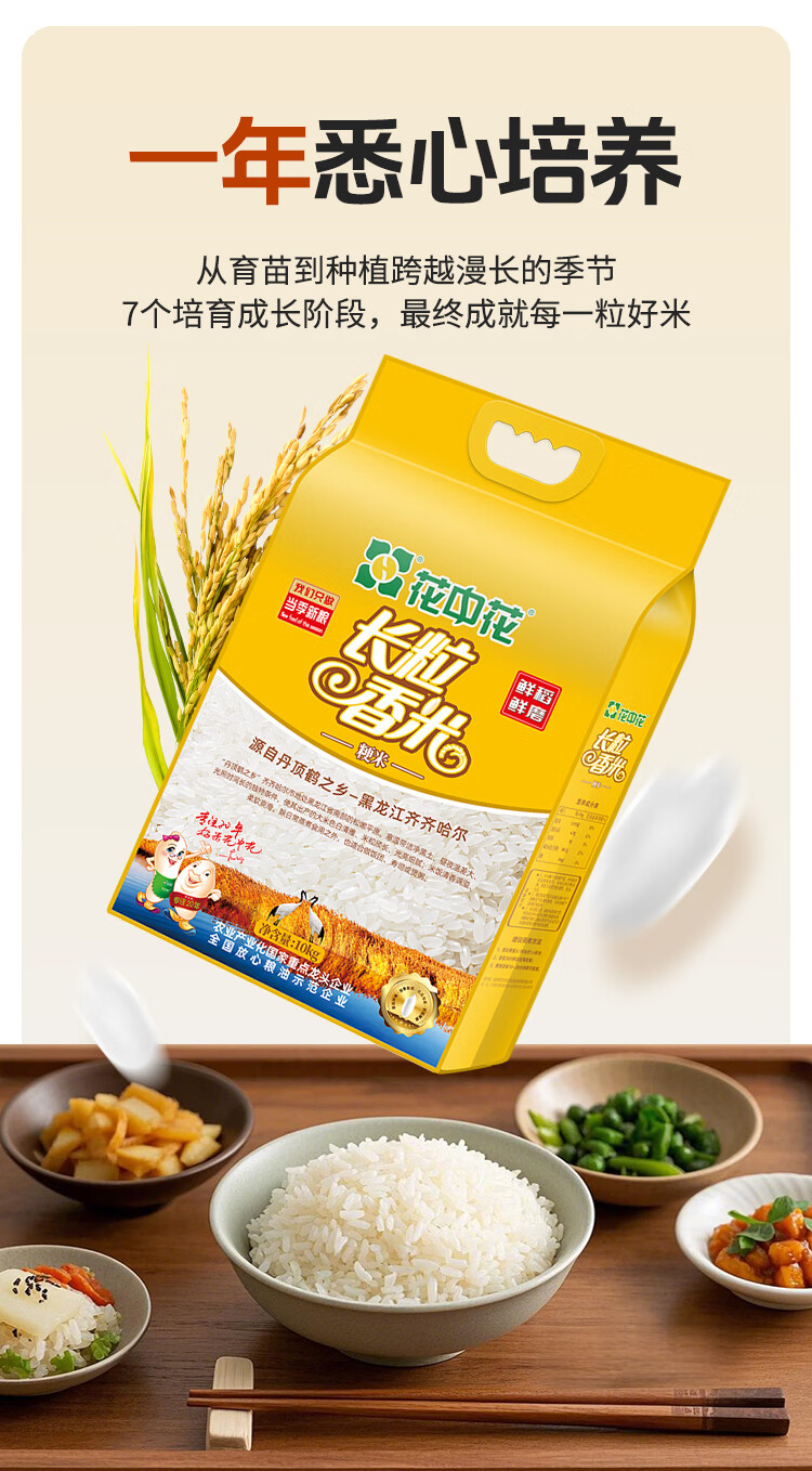 花中花 长粒香米 20斤 东北大米 黑龙江大米 一级粳米当季新米真空包装