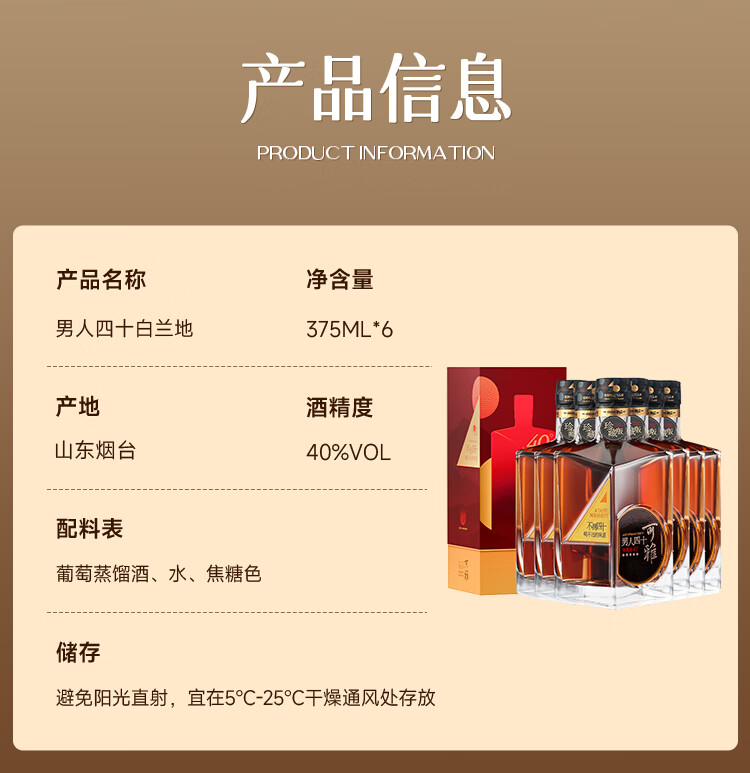 张裕珍藏版金奖五星烟台白兰地375ml*6瓶箱装礼盒装洋酒餐酒男人四十 375mL 6瓶 375ml*6瓶