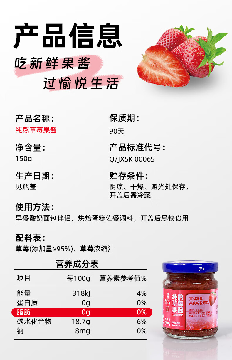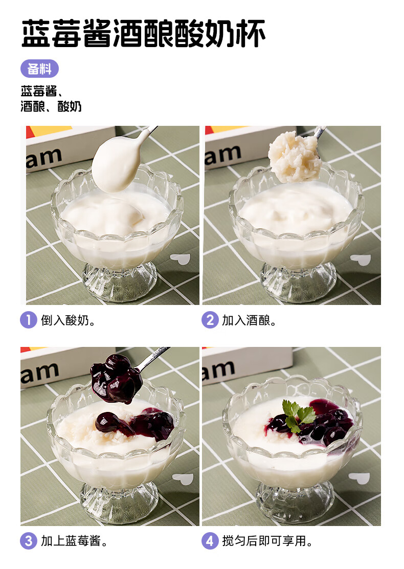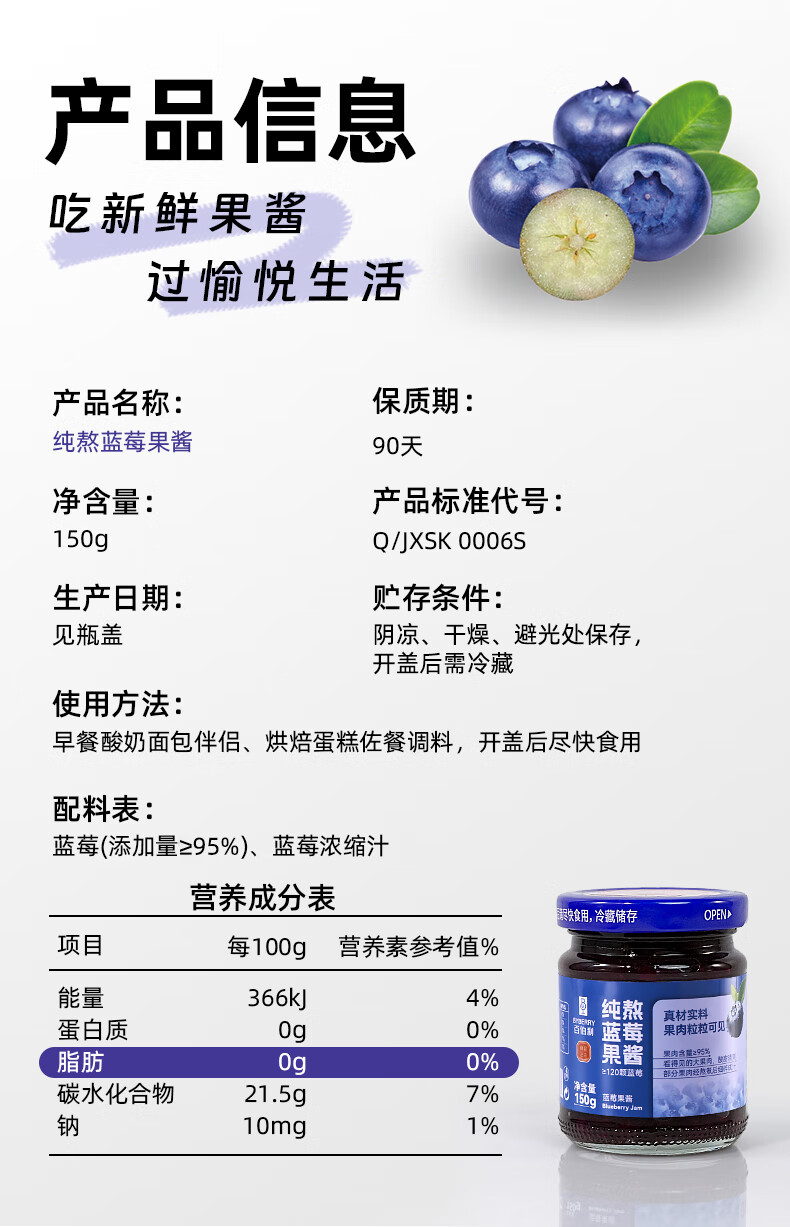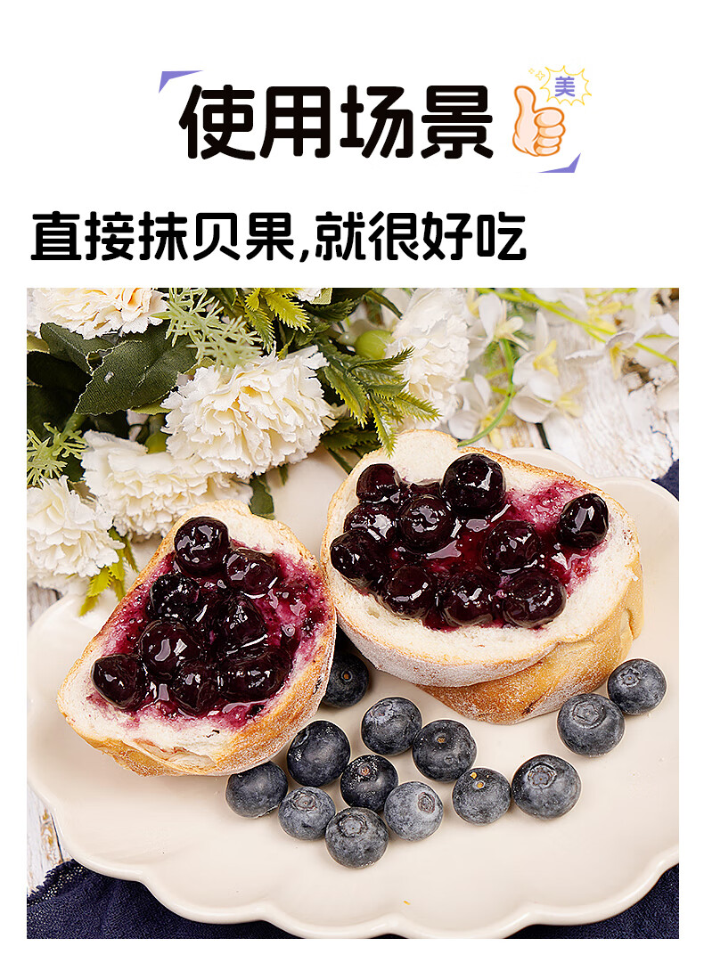 百伯利蓝莓果酱0白砂糖0脂纯熬95%大颗粒蓝莓儿童早餐涂面包吐司酱150g