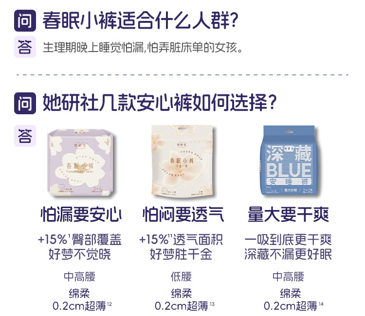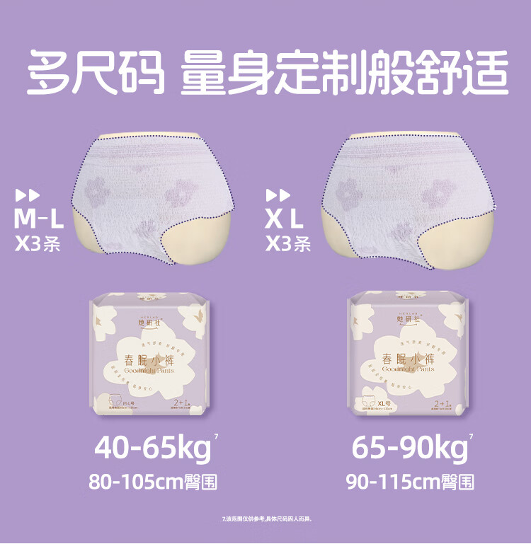 她研社夜用裤型卫生巾安心裤安睡裤夜安裤拉拉裤 春眠小裤超长超薄防漏 M-L码 10条 80-130斤