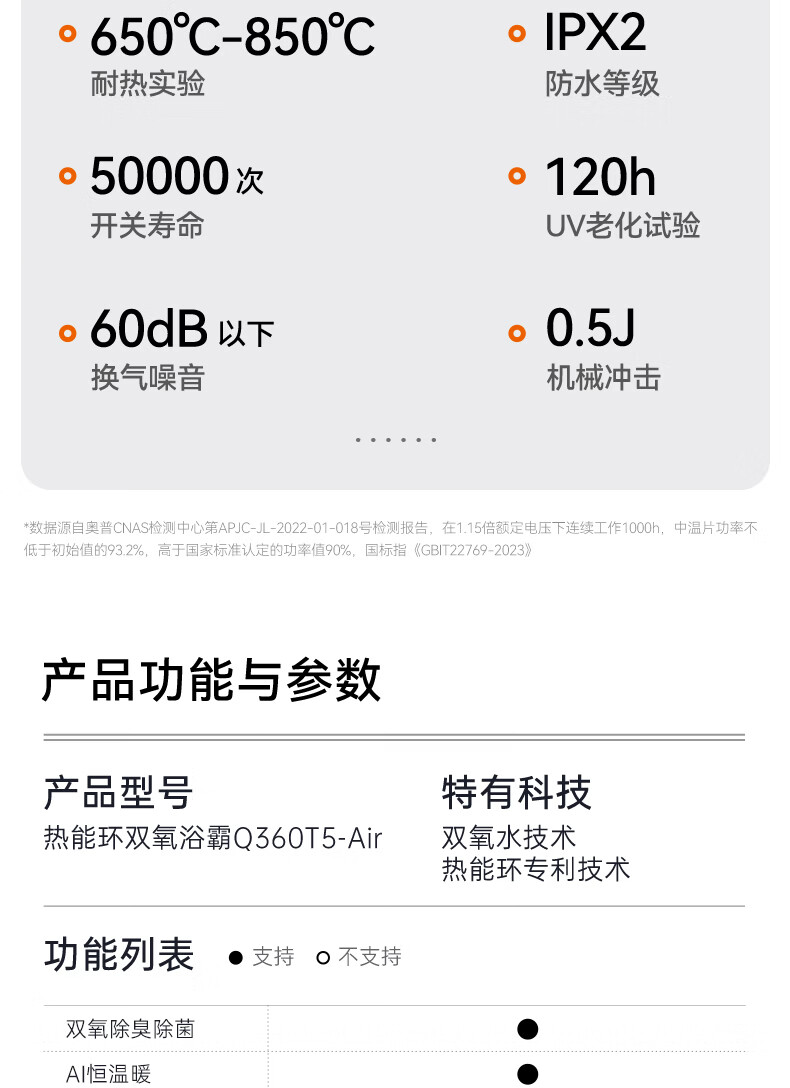 奥普热能环双氧浴霸【迷瞪专属】Q360恒温风暖照明排气智能除菌除臭 【Q360T5-Air】2倍除臭|24h除菌