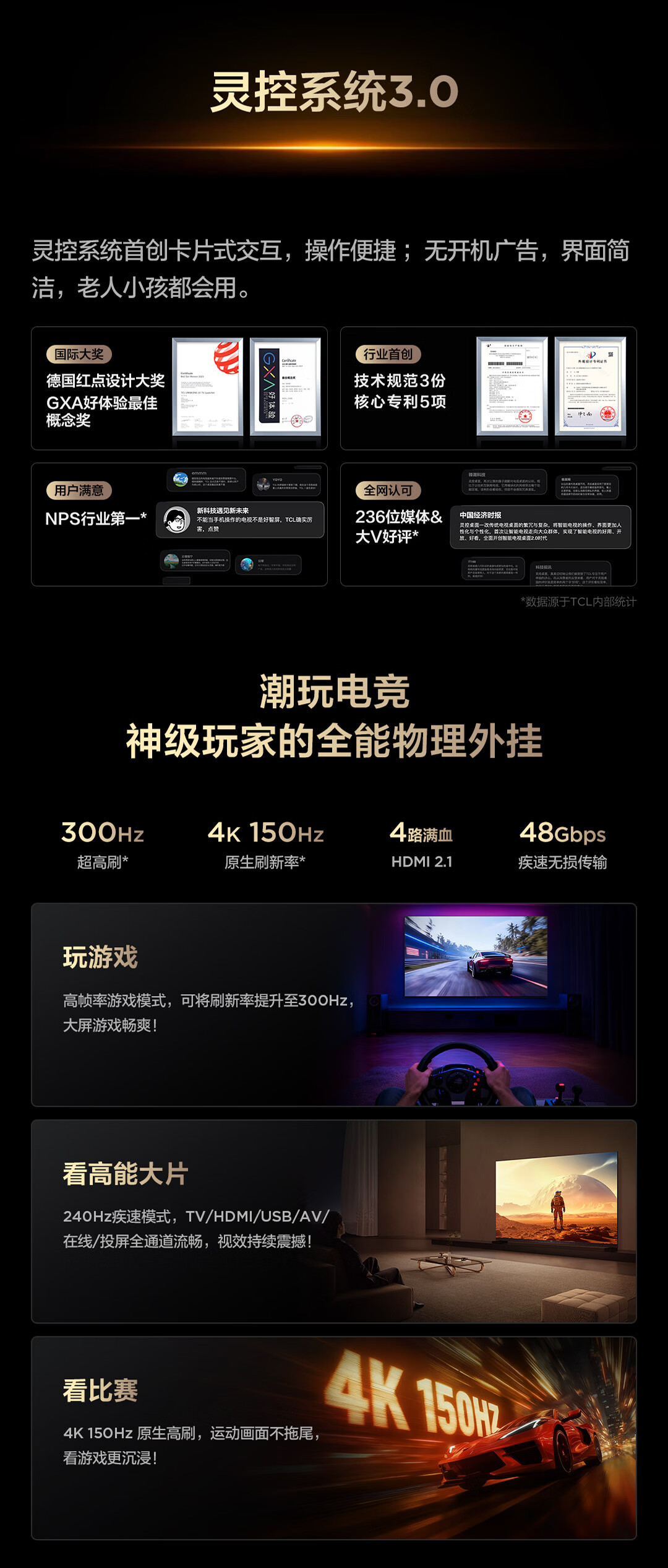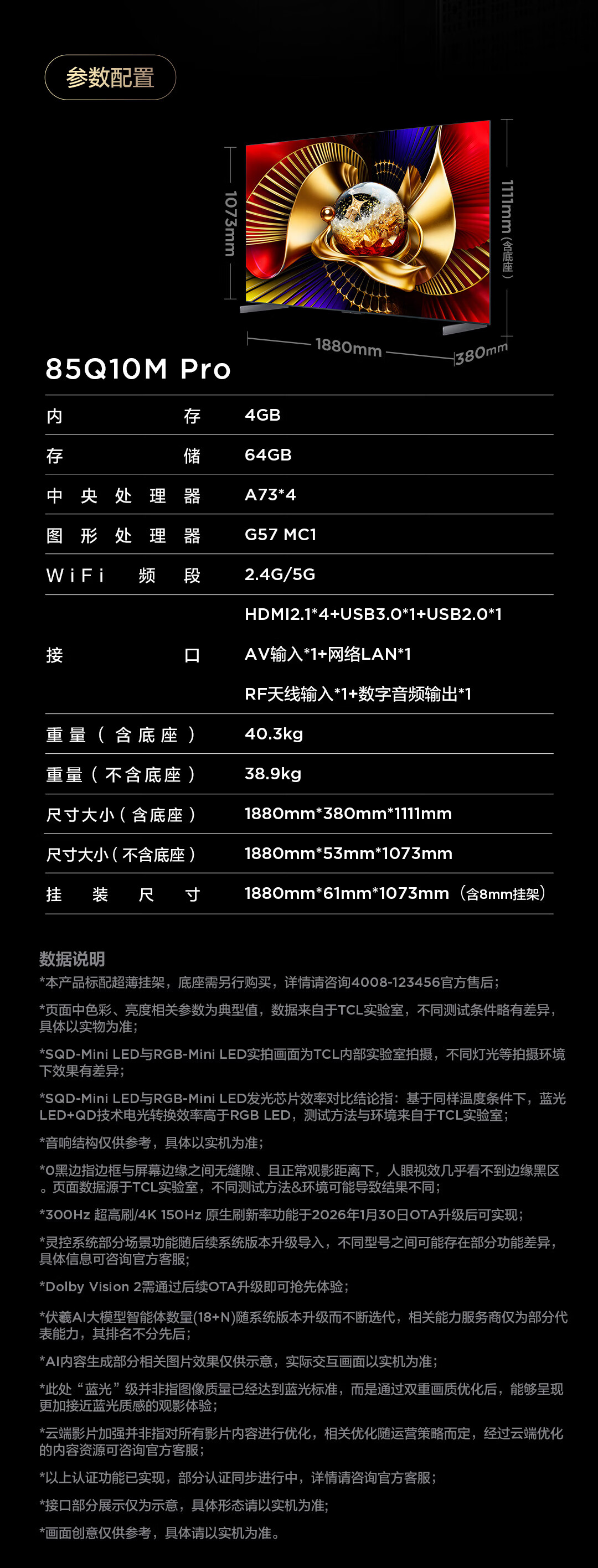 TCL电视 85Q10M Pro 85英寸 SQD-Mini LED 100%全局高色域 超级蝶翼华曜屏 万象分区 护眼