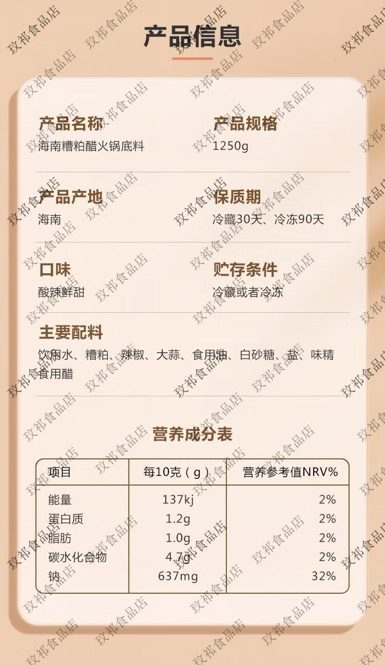铺前林花海南糟粕醋火锅底料文昌特产酸辣鲜香甜汤底无添加调味品 1瓶铺前林花酸辣2斤半