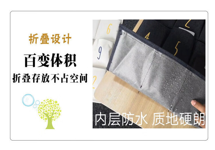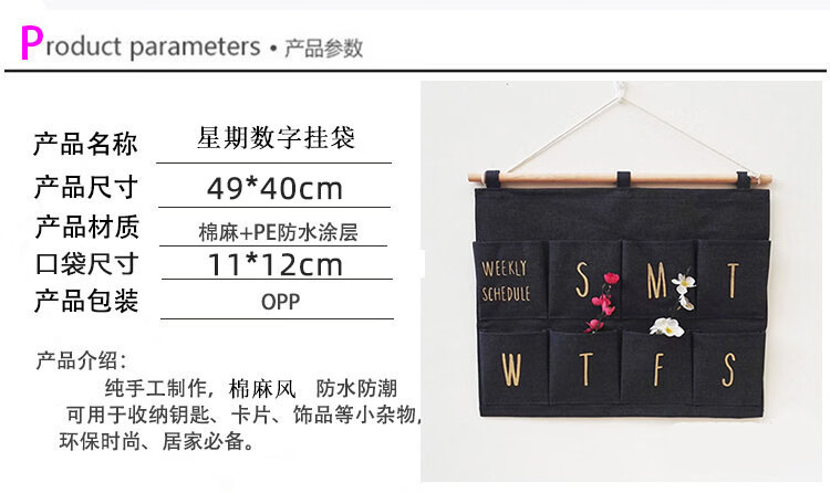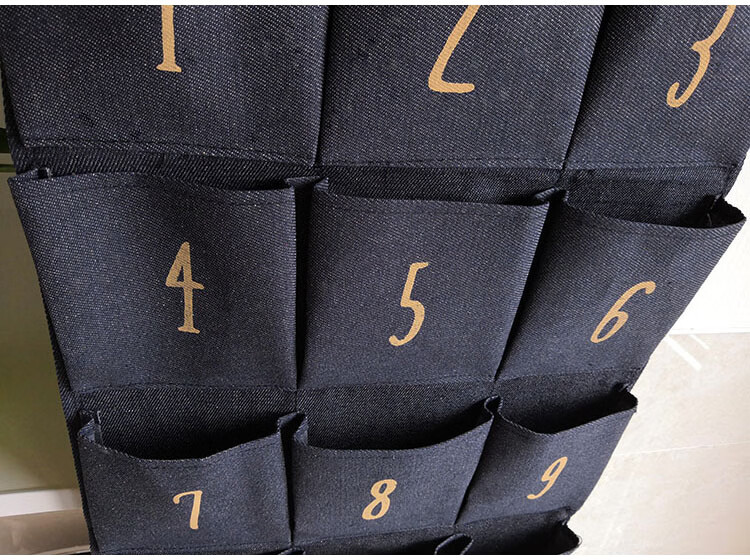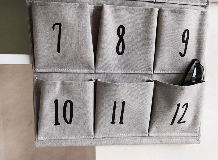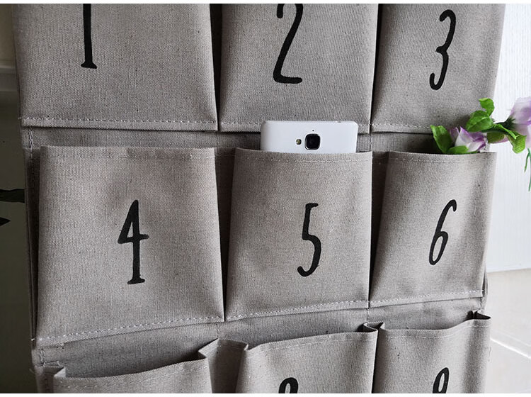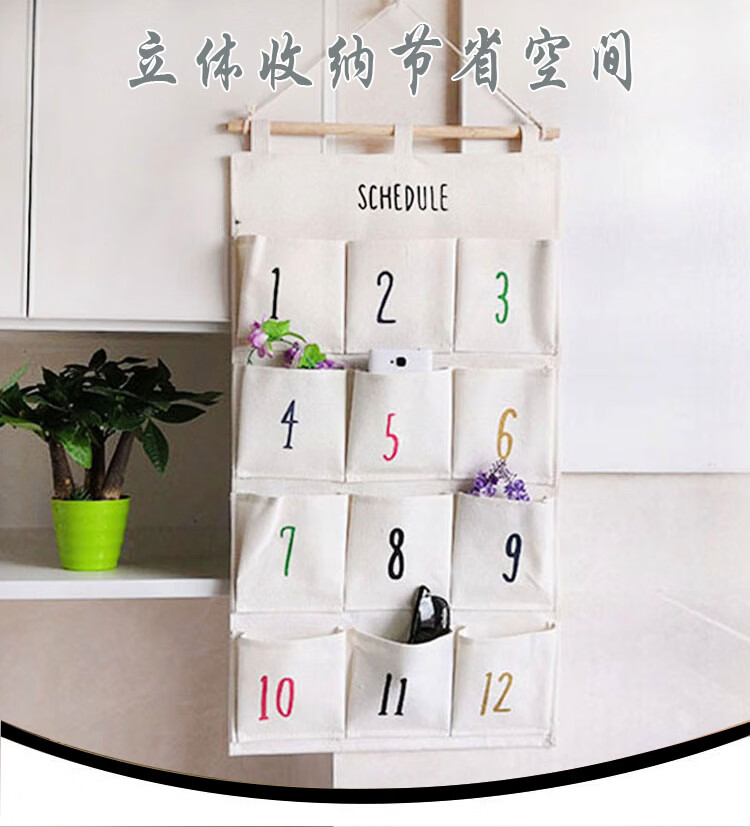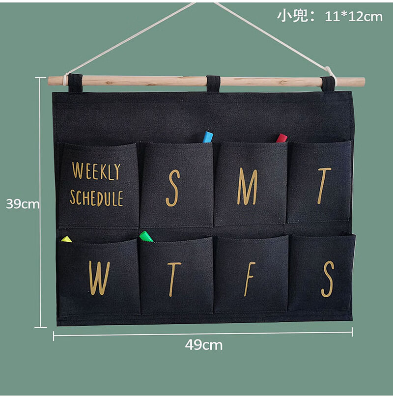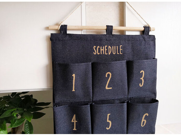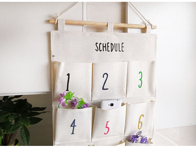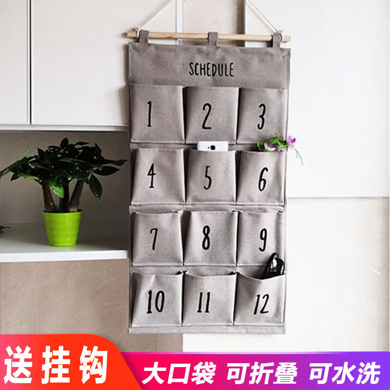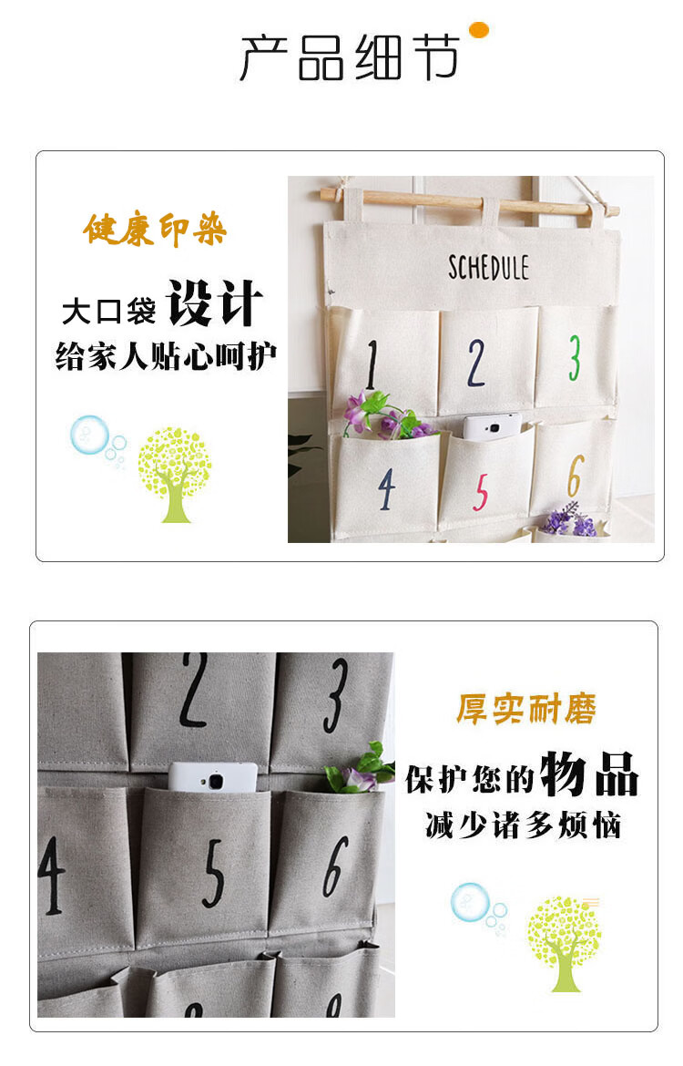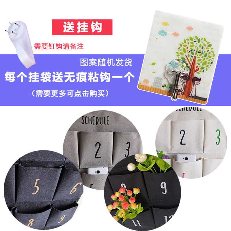 棉麻布艺收纳袋多层挂式手机储物袋免打孔宿舍门后衣柜壁挂杂物袋 蓝条七兜 35*50cm