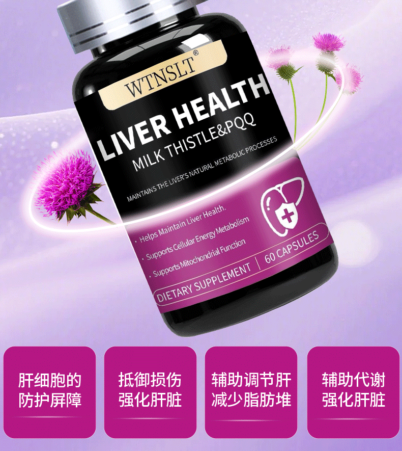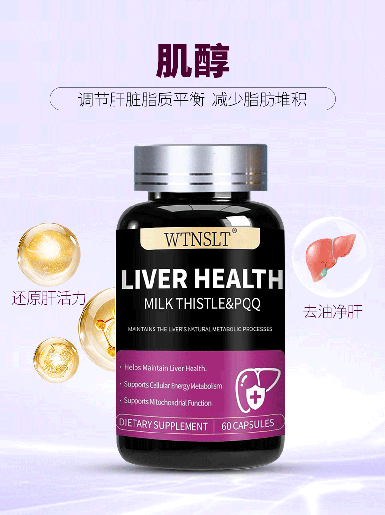 WTNSLT美国进口水飞蓟肌醇PQQ护肝片熬夜解酒养肝净肝排毒肌醇护肝胶囊 【周期巩固】护肝3瓶装