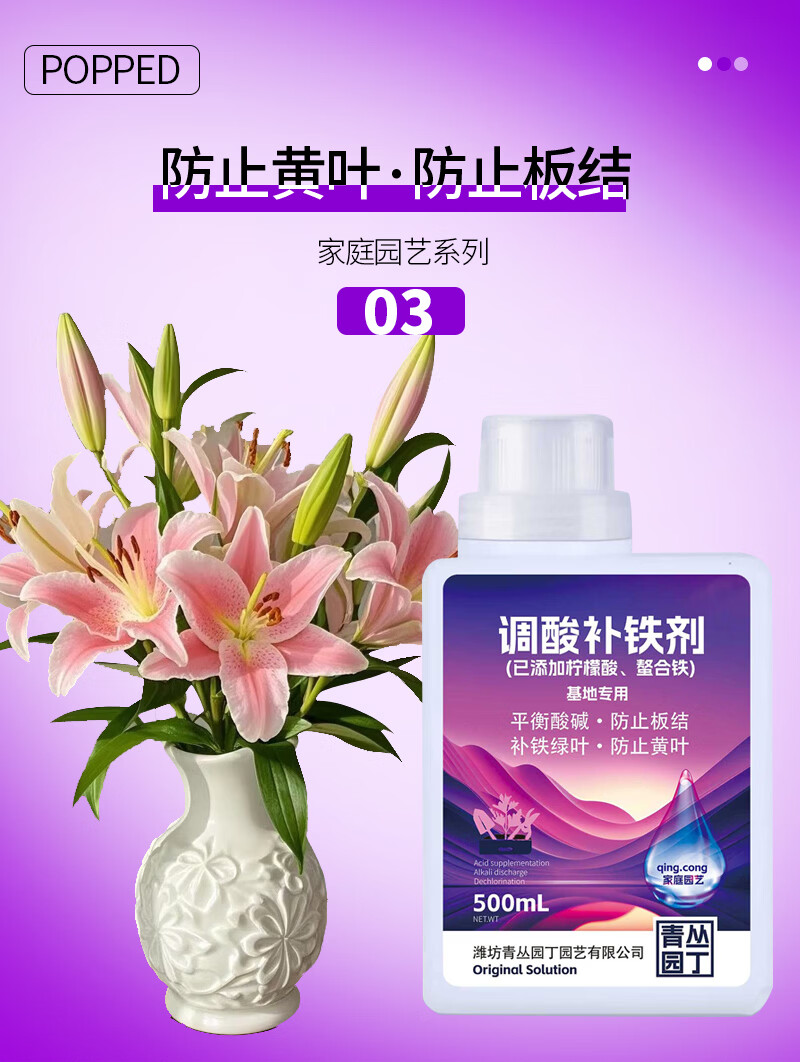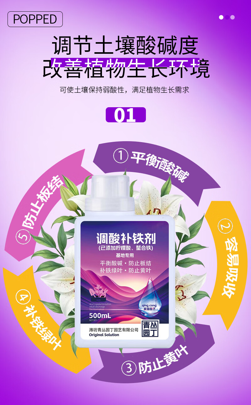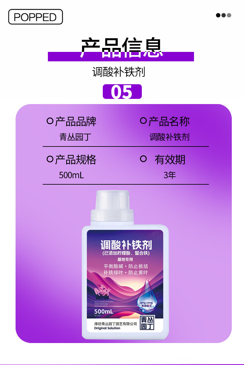 青丛园丁调酸补铁剂平衡酸碱除氯补铁绿叶防止黄叶活化土壤通用型 调酸补铁剂500ml*1瓶【常规装】