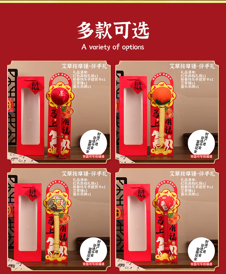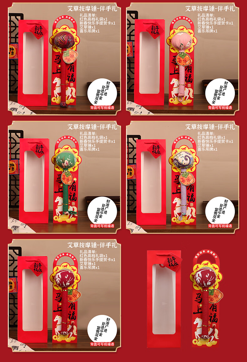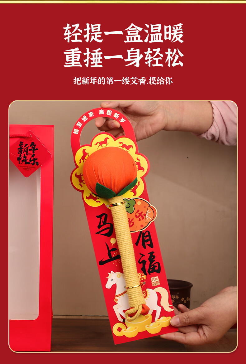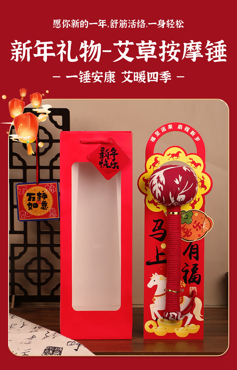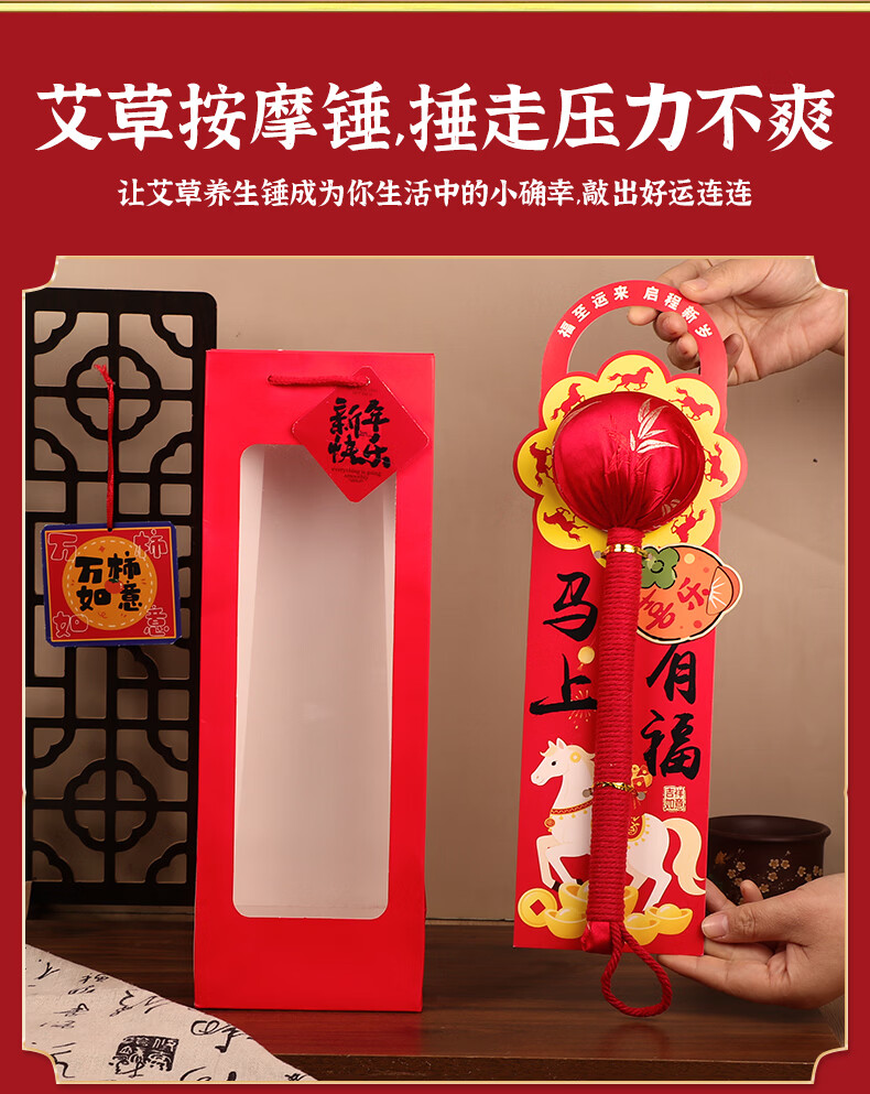 马年艾草锤养生礼盒伴手礼实用礼品公司送客户员工开业活动年会 金马送福艾草锤+吊牌+新年红手提袋