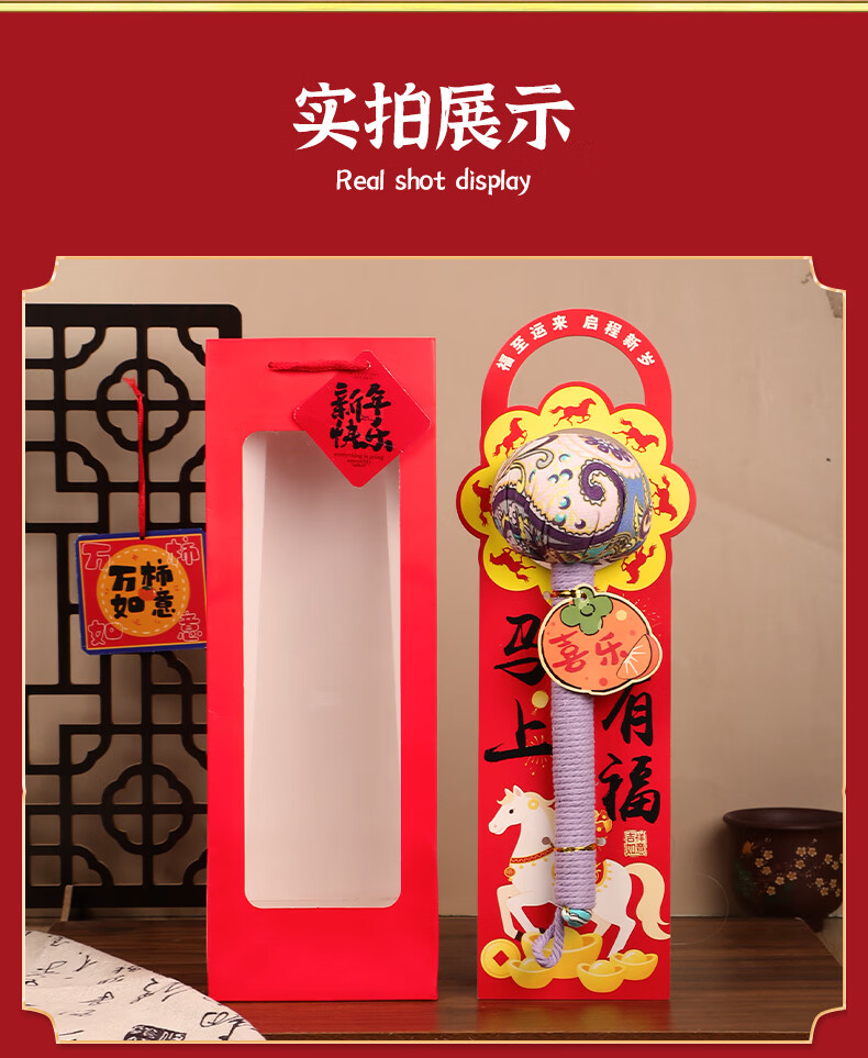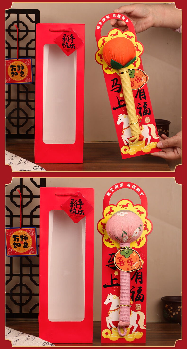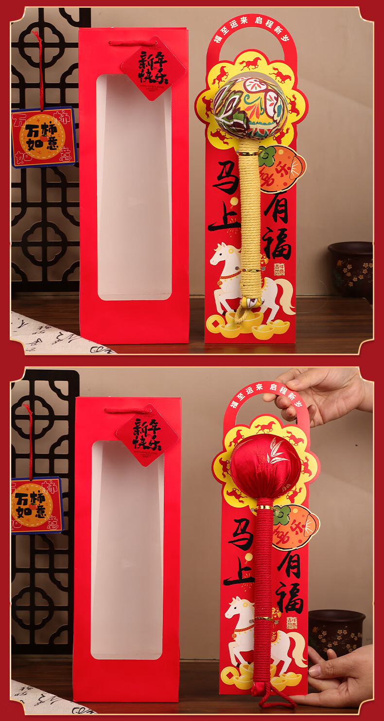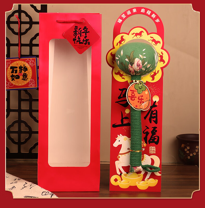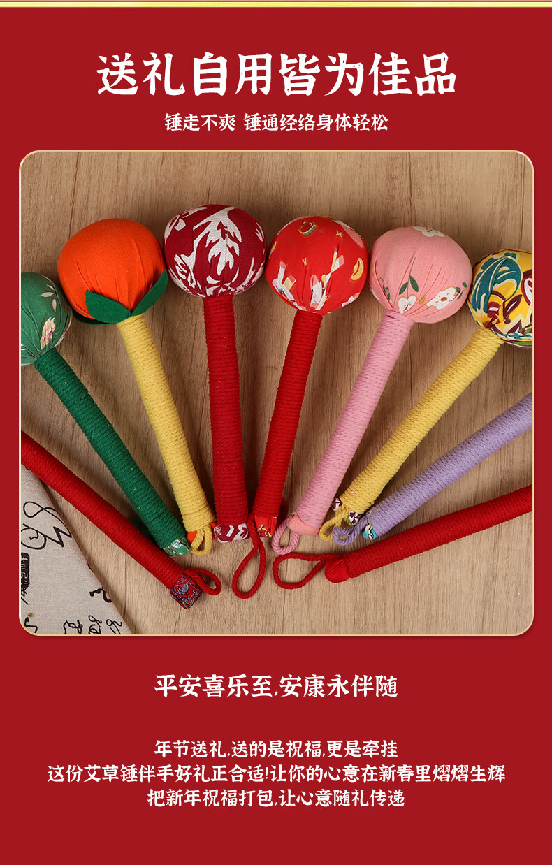马年艾草锤养生礼盒伴手礼实用礼品公司送客户员工开业活动年会 金马送福艾草锤+吊牌+新年红手提袋