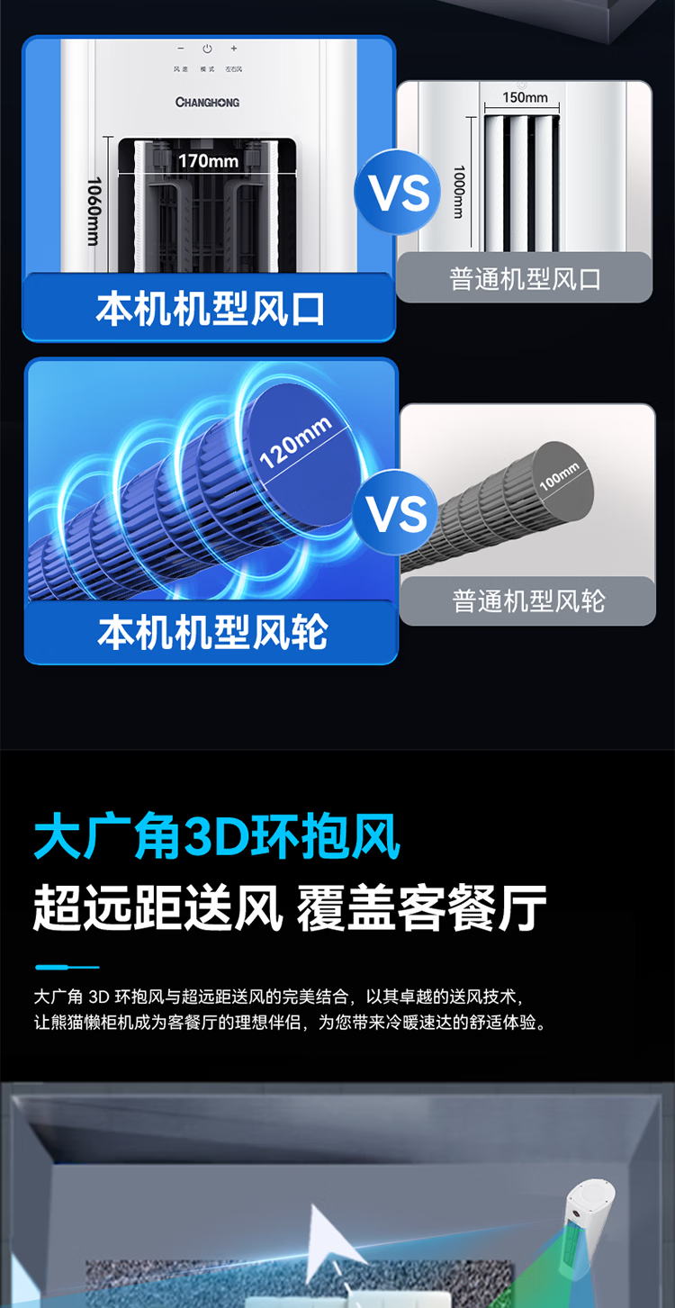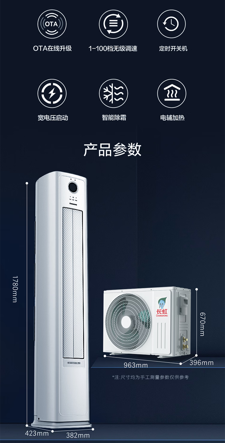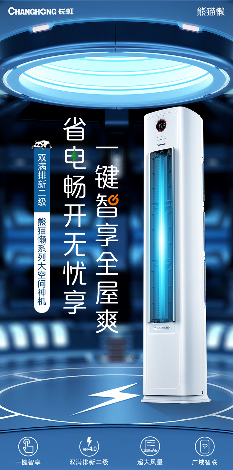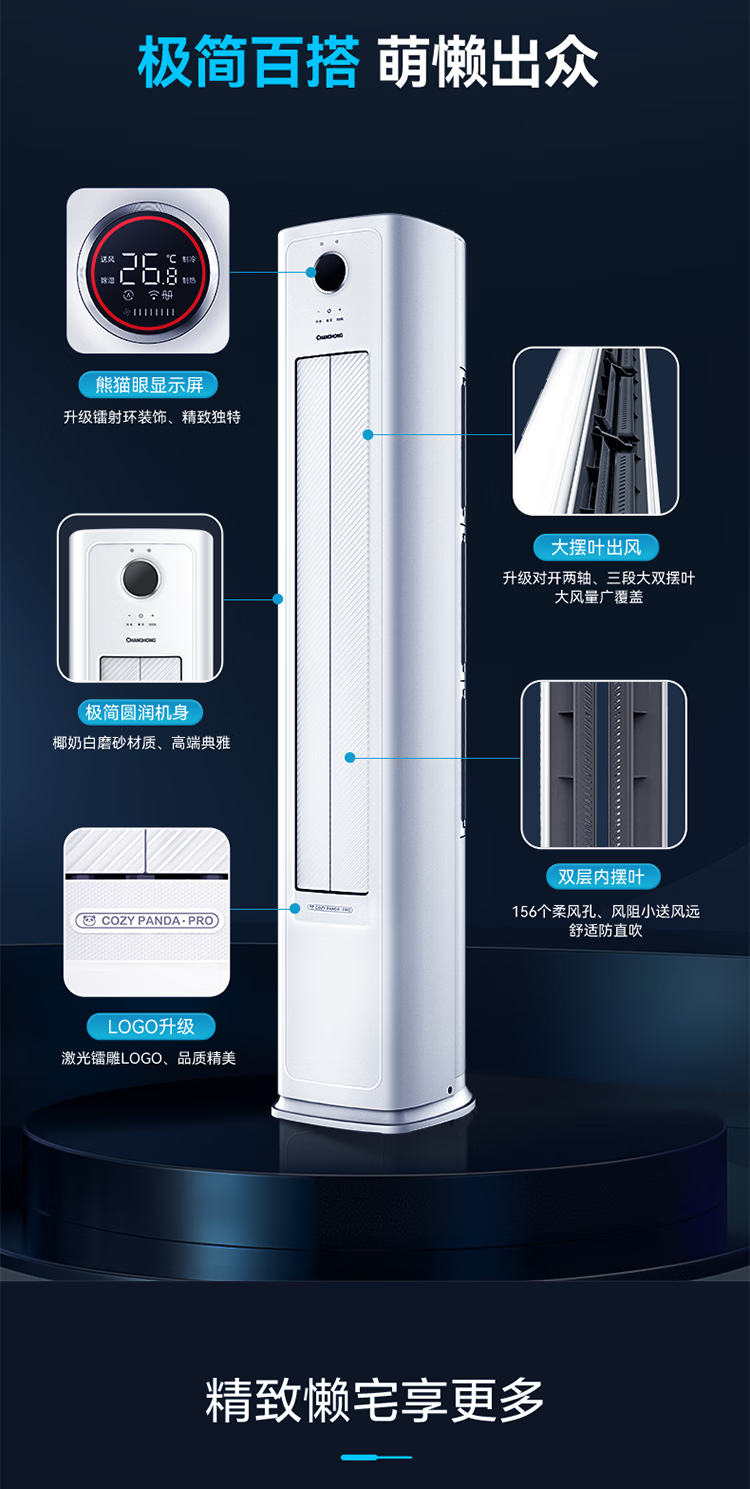 长虹空调熊猫懒大4匹新二级能效220V单相电商居两用双排铜管变频冷暖立式柜机 KFR-100LW/XSW+R2