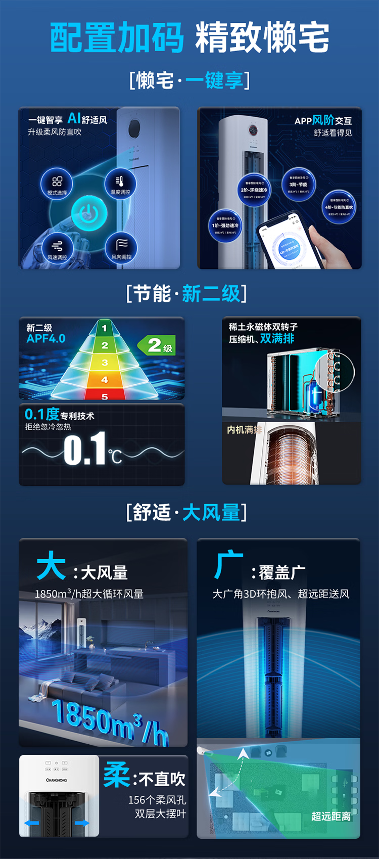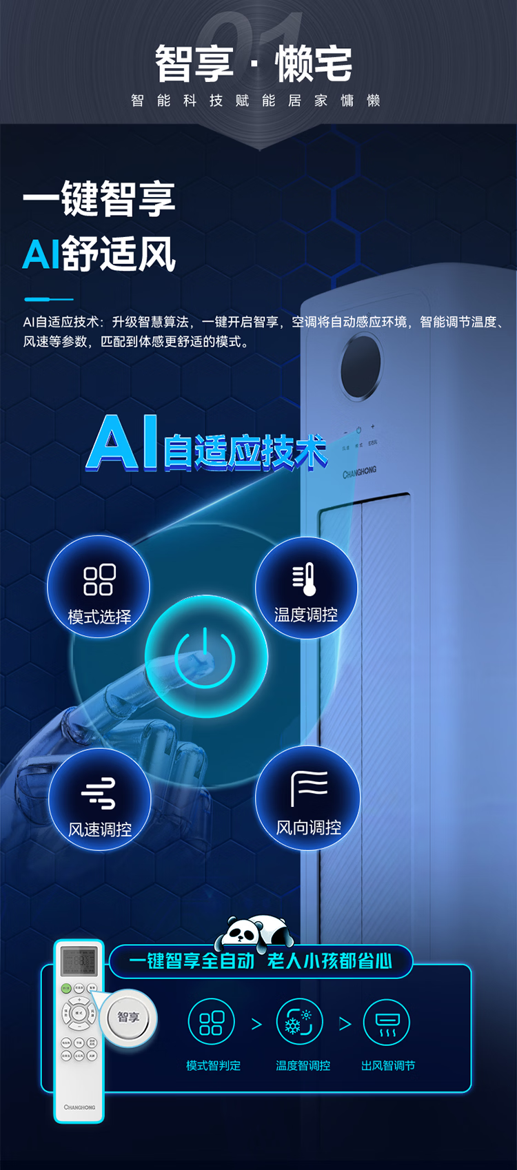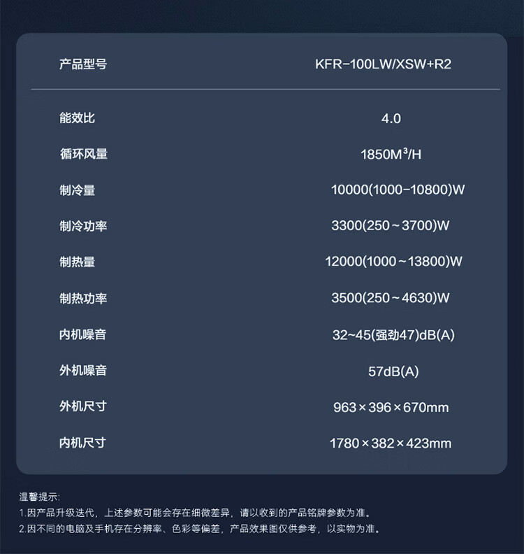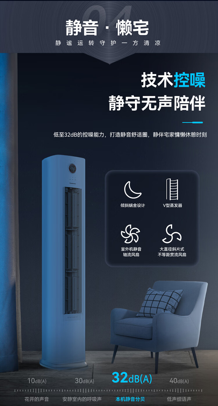 长虹空调熊猫懒大4匹新二级能效220V单相电商居两用双排铜管变频冷暖立式柜机 KFR-100LW/XSW+R2