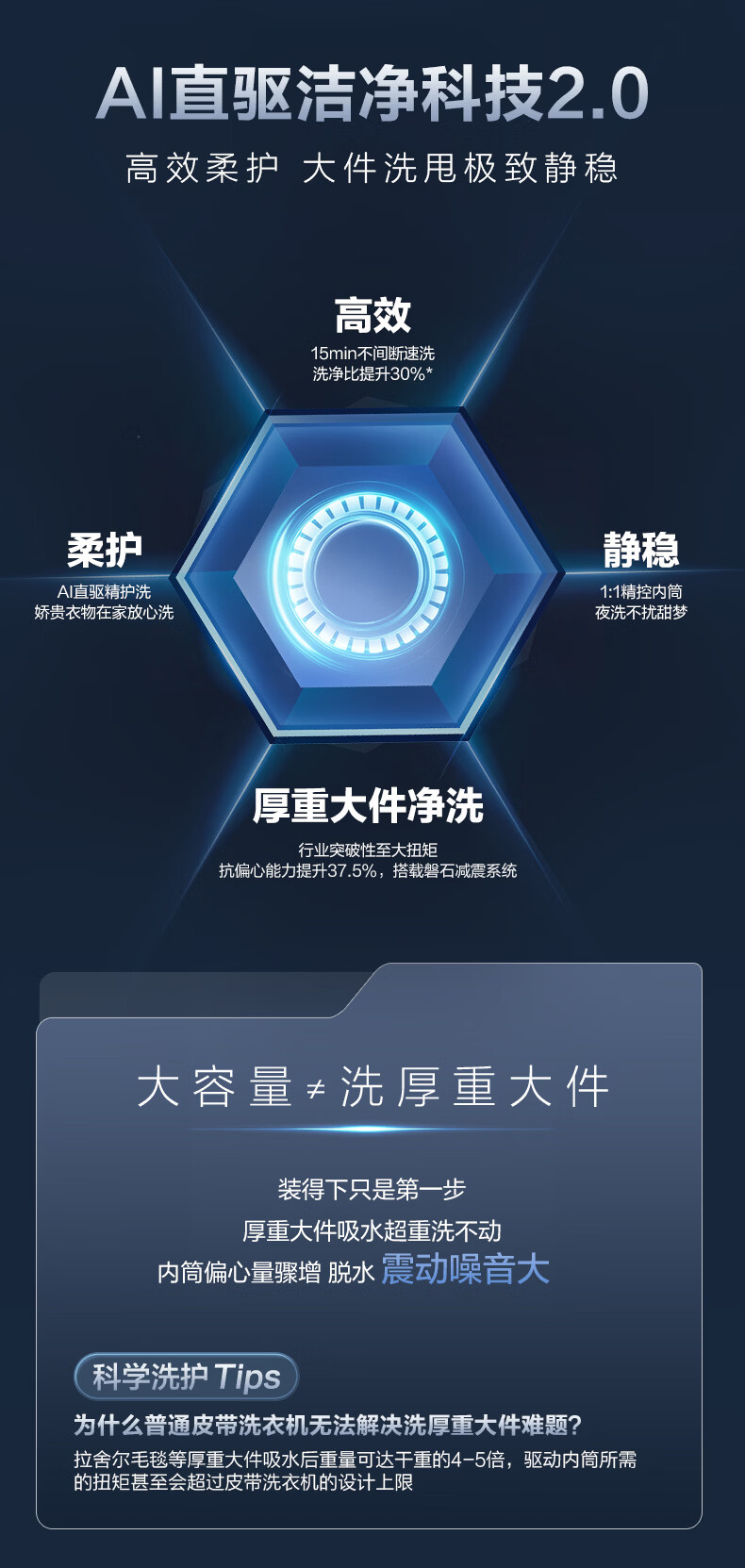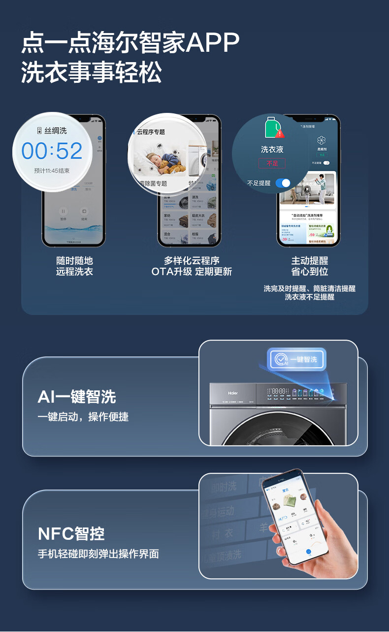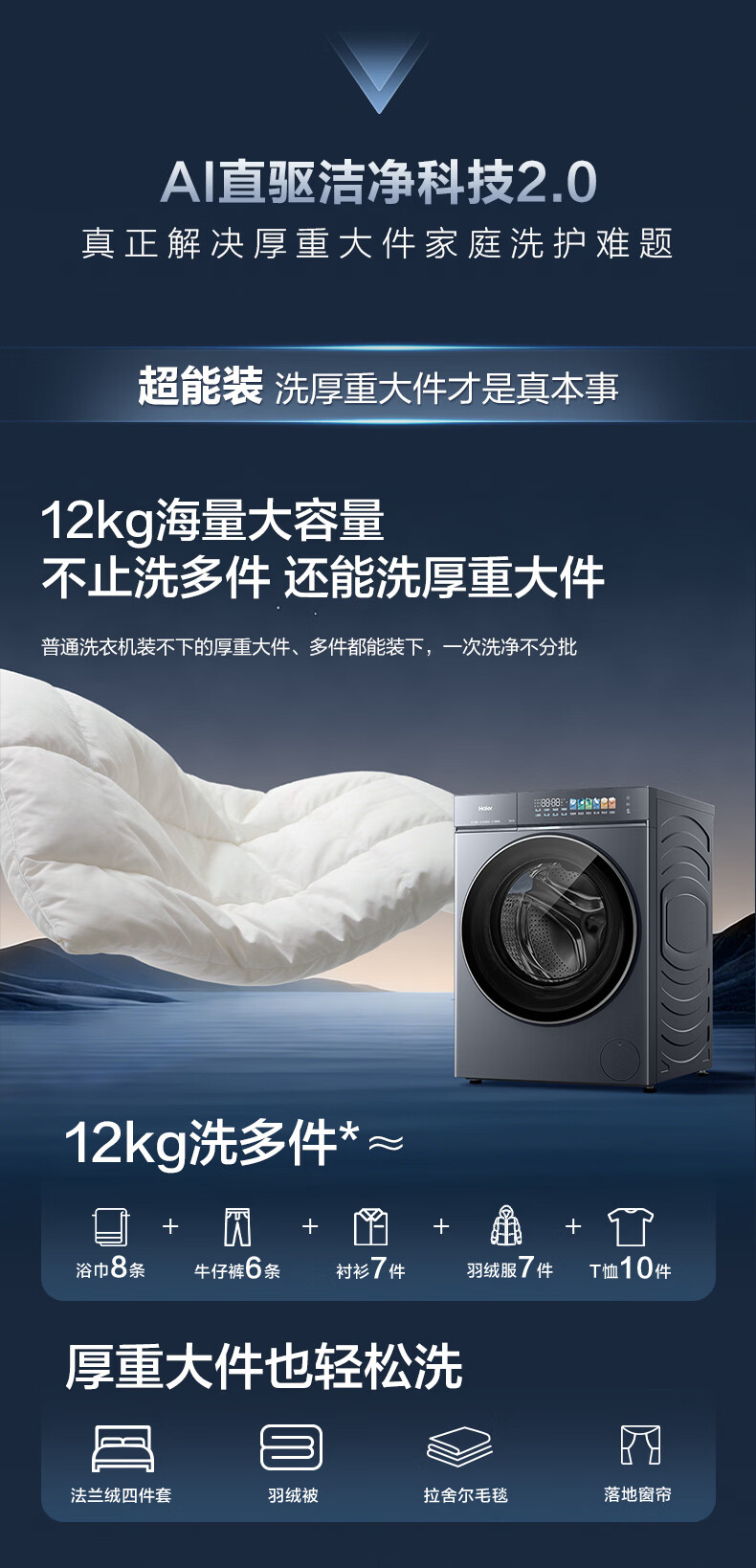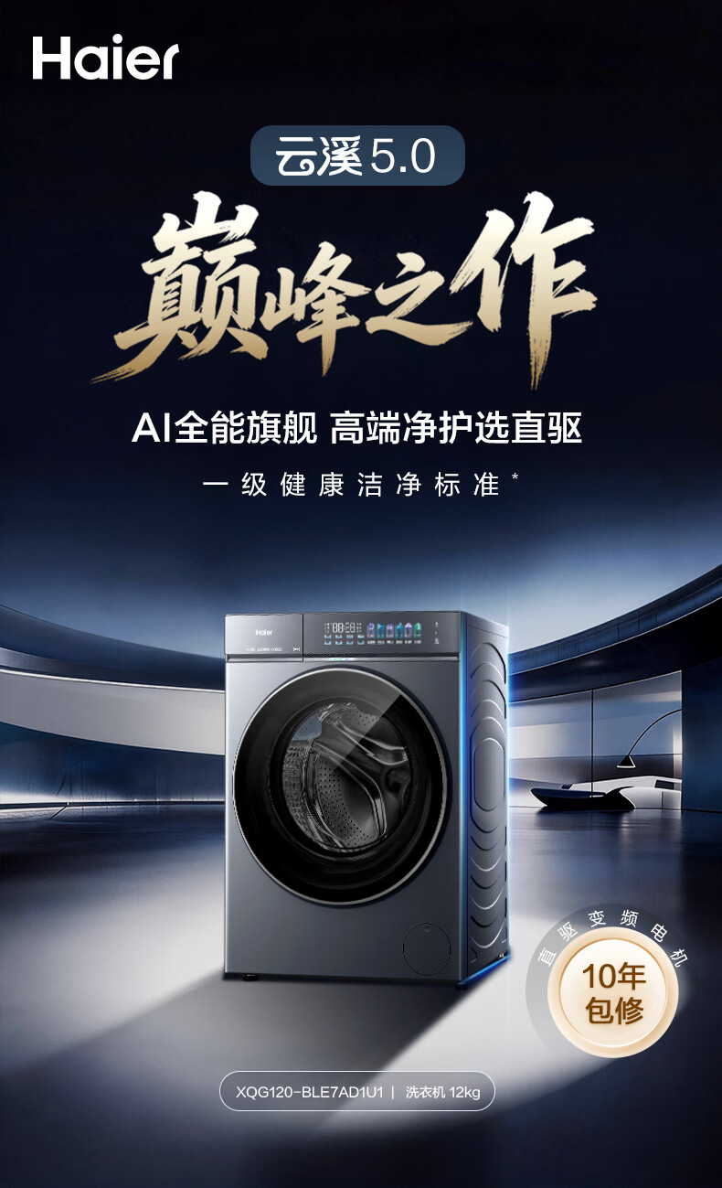 海尔(Haier)云溪5.0 全自动滚筒洗衣机10公斤单洗家用大容量AI直驱7AD1U1洁净2.0双效除菌直驱变频国家补贴 【重磅新品云溪5.0】10公斤单洗 滚筒