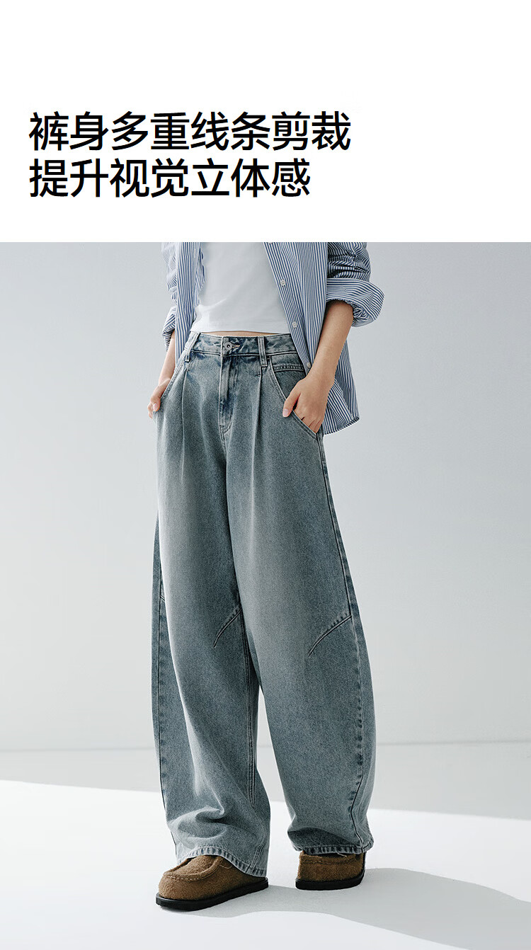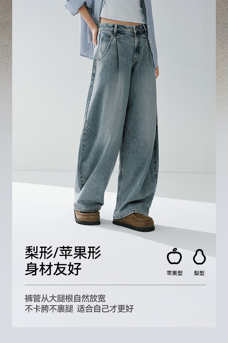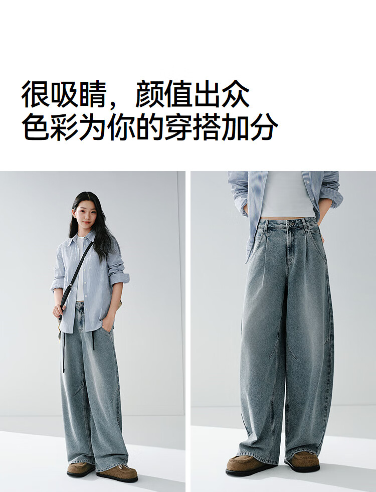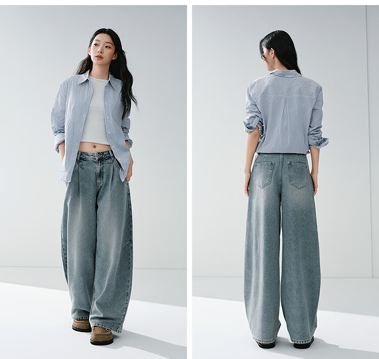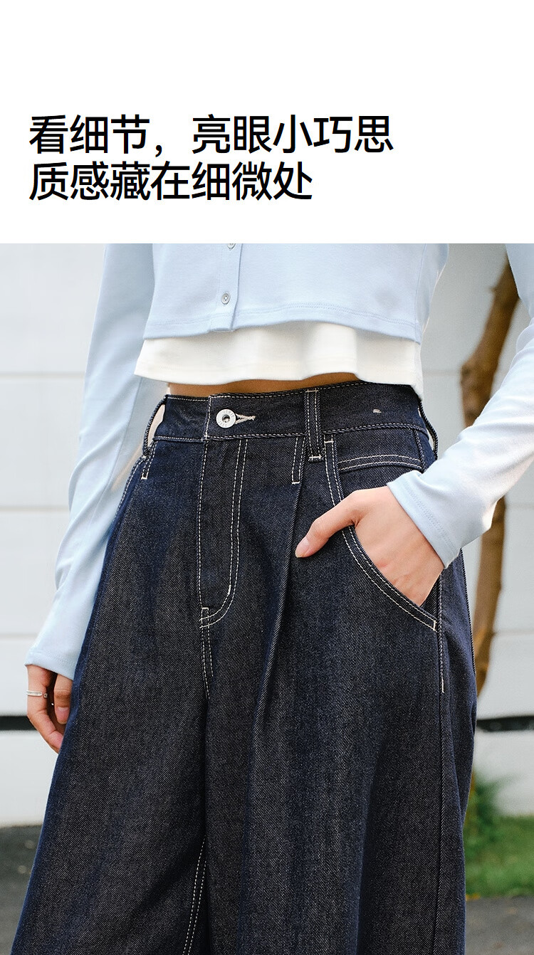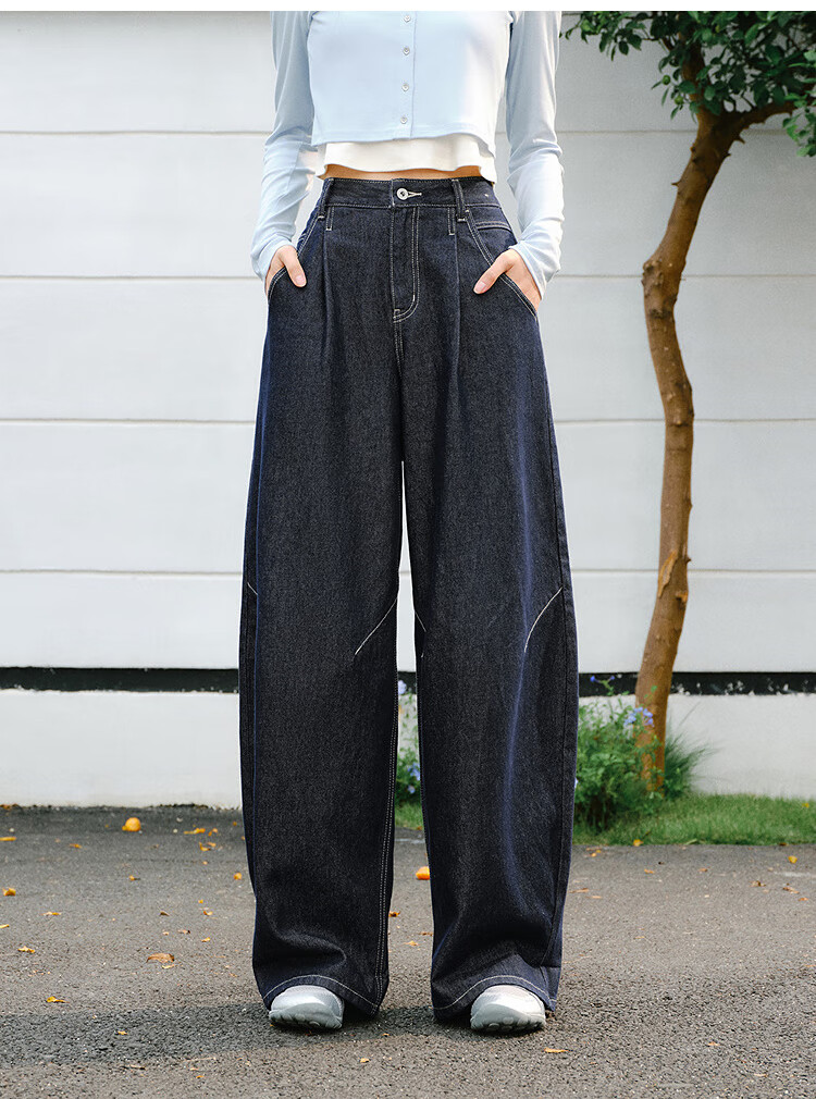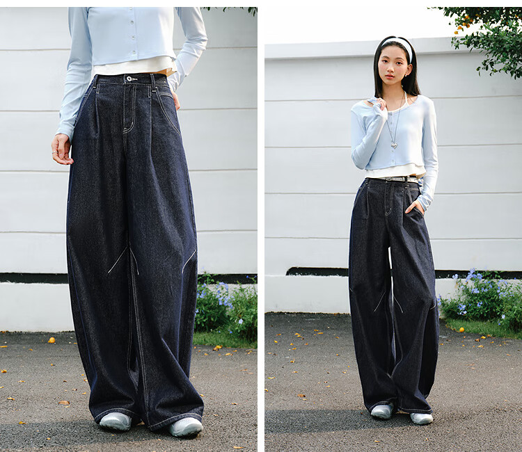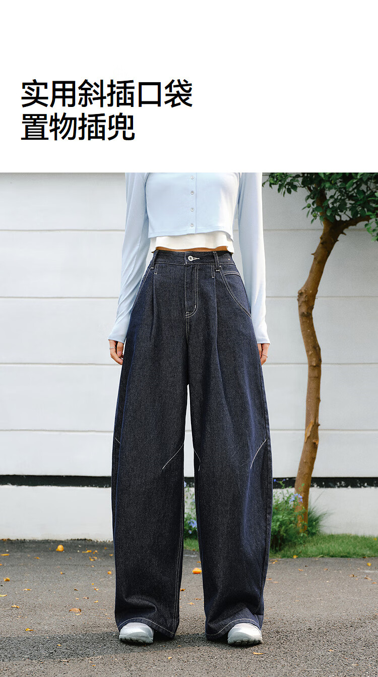森马(Semir)牛仔裤女春季打褶长裤宽松2026拽姐慵懒风美式阔腿裤109126124002