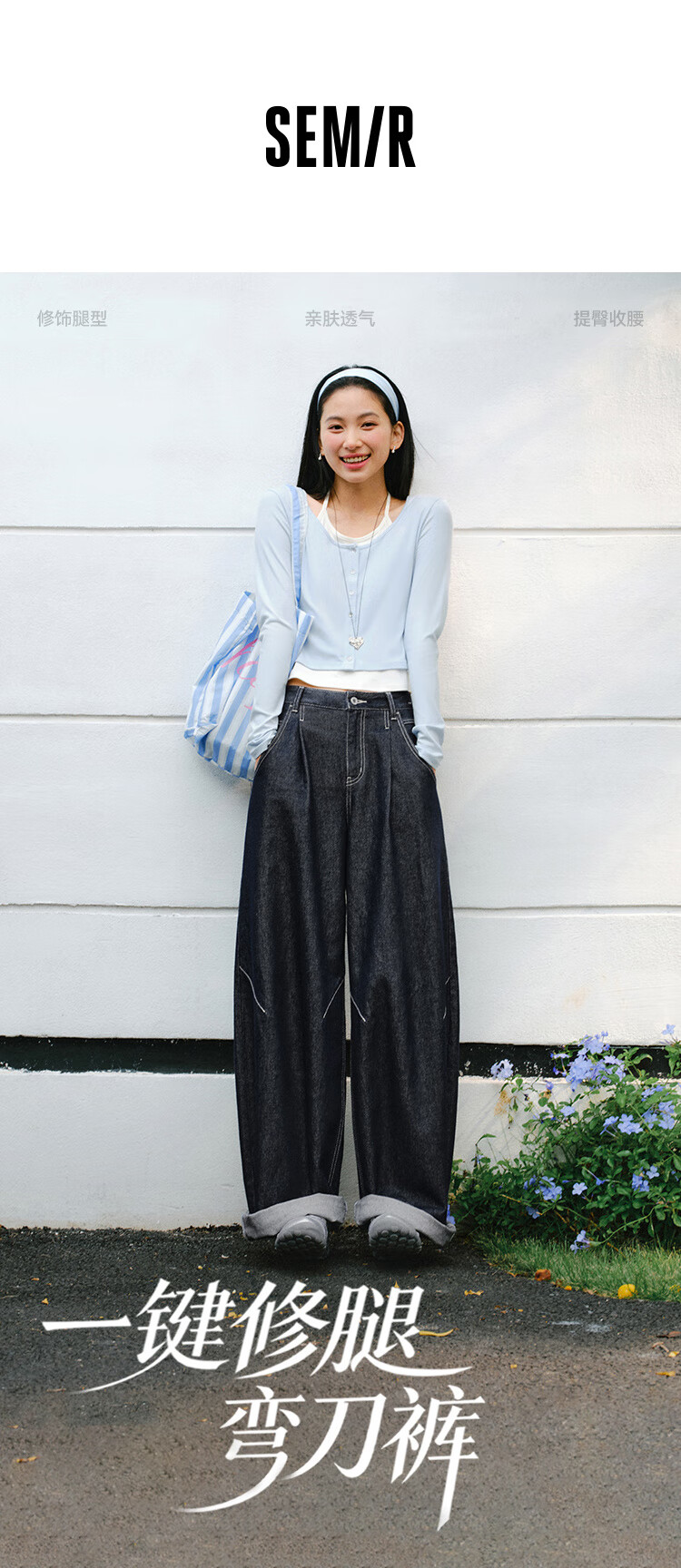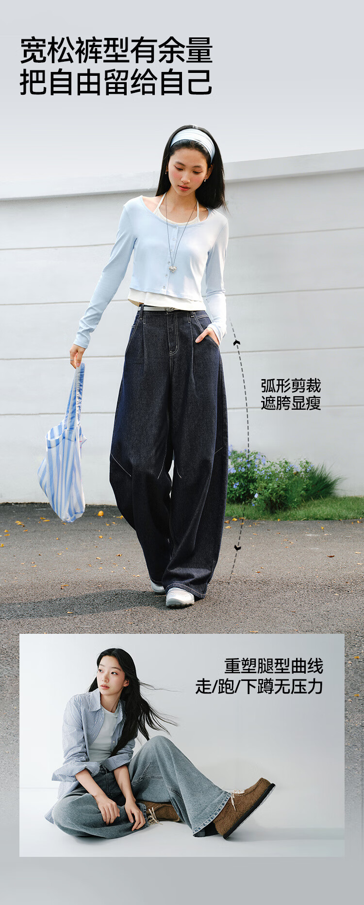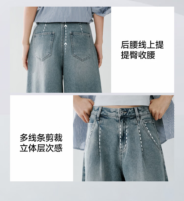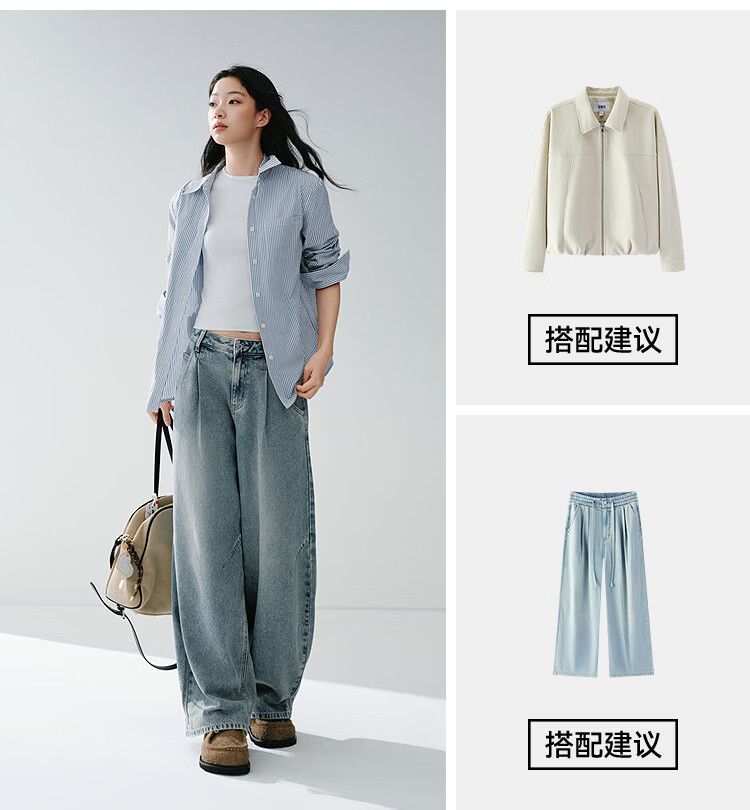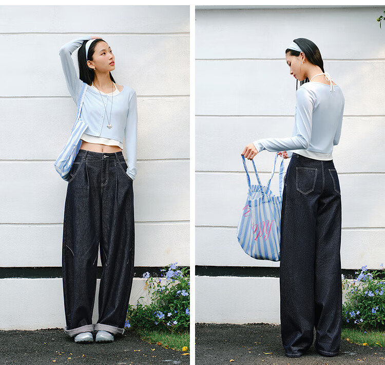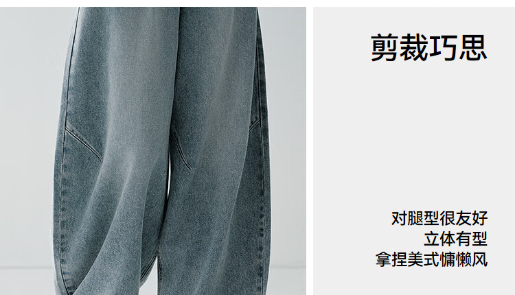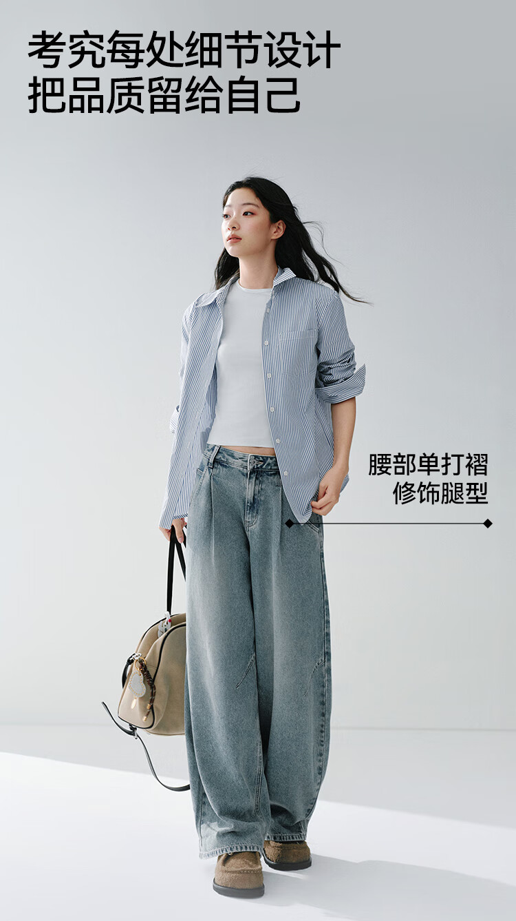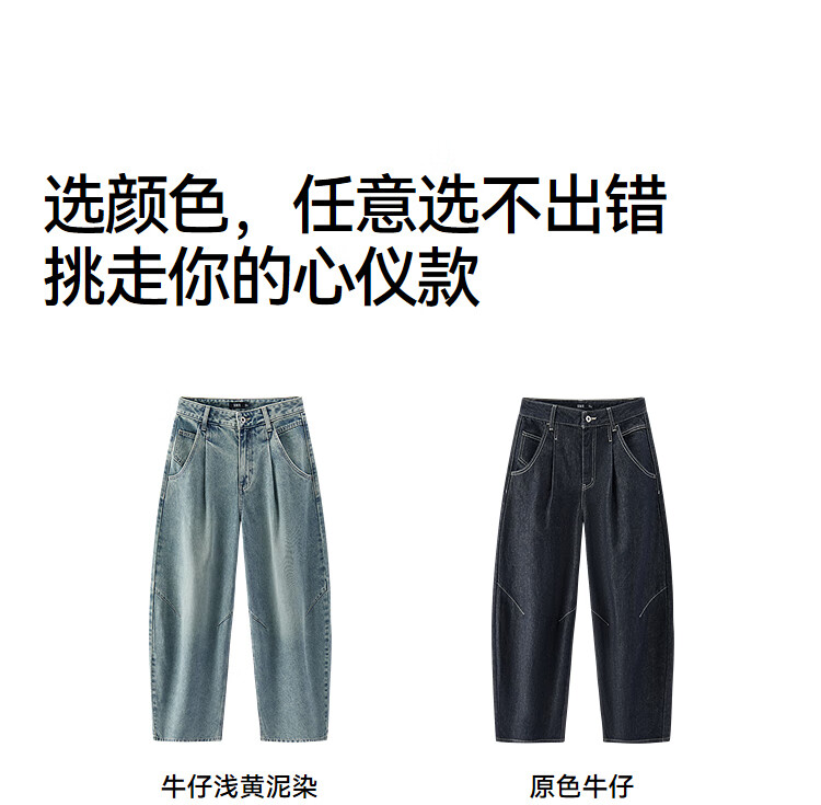森马(Semir)牛仔裤女春季打褶长裤宽松2026拽姐慵懒风美式阔腿裤109126124002