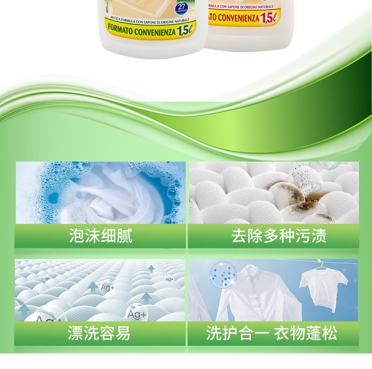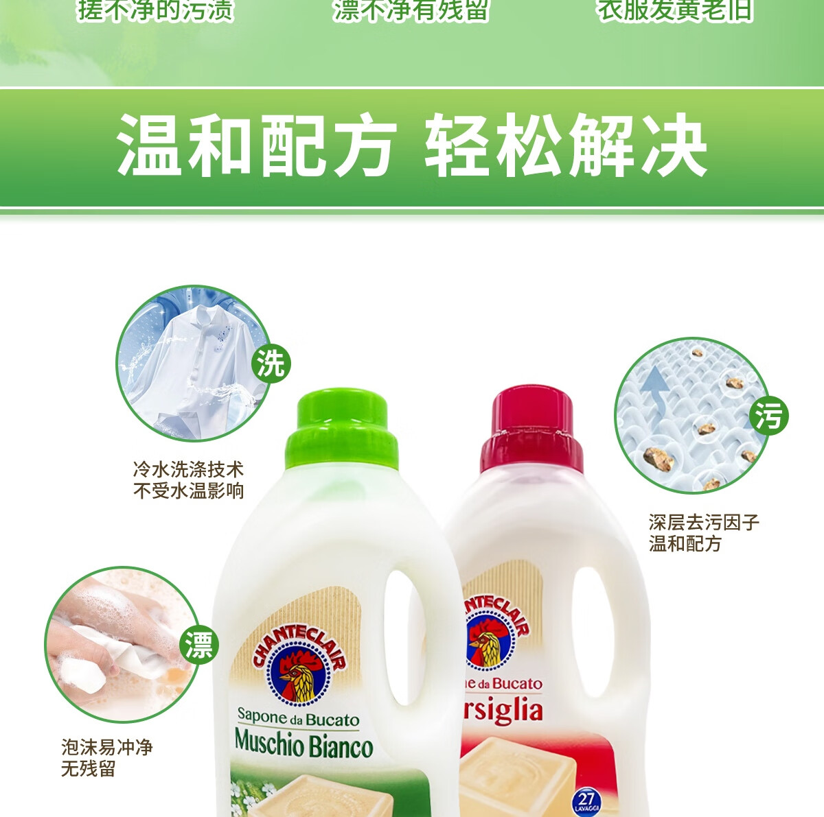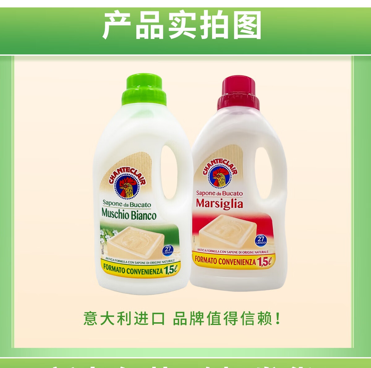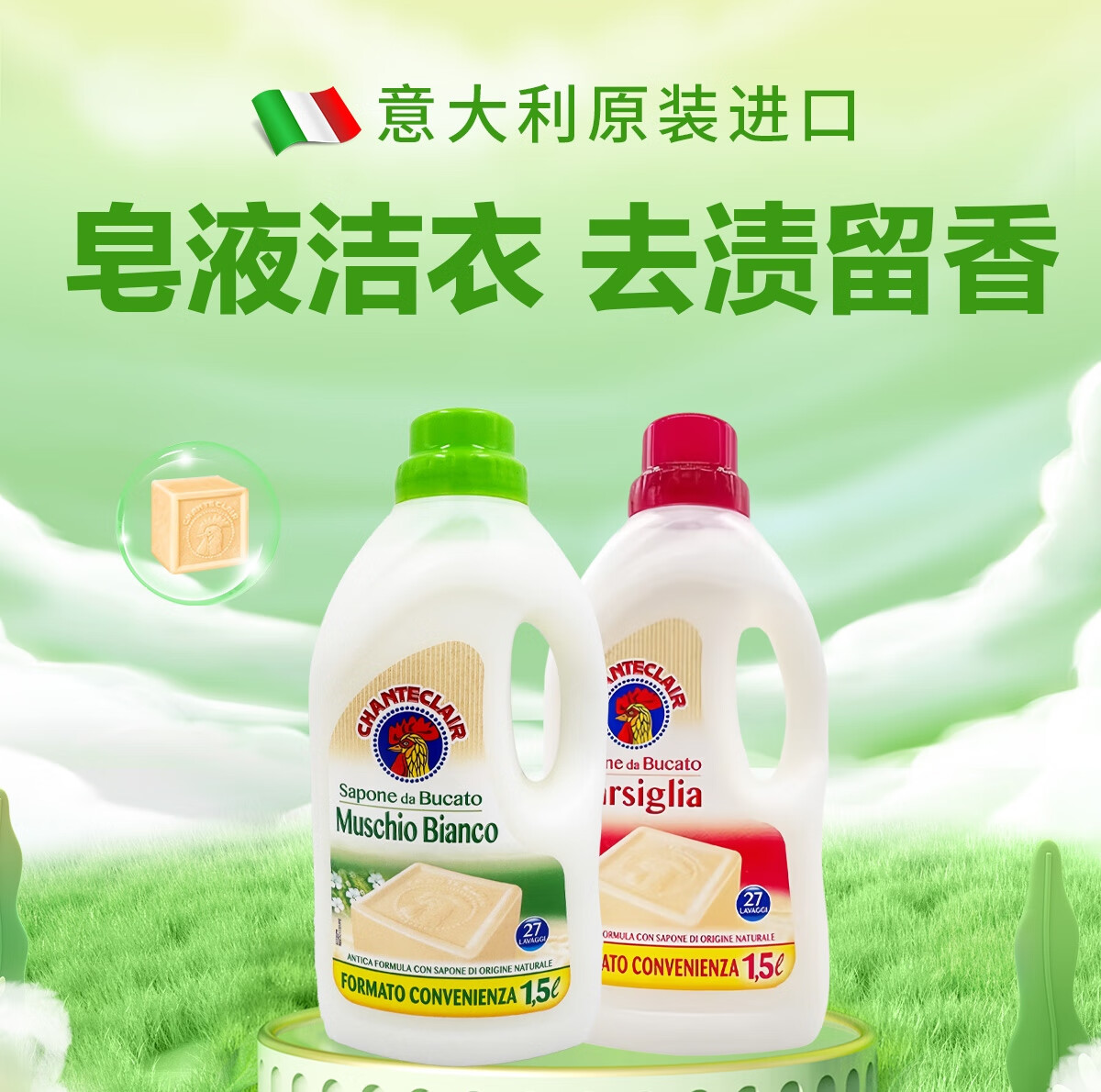 大公鸡管家(CHANTE CLAIR)白苔香洗衣液1.5L*3瓶 意大利进口植物浓缩液态洗衣皂手洗可用