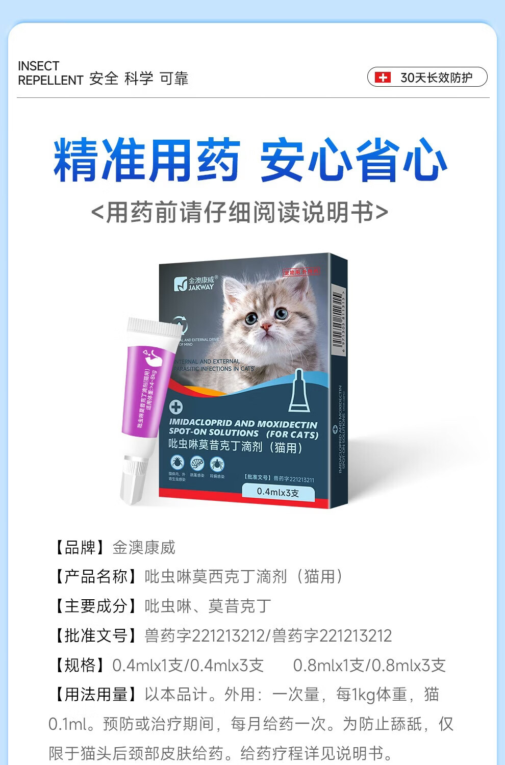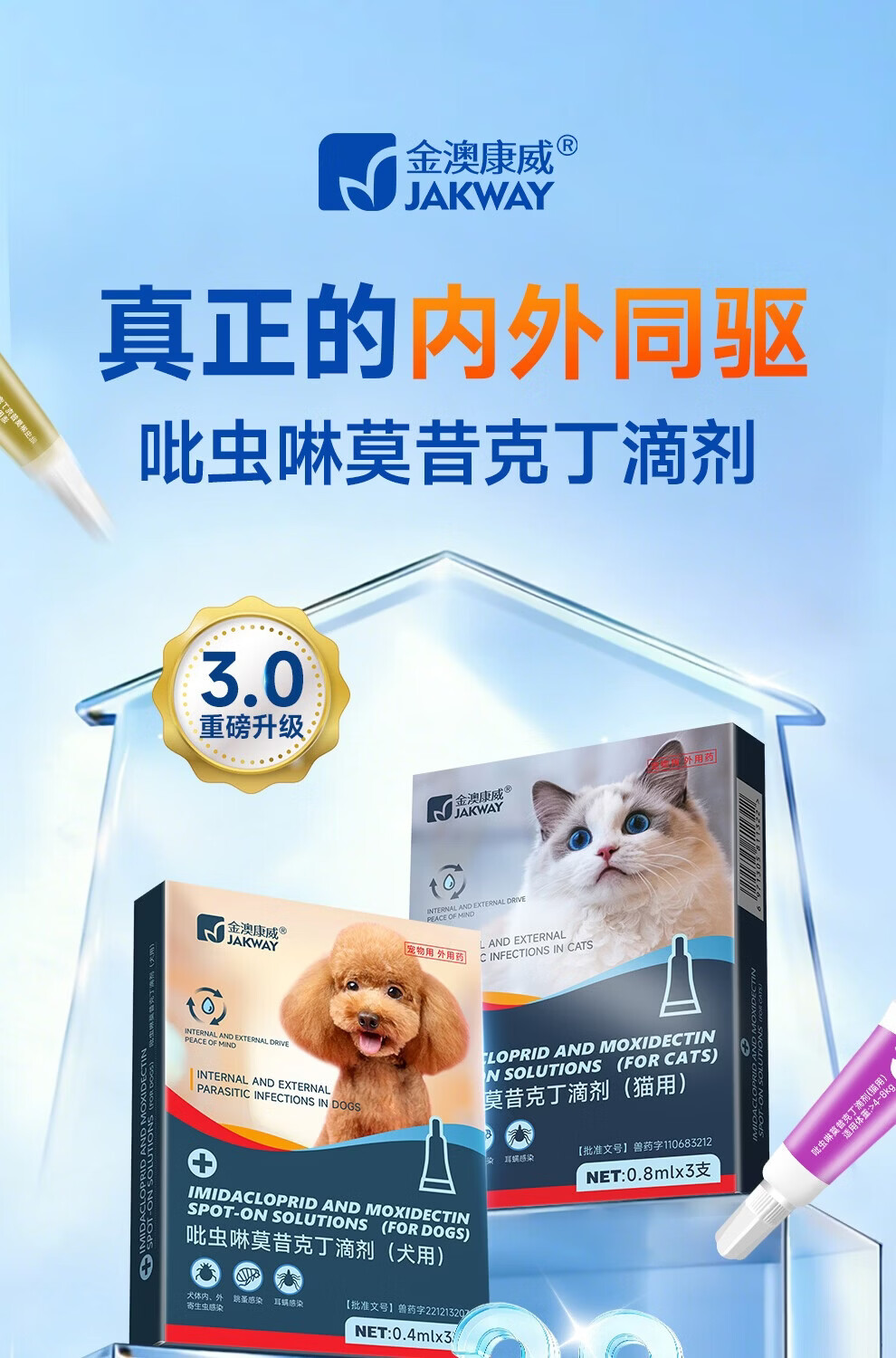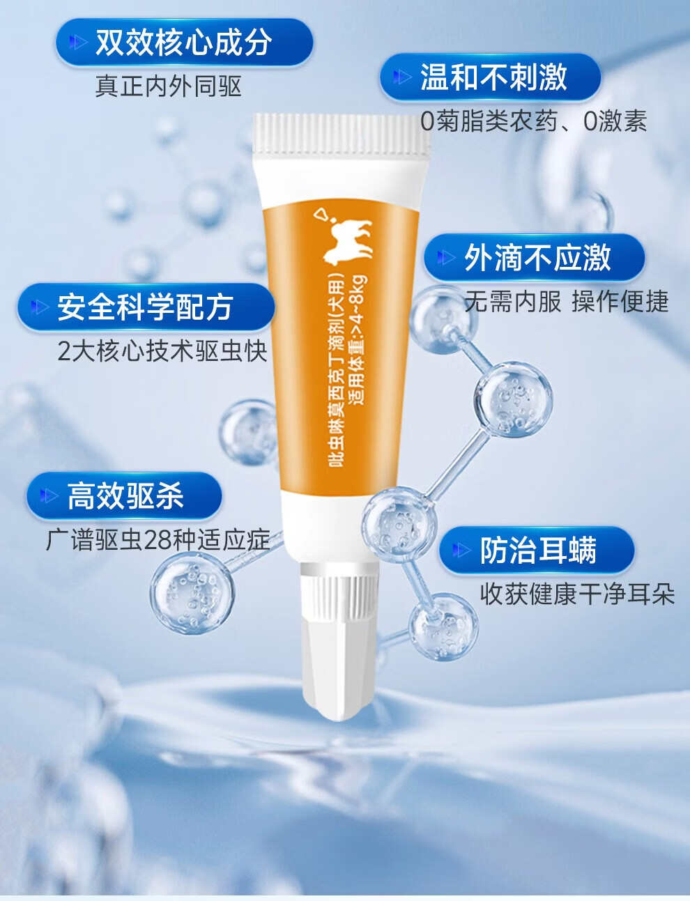 金澳康威吡虫啉莫昔克丁滴剂 宠物体内外一体驱虫猫咪狗狗驱跳蚤蜱虫虱子 狗狗用 1ml*1支 【体重4-10kg】