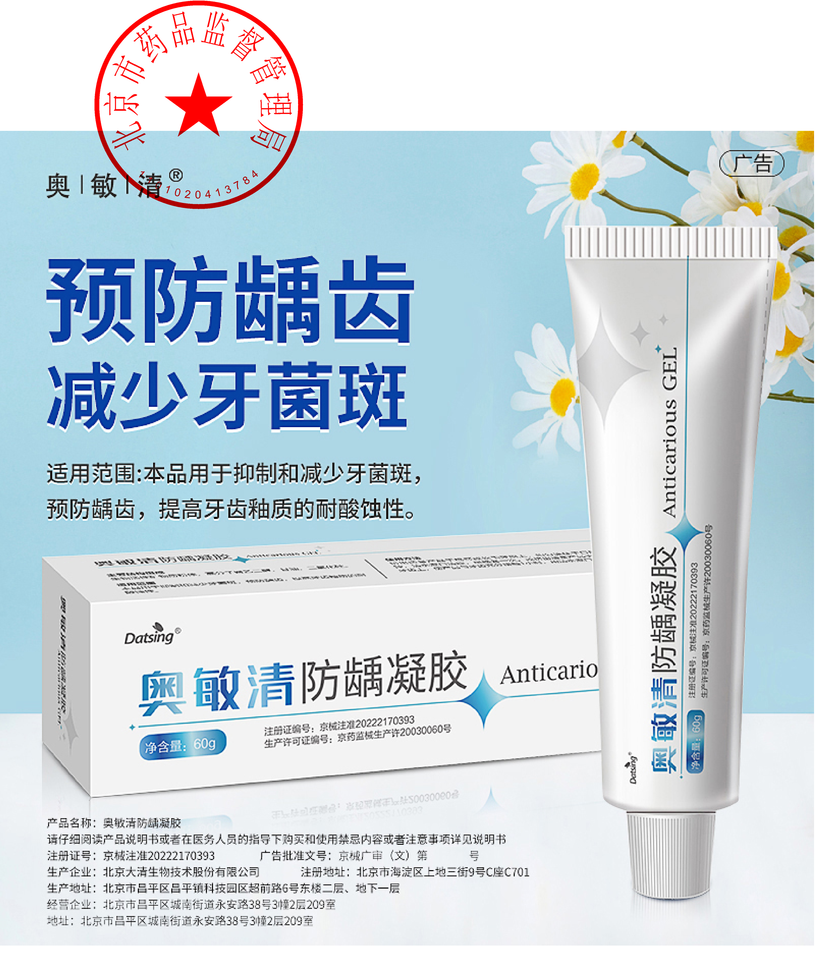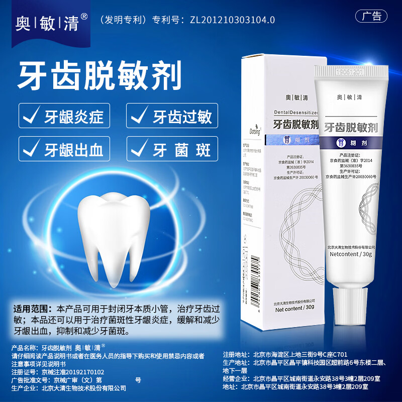 奥敏清牙齿脱敏剂缓解牙齿过敏减少牙菌斑牙龈出血修护敏感脱敏糊剂医用 牙齿脱敏剂-60克/支