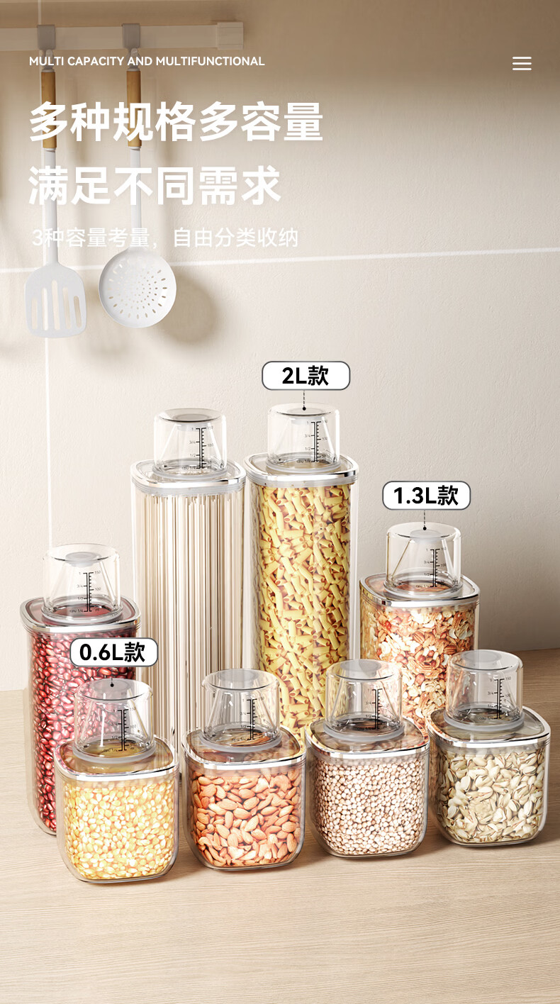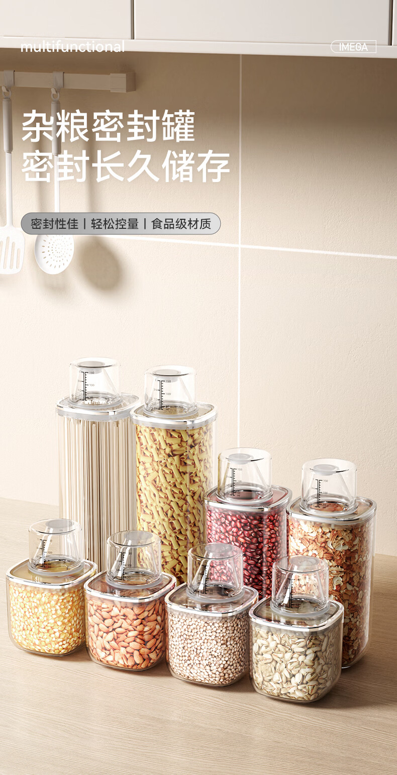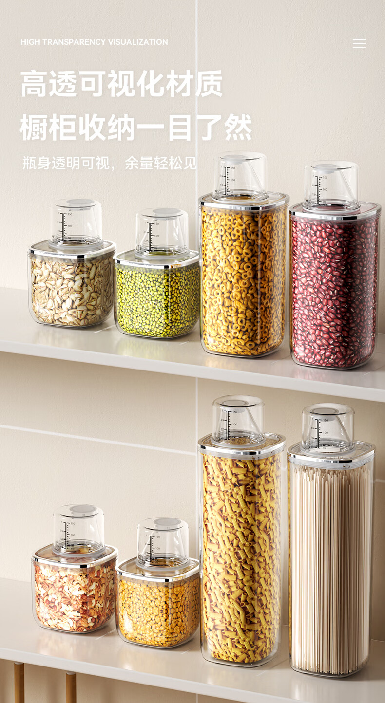安扣杂粮密封罐食品级密封收纳盒厨房干果零食储存罐大米储粮桶 【双重密封/带量杯】 透明 0.6L 1个 600ml