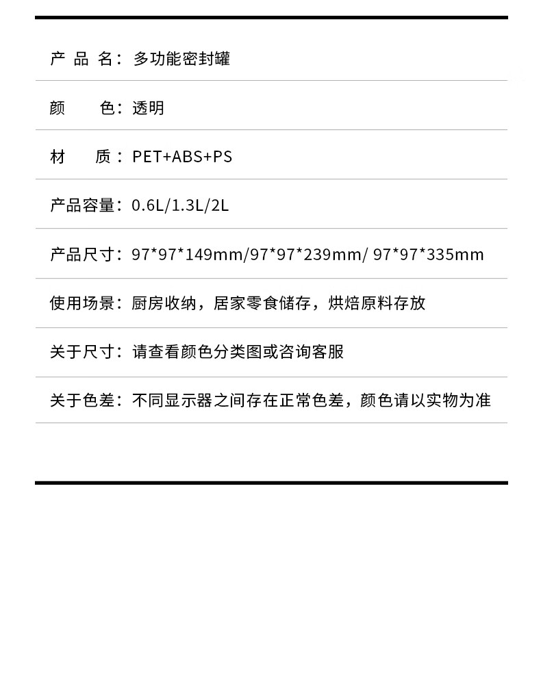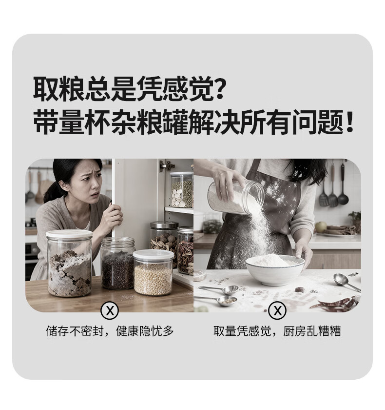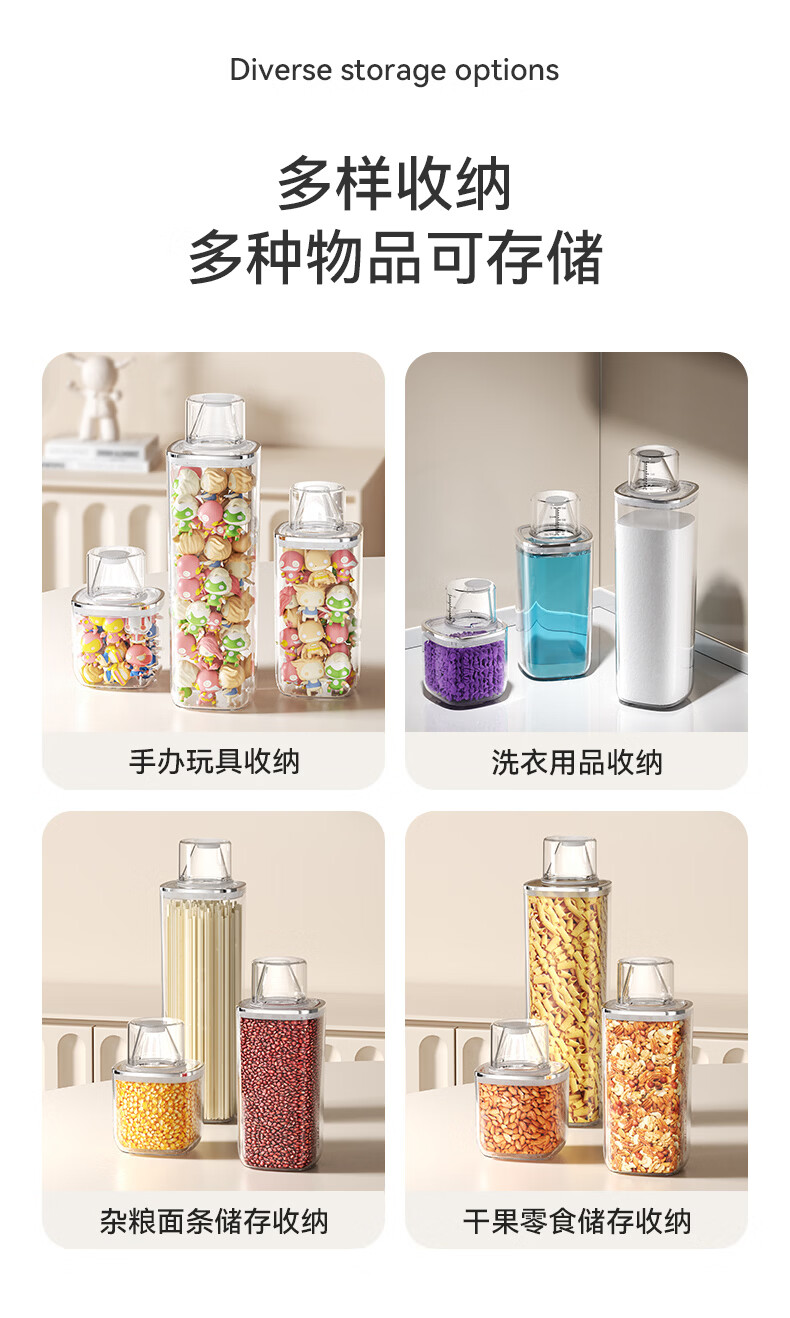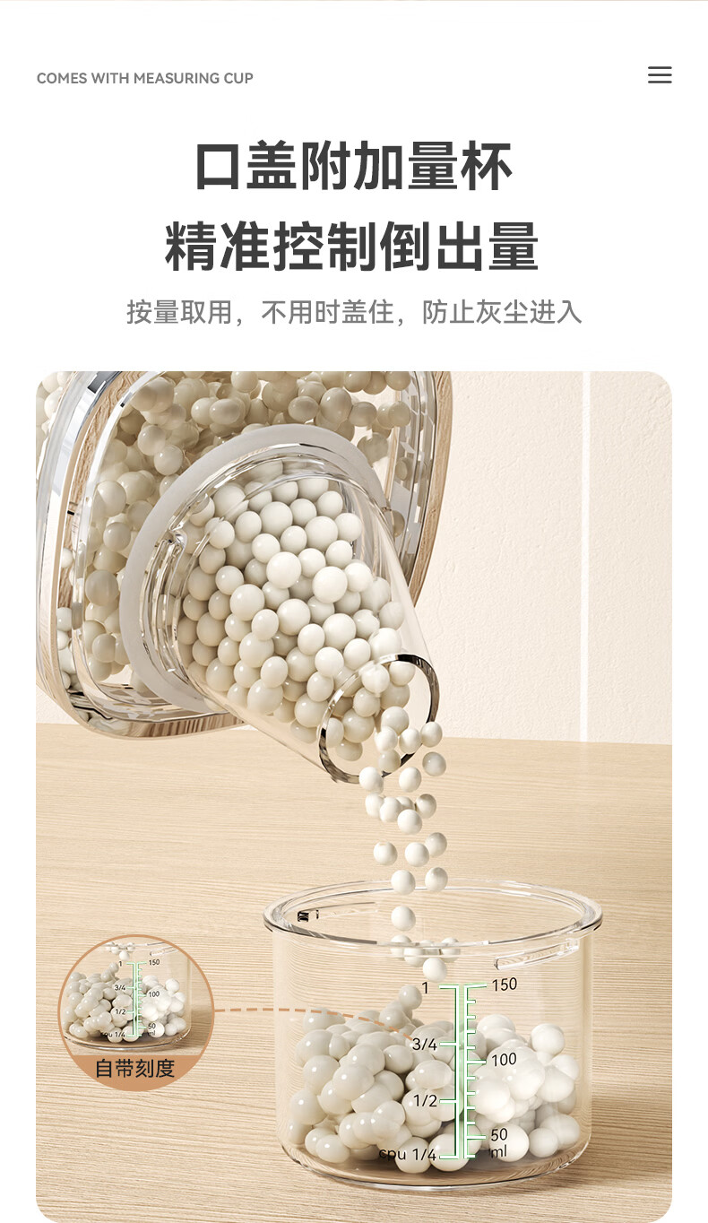 安扣杂粮密封罐食品级密封收纳盒厨房干果零食储存罐大米储粮桶 【双重密封/带量杯】 透明 0.6L 1个 600ml